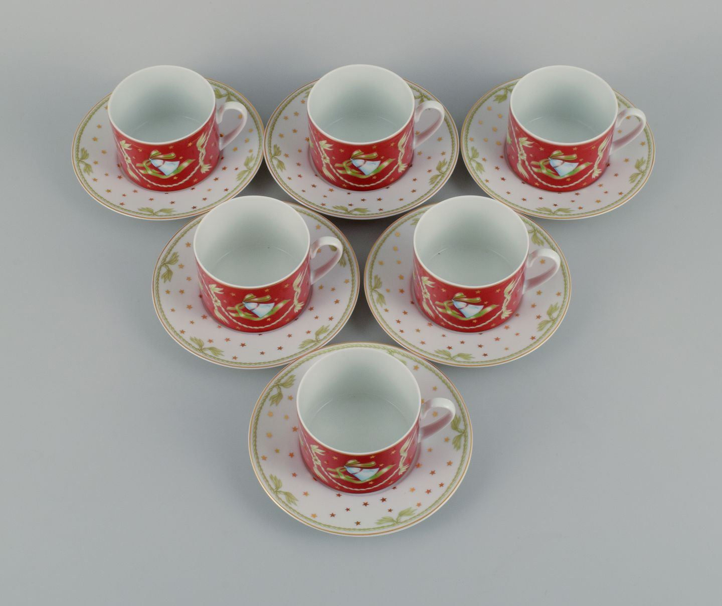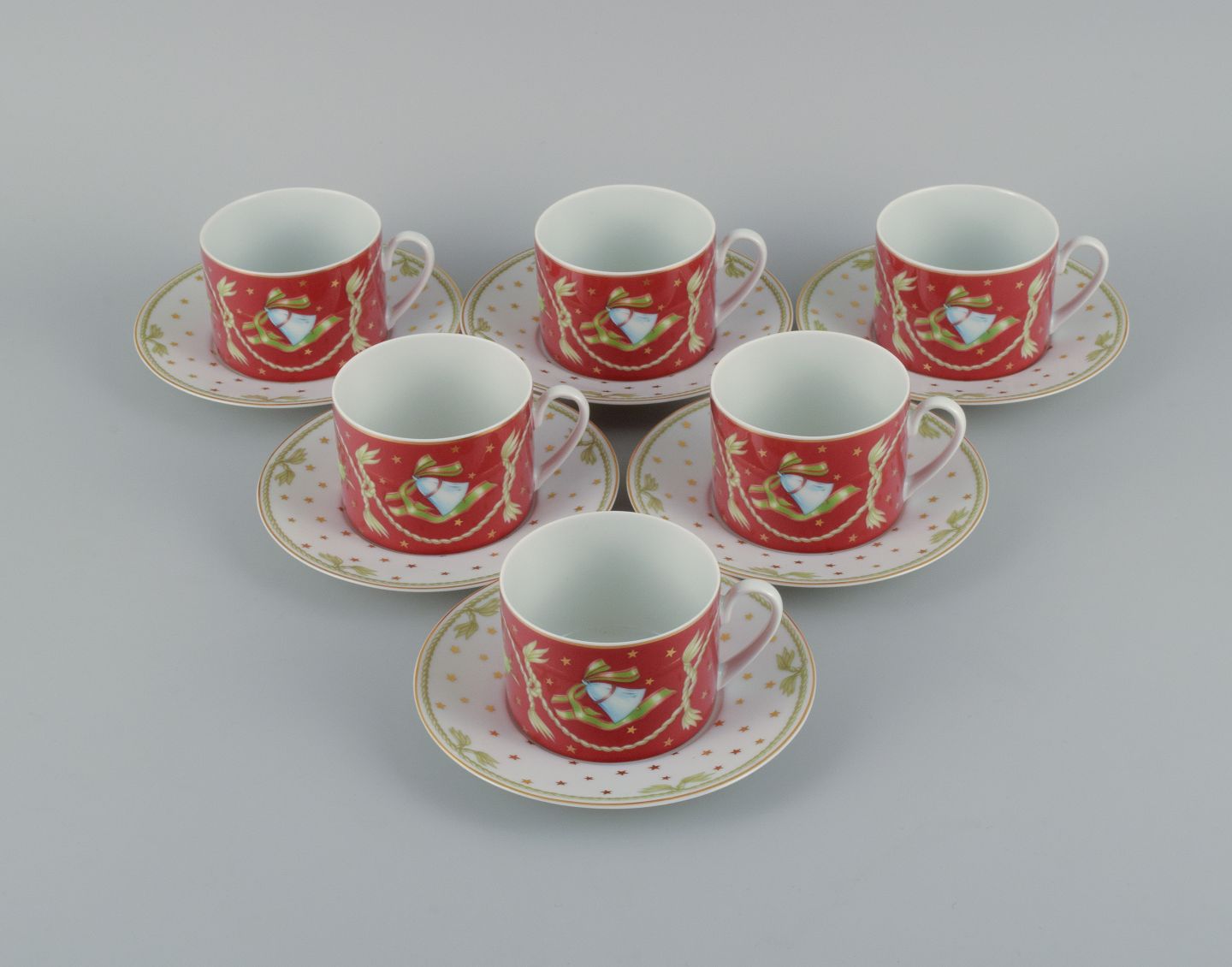 Rosenthal, et sæt på seks par kaffekopper med tilhørende underkopper med julemotiver. Sent 1900-tallet. Stemplet. Perfekt stand. Koppen måler: D 8,3 x H 6,0 cm. Underkop: D 15,5 cm.