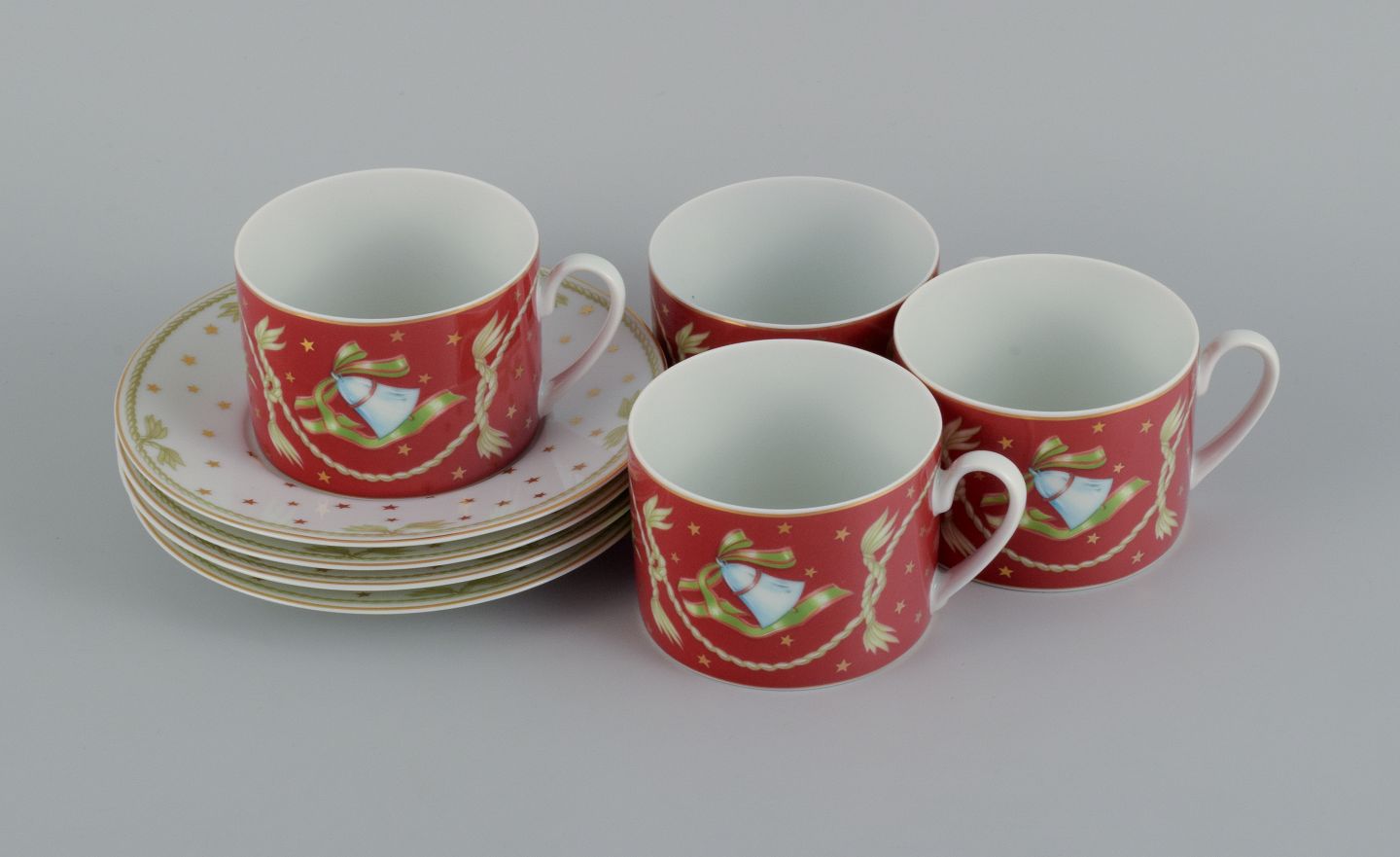 Rosenthal, a set of four pairs of coffee cups and matching saucers with Christmas motifs. Late 1900s. Marked. In perfect condition. The cup measures: D 8.3 x H 6.0 cm. Saucer: D 15.5 cm.