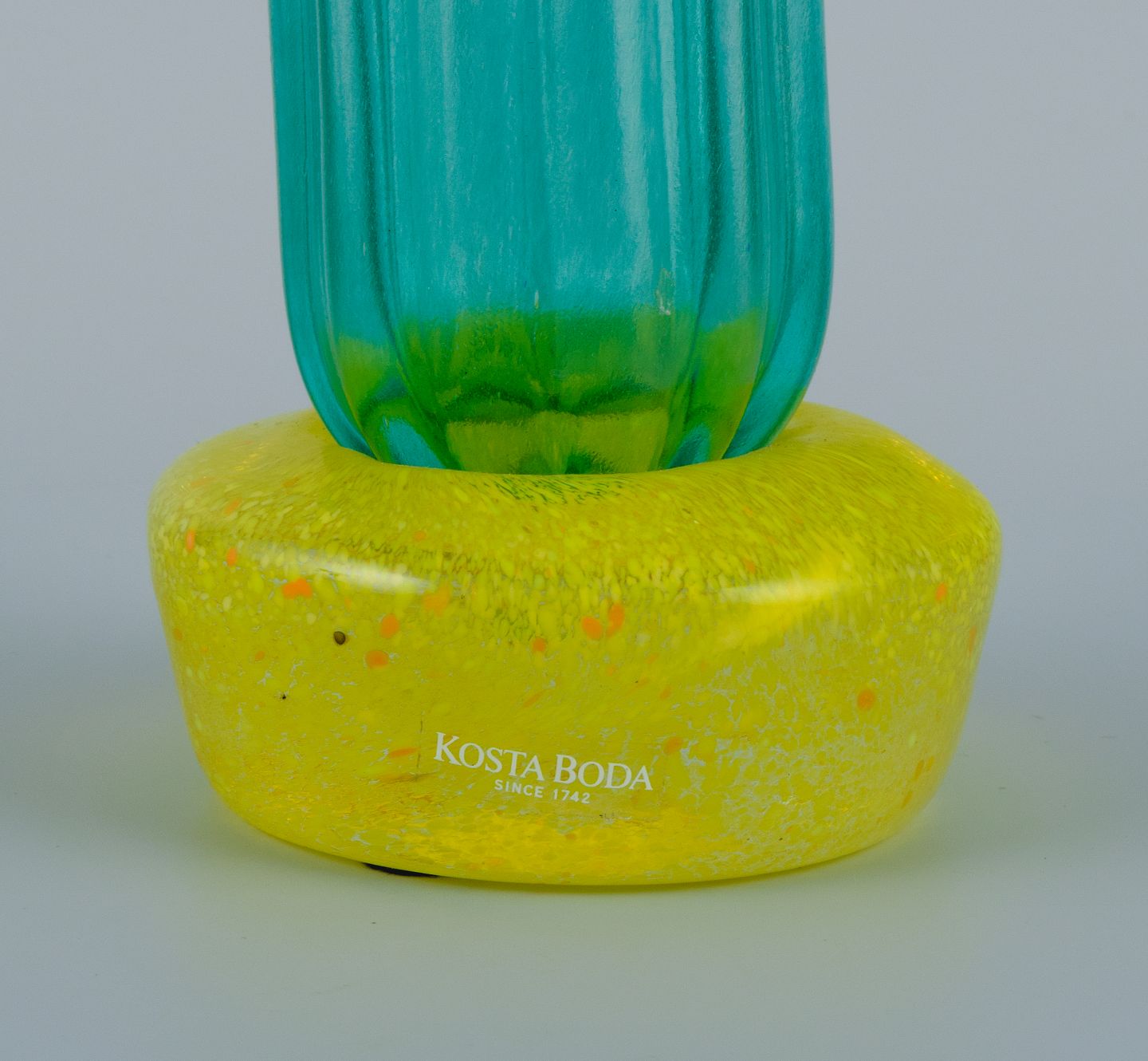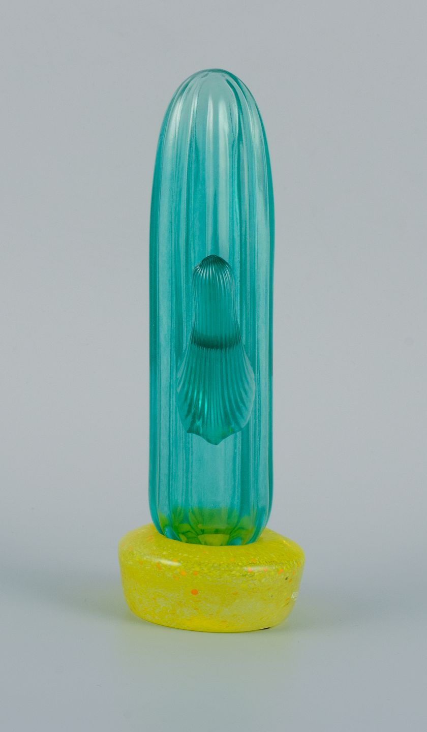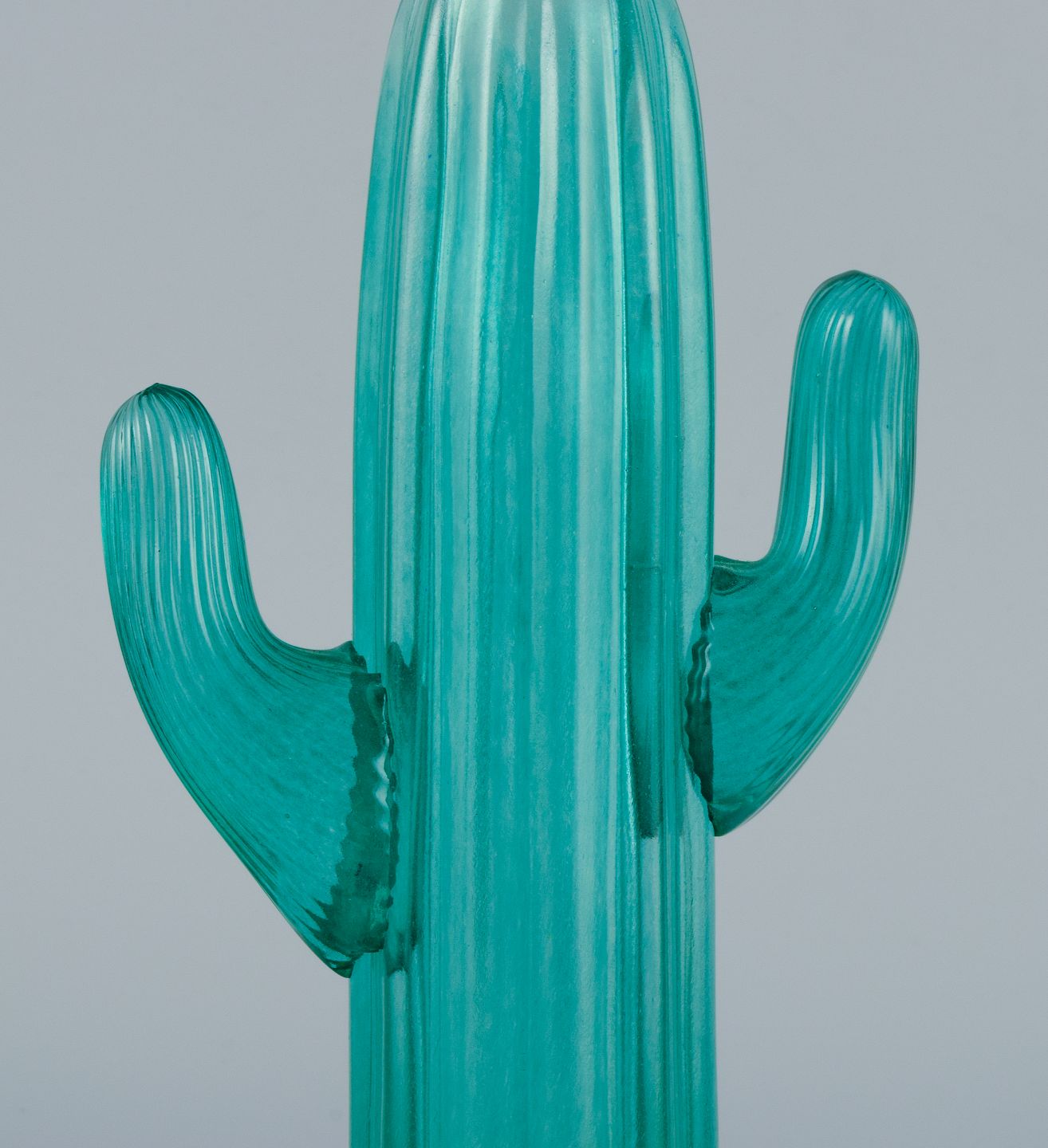 Gunnel Sahlin for Kosta Boda, cactus in turquoise art glass. Approx. 1980s. In perfect condition. Sticker. Dimensions: H 23.0 x D 11.0 cm.