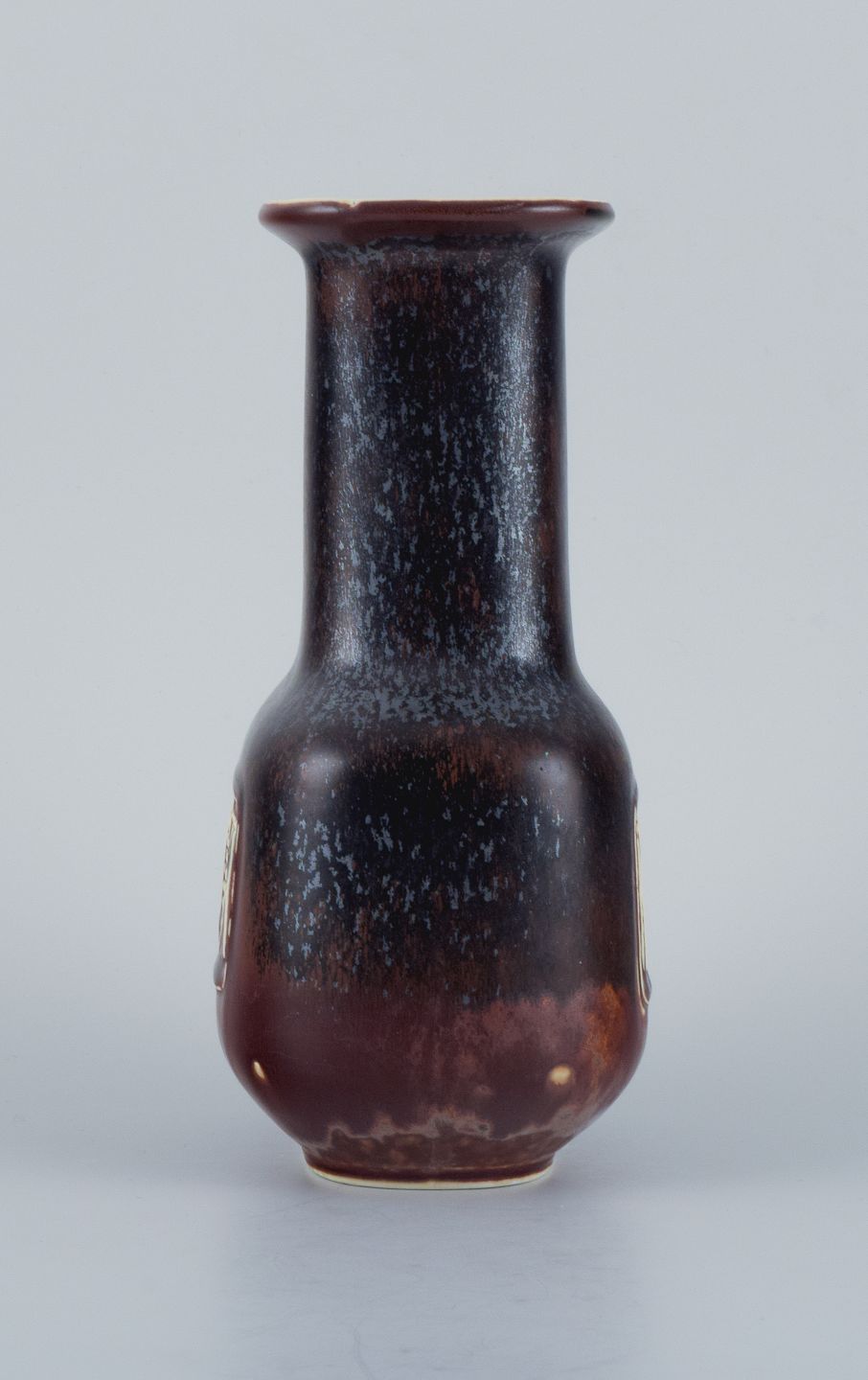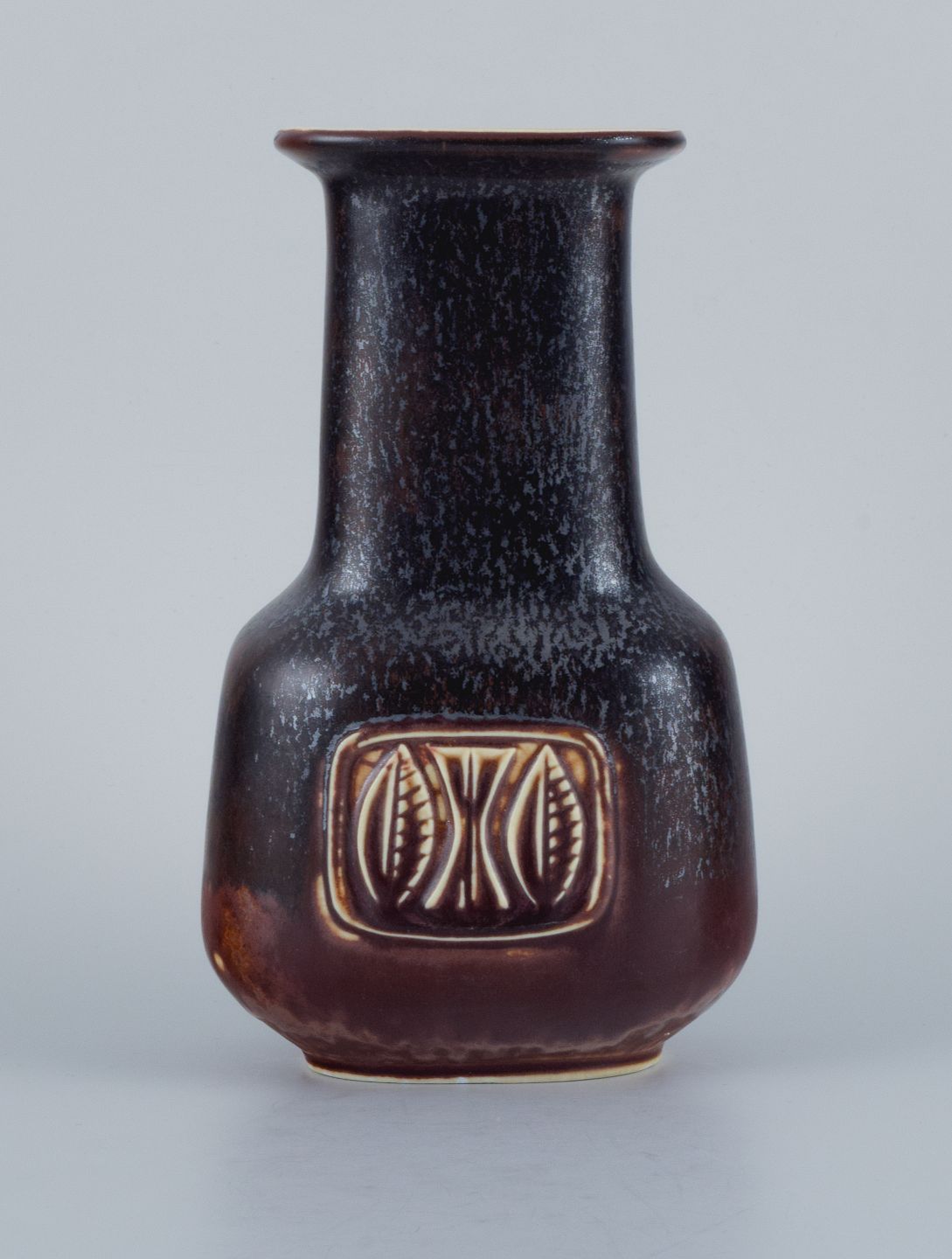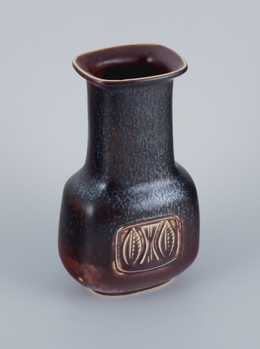 Gunnar Nyland for Rörstrand, keramikvase med glasur i brune nuancer Ca. 1960. Stemplet. I flot stand Anden sortering. Mål: H 20,0 x D 11,0 cm.