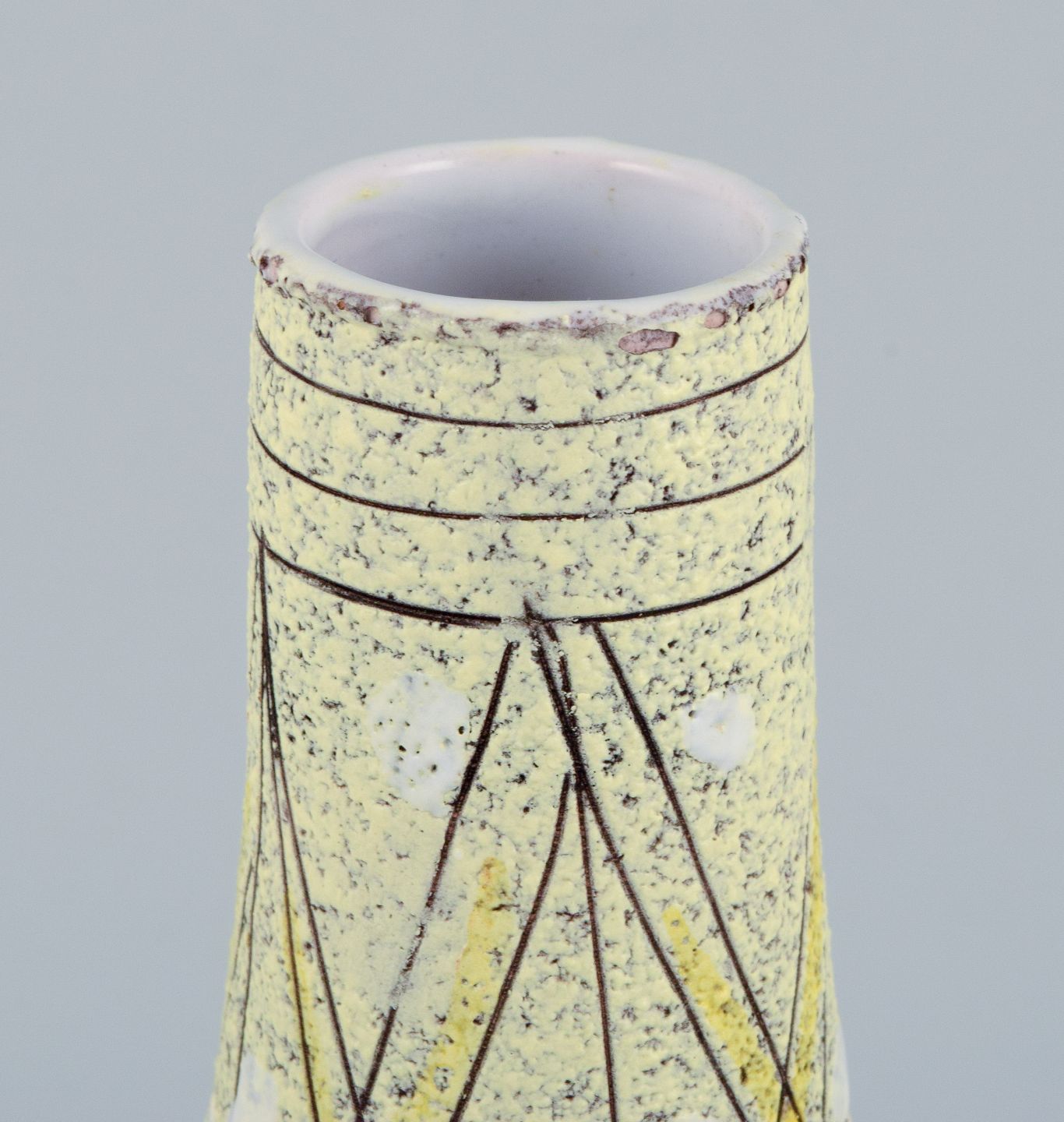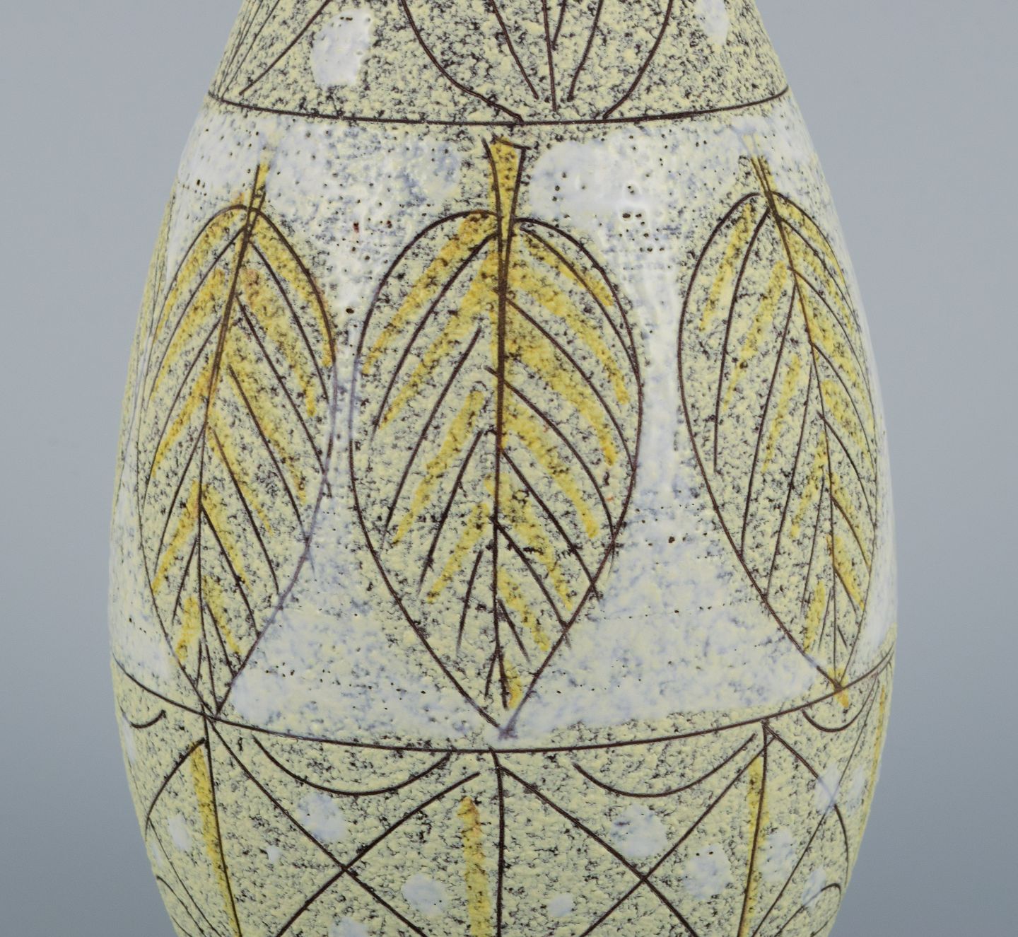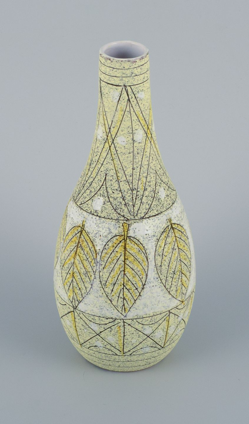 Fratelli Fanciullacci, Italian, unique ceramic vase decorated with leaves in yellow and white shades.