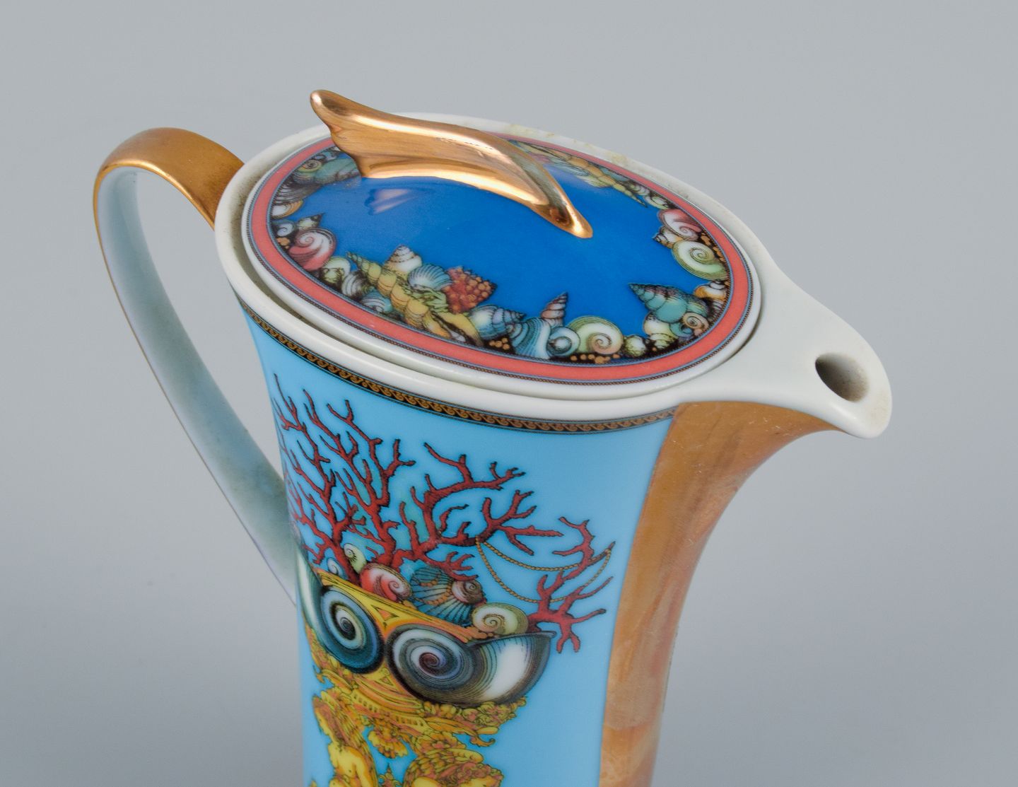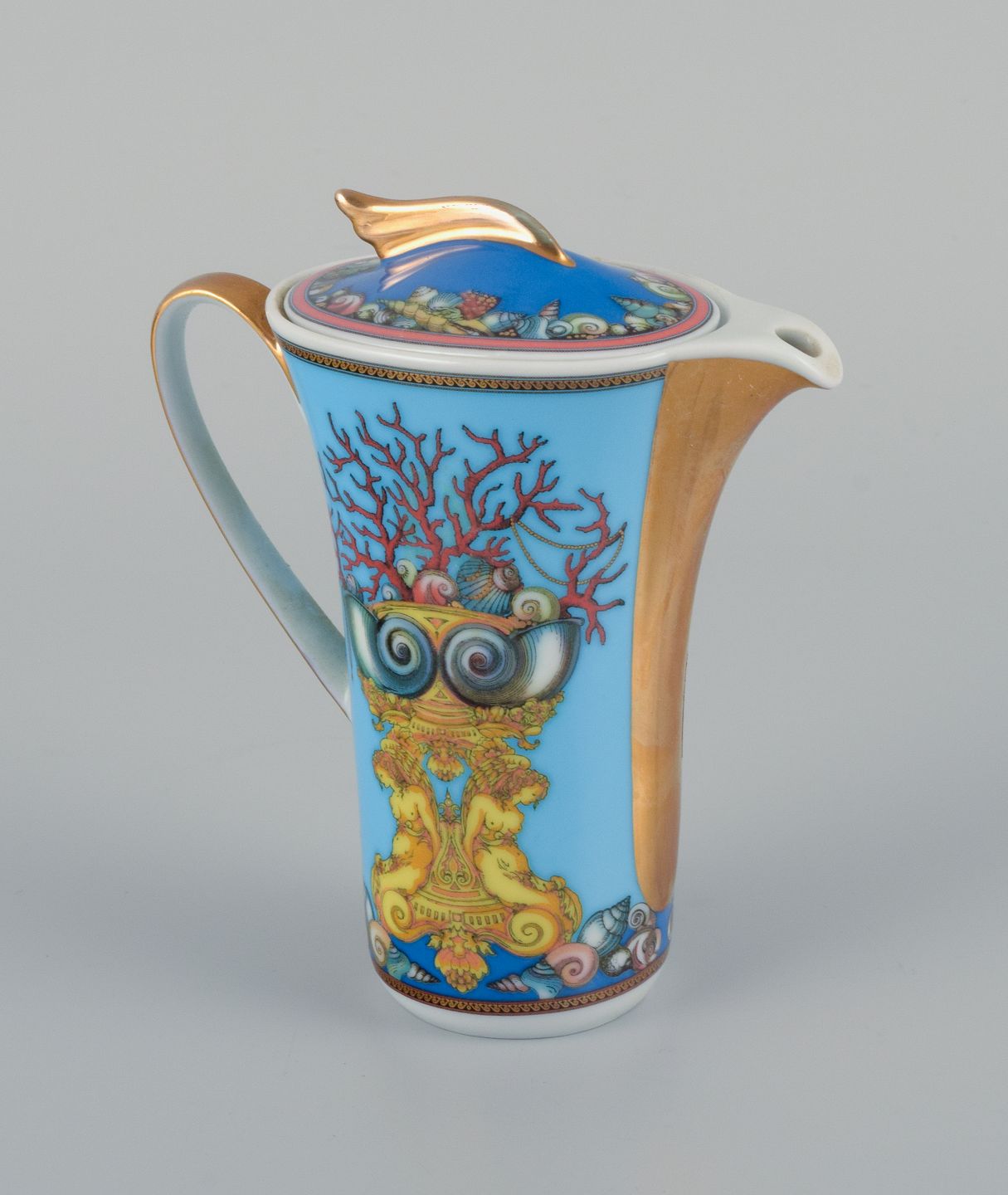 Gianni Versace for Rosenthal, porcelain miniature jug. "Tresors de la Mer". In perfect condition. 2000s. Marked. Original gift box included. Dimensions: H 10.0 x D 8.5 including handle and spout.