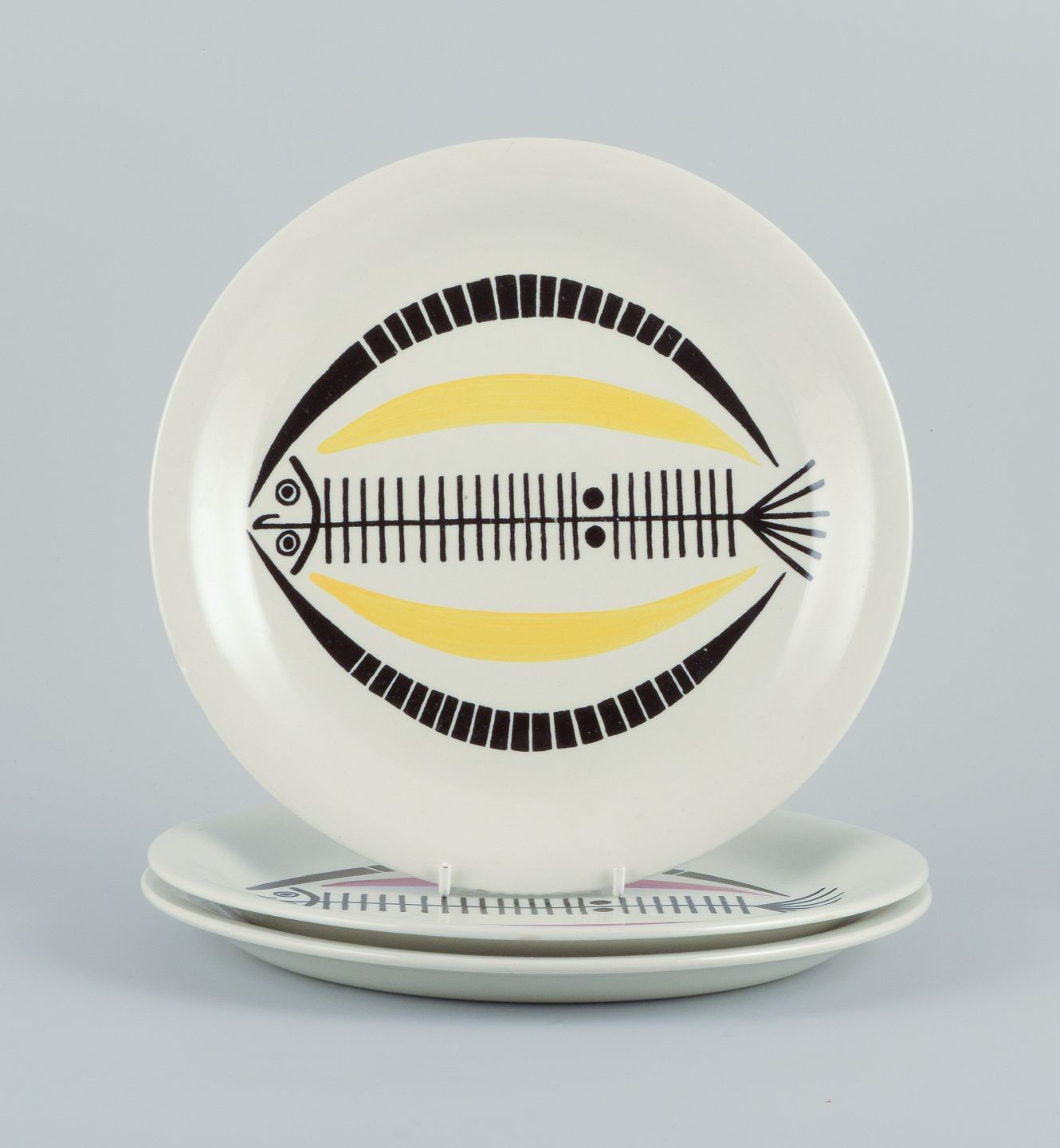 Bibi Breger for Gustavsberg, Sweden, three "Spätta" earthenware plates. Mid 20th century. Marked. In perfect condition. Dimensions: D 24.0 cm.