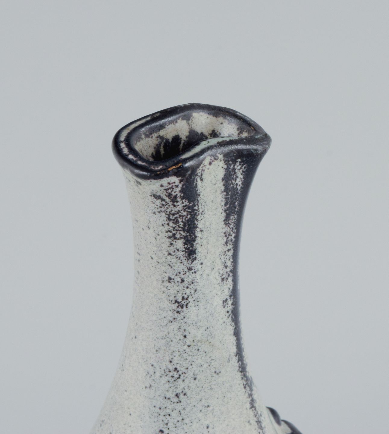 Svend Hammershøi for Kähler. Vase i glaseret stentøj. Smuk gråsort dobbeltglasur. 1930/40'erne. Signeret, HAK. I flot stand. Mål: H 20,0 x B 8,5 cm.
