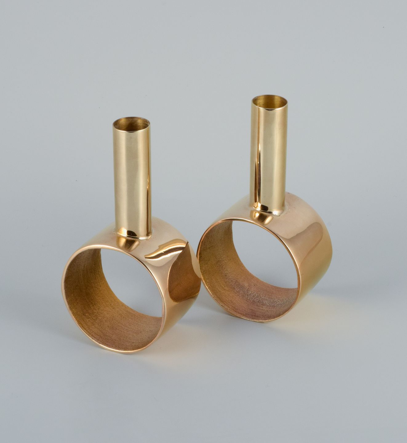 Swedish design. A pair of modernist brass candlesticks.
