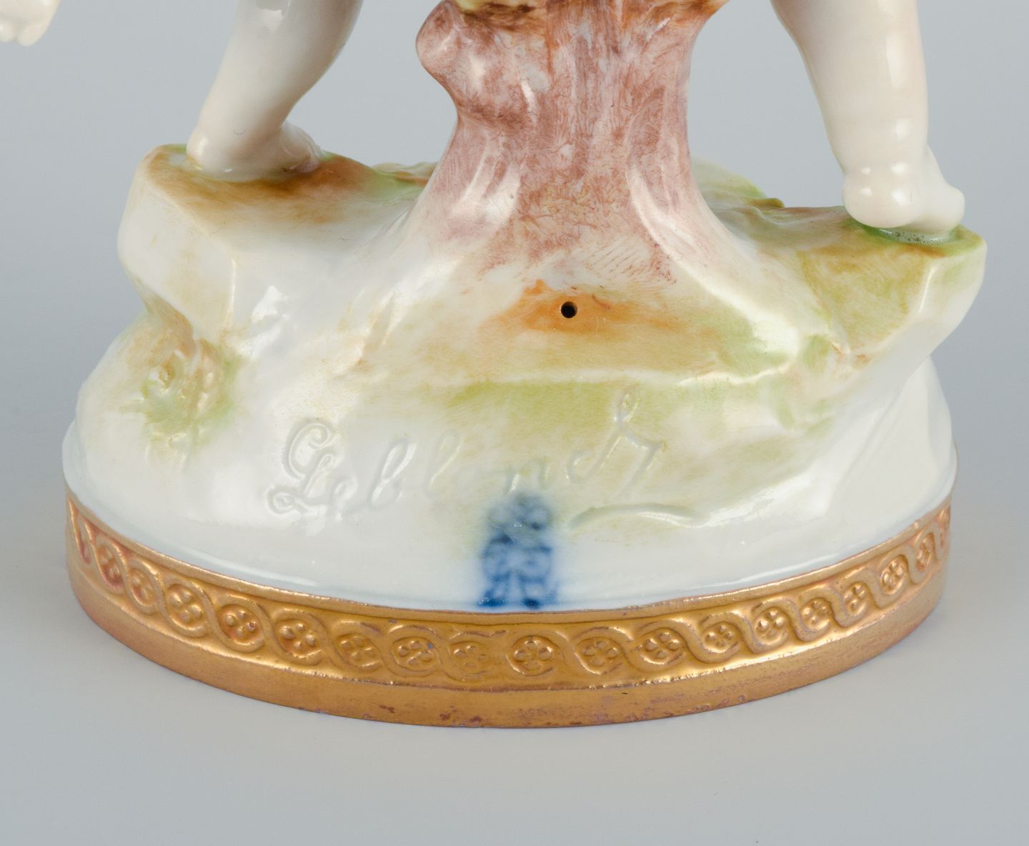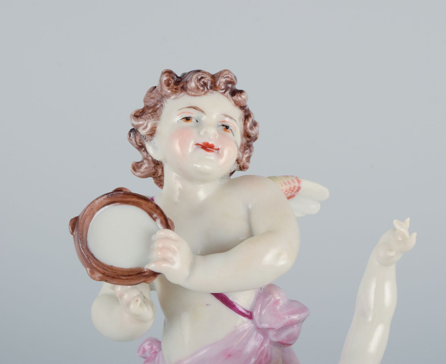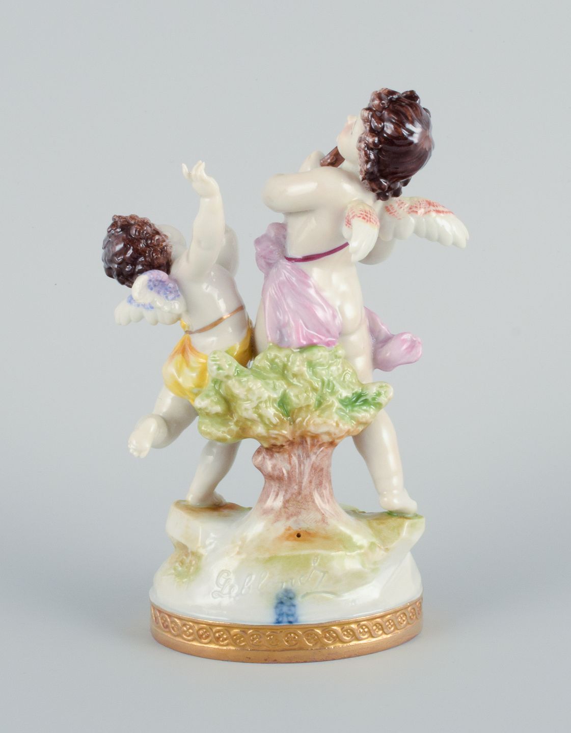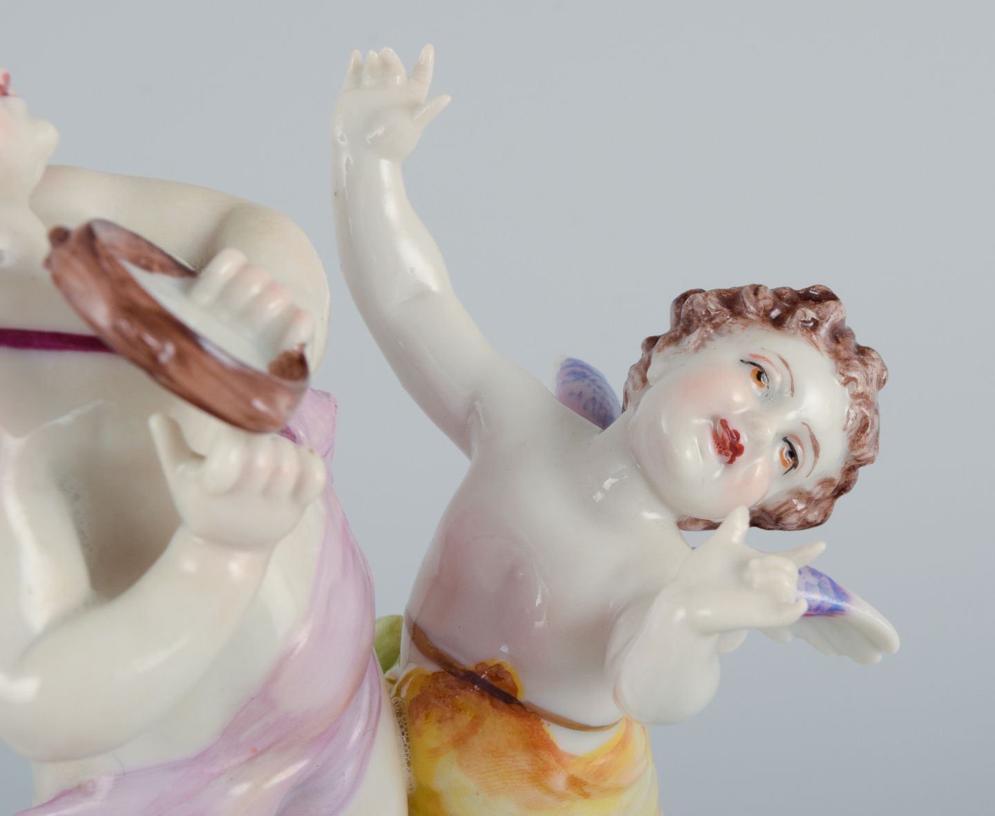 Rudolstadt Volkstedt, Germany, porcelain figure with two putti in play. Signed. Hand painted, overglaze. Early 20th century. In excellent condition. Dimensions: H 15.0 x W 10.0 cm.
