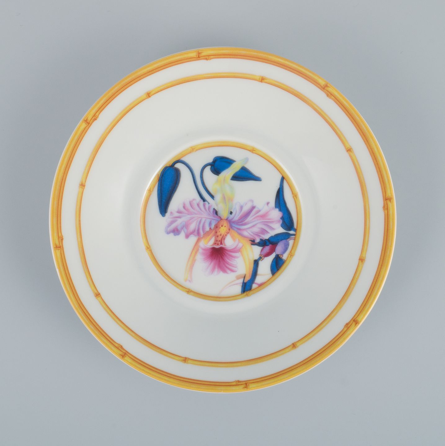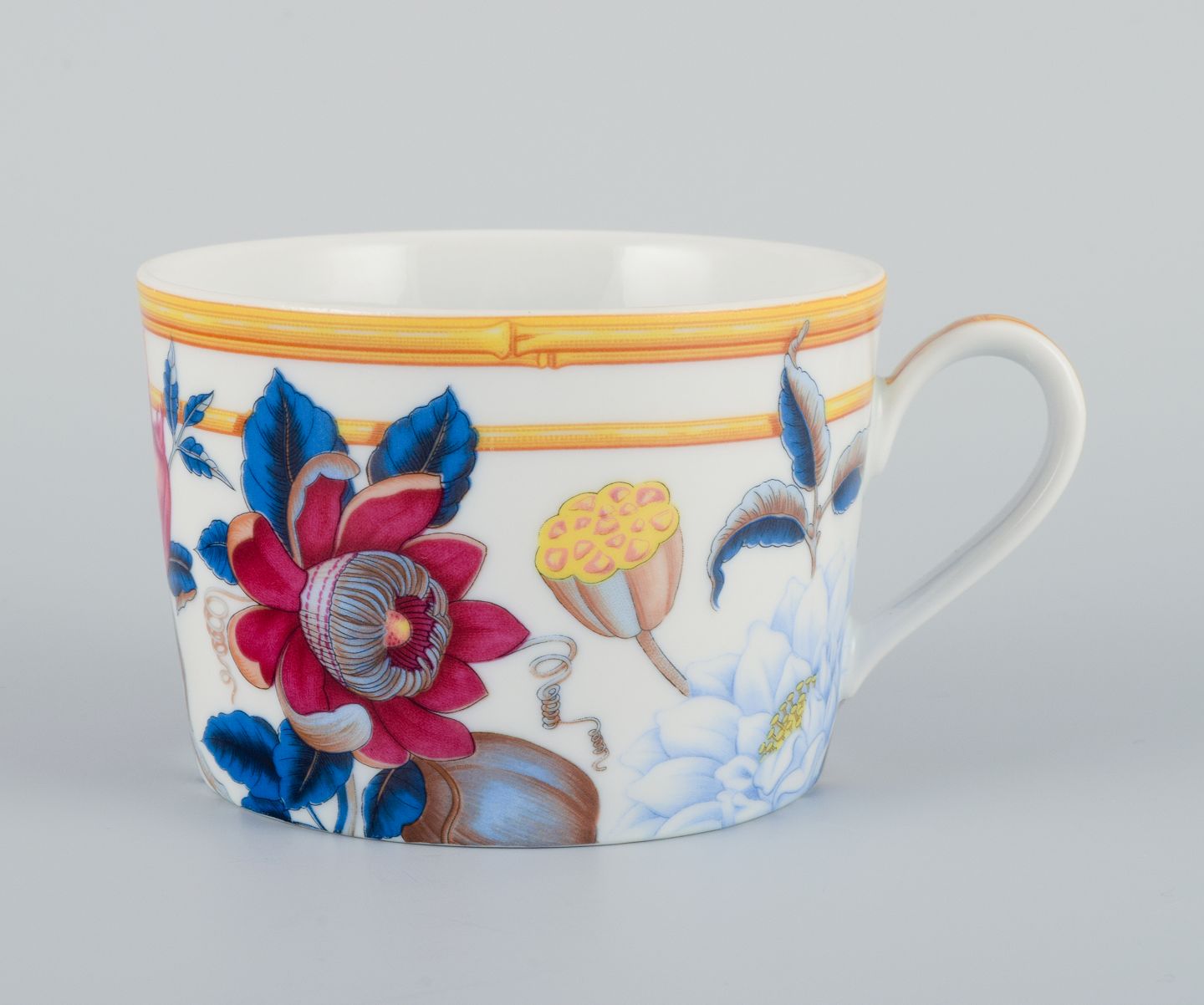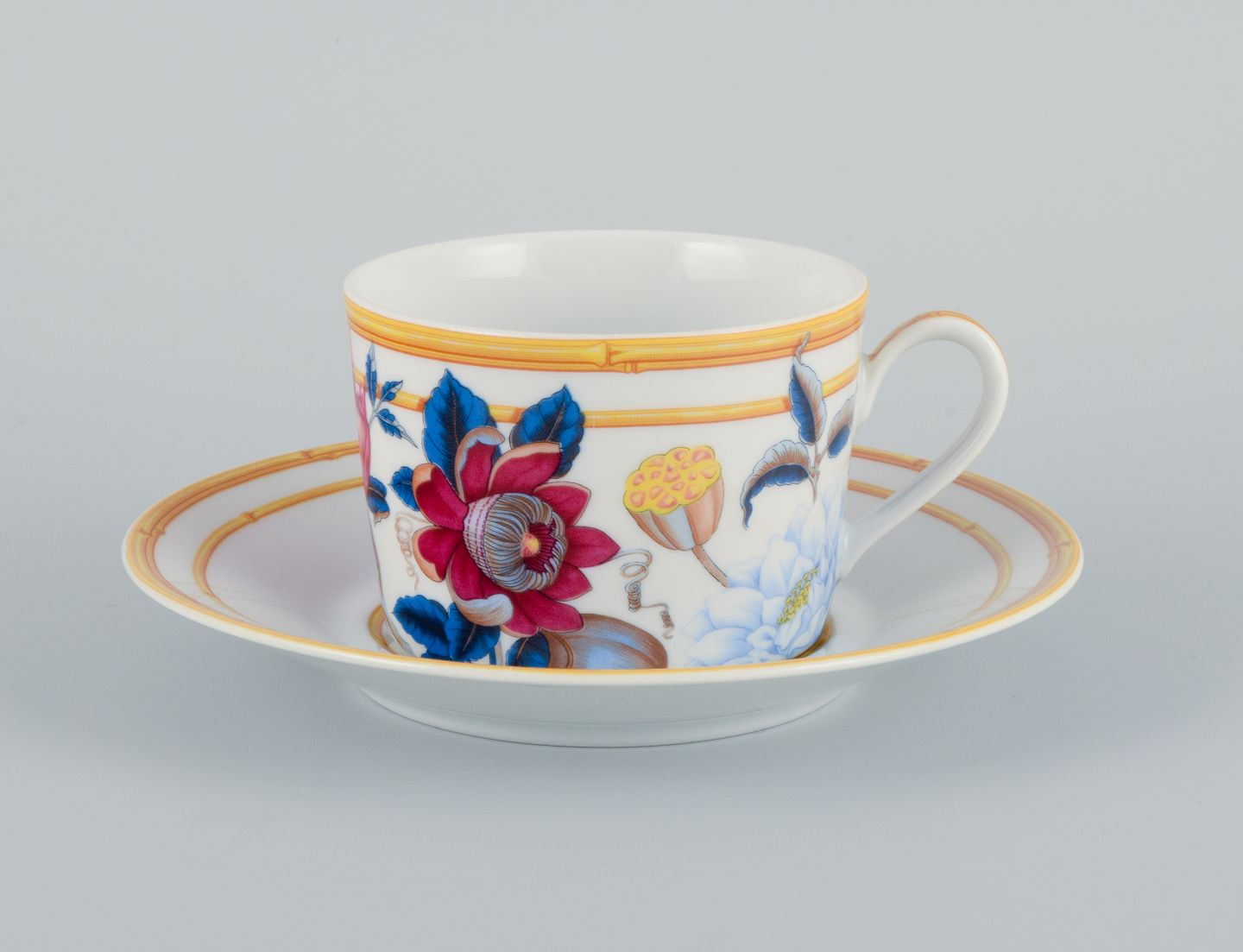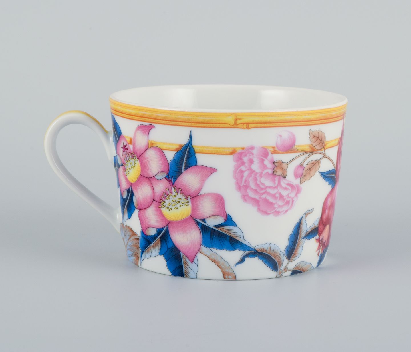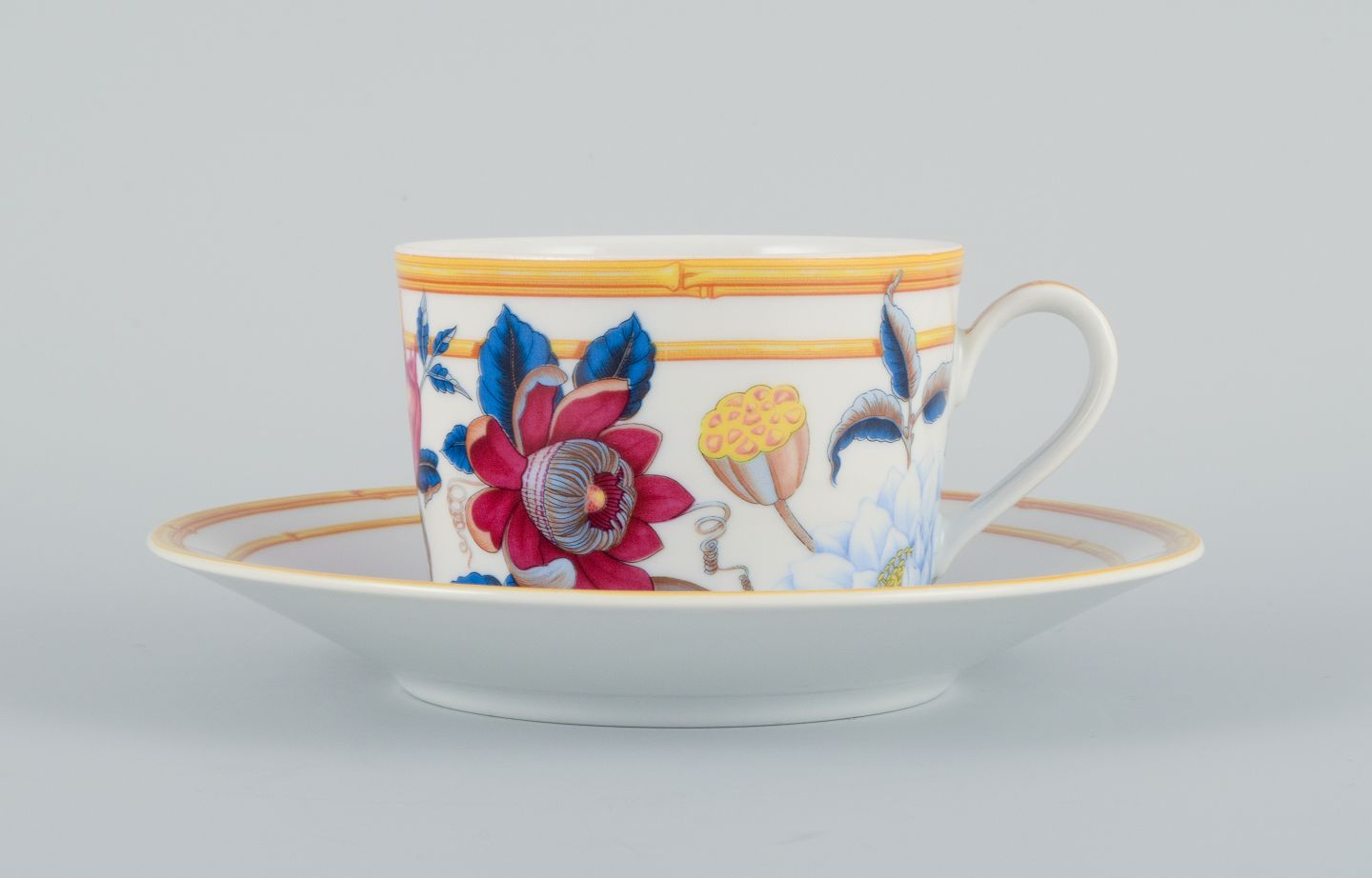 Porcelaine de Paris. "Aurore Tropicale". Fire kaffekopper med underkopper dekoreret med blomster.