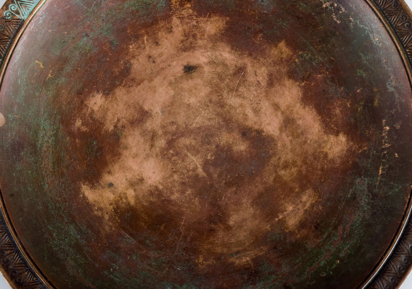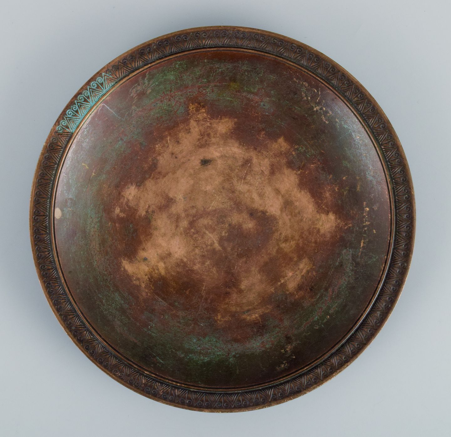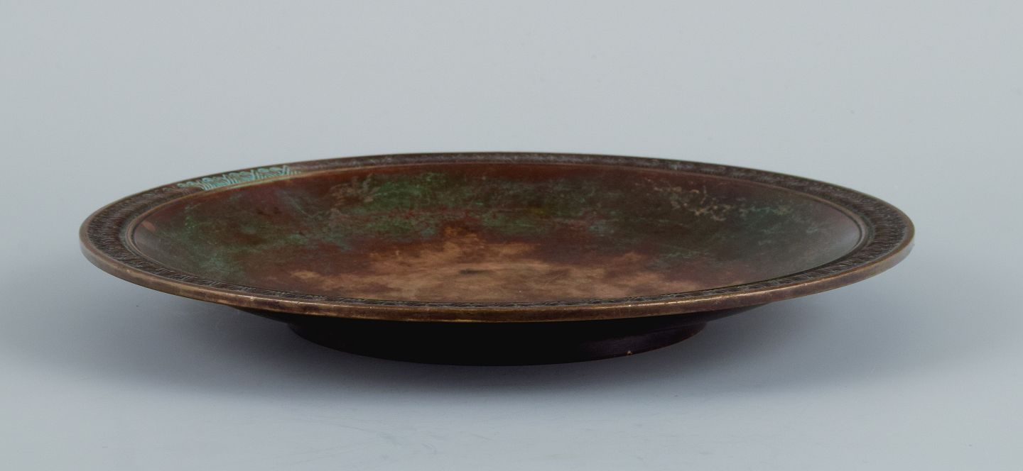 Just Andersen, Art Deco, lav skål i bronze. 1930’erne. Stemplet. Modelnummer B 4 I flot stand med god patina. Mål: D 18,7 x H 2,0 cm.