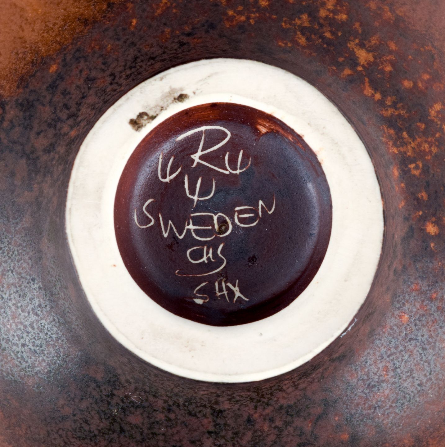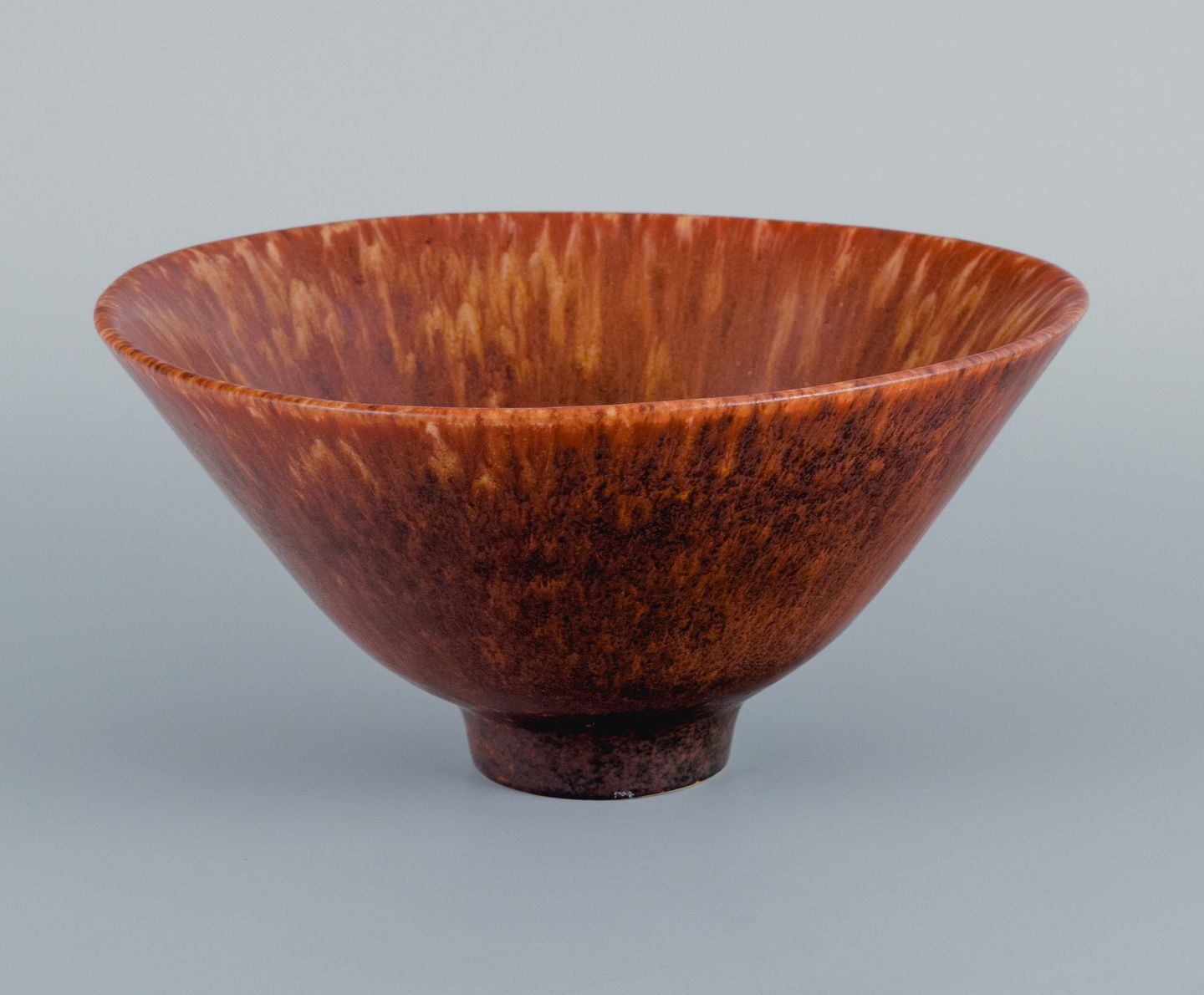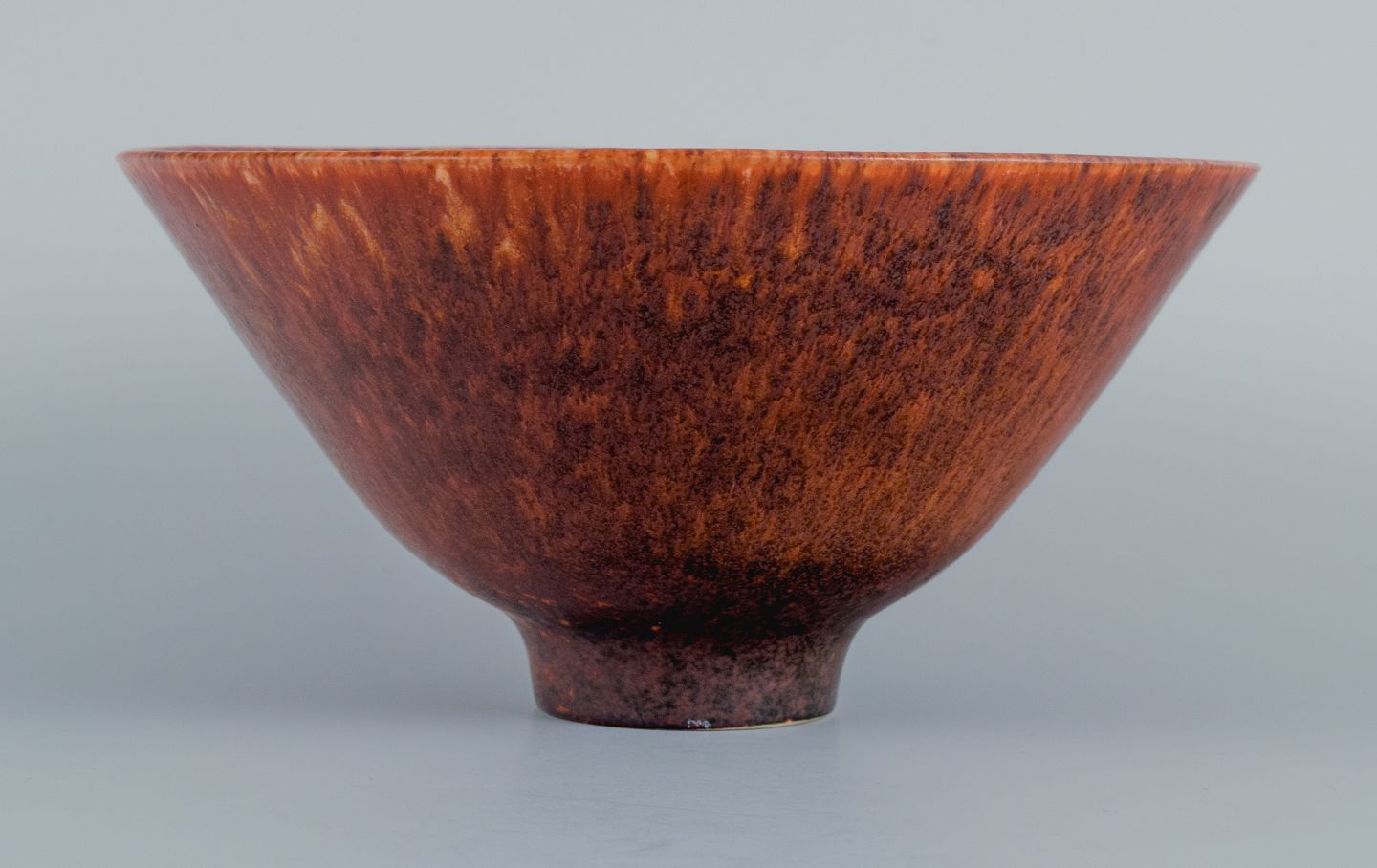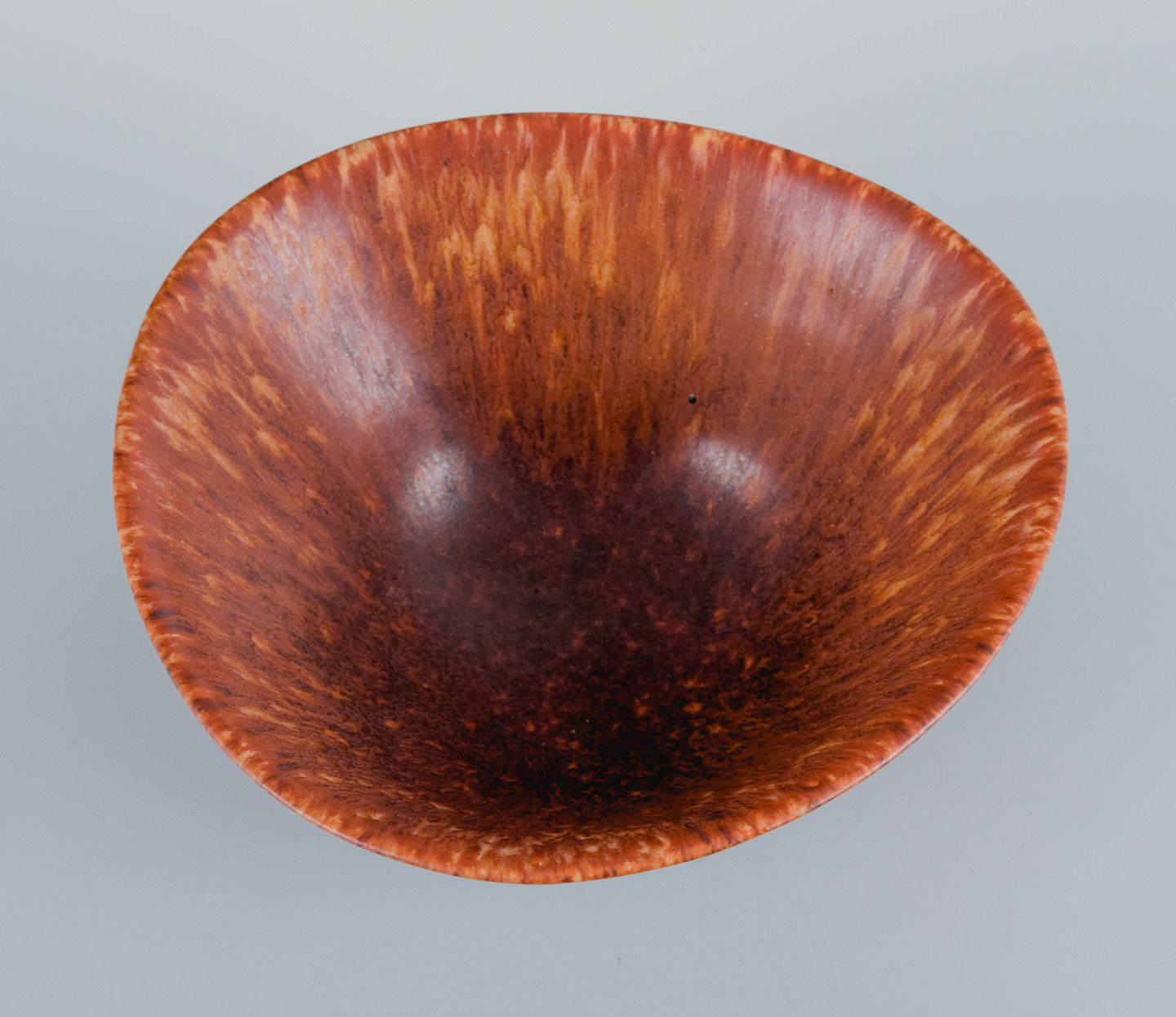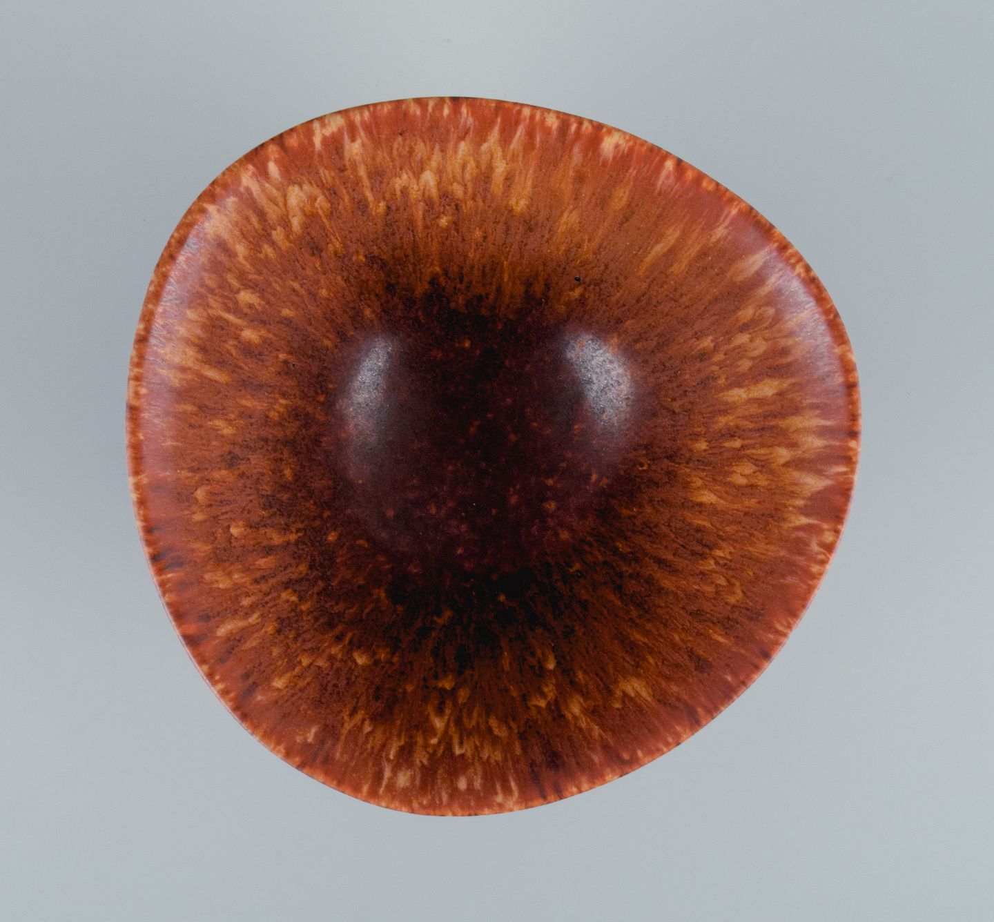 Carl Harry Stålhane (1920-1990) for Rörstrand, keramikskål i brune og orange toner. Midt 1900-tallet. Første sortering. Signeret. I flot stand. Mål: D 14,0 x H 7,0 cm.