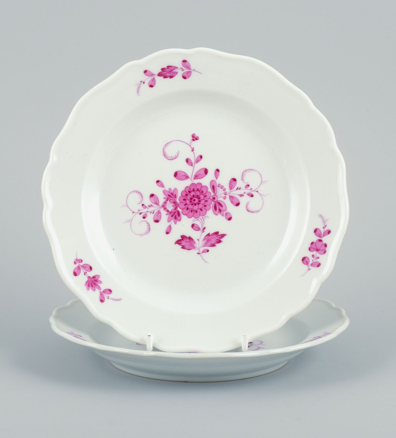 Meissen, Tyskland, Pink Indian, et sæt på to tallerkner. Håndmalet i høj kvalitet Ca. 1900. Stemplet. Femte sortering. I flot stand uden brugspræg. Mål: D 17,6 cm.