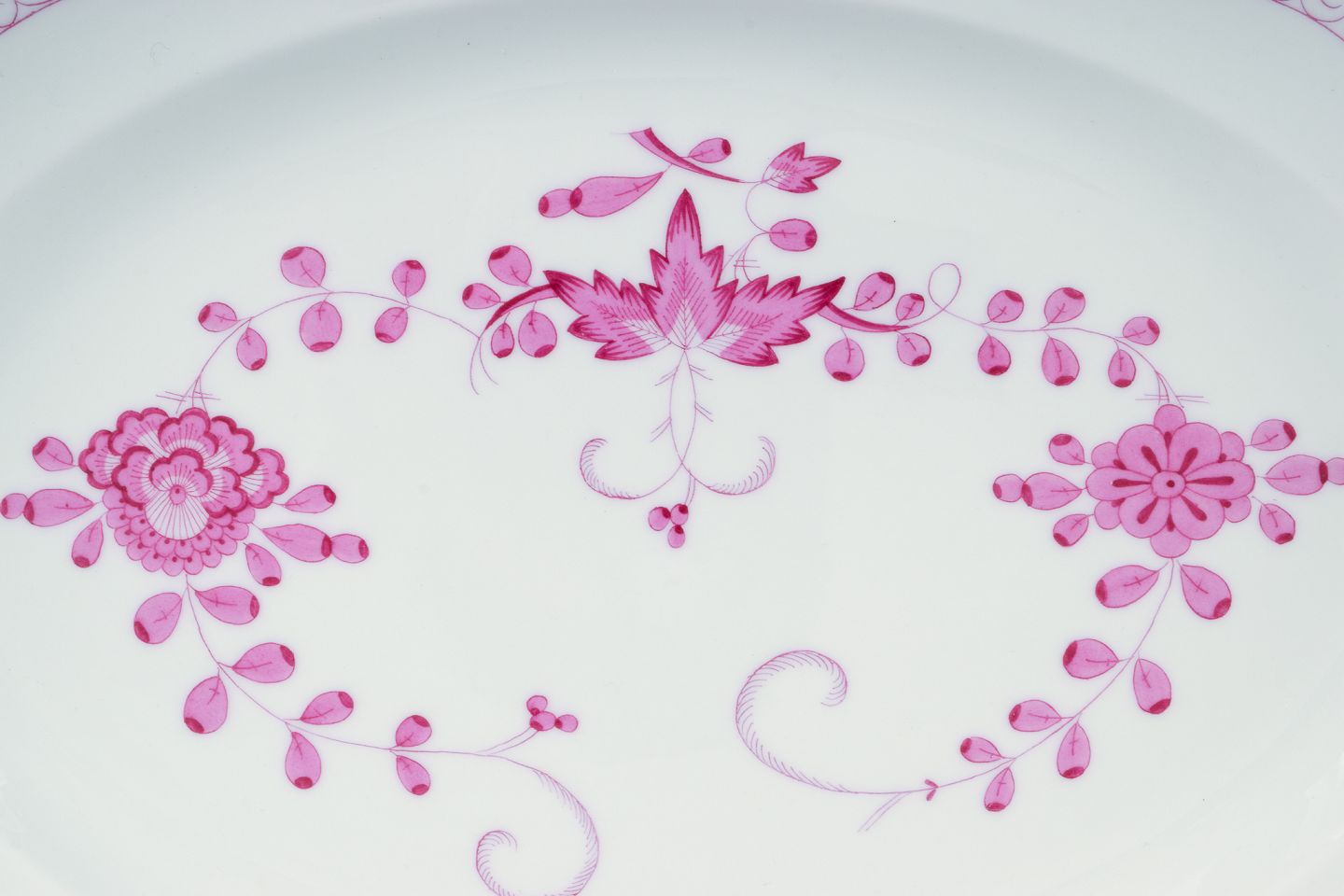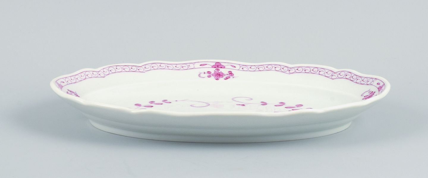 Meissen, Tyskland, Pink Indian, ovalt serveringsfad. Ca. 1900. Stemplet. Tredje sortering. I flot stand uden brugspræg. Mål: L 29,0 x B 21,0 x H 3,0 cm.