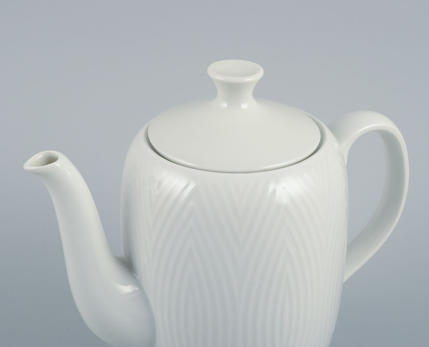 Royal Copenhagen, Salto, kaffekande i hvidt porcelæn. 1961. Model 14433. Stemplet. Første sortering. Perfekt stand. Mål: H 19,0 x D 19,5 cm. inklusive hank og tud.