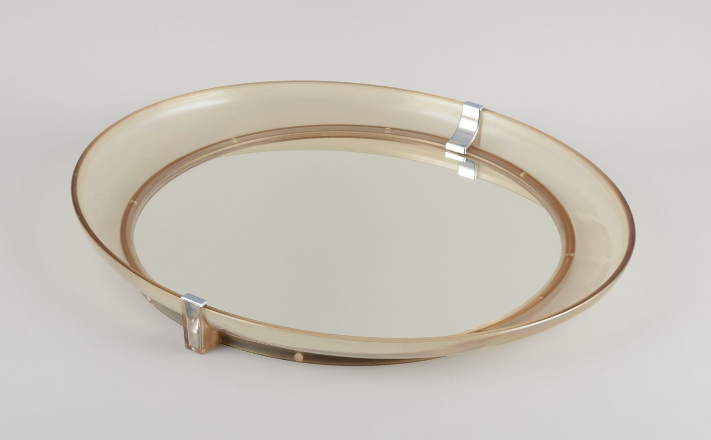 Max Ingrand for Fontana Arte. Wall mirror. Produced 1977. Designed in the early 1960s. In excellent condition. Dimensions mirror: W 36.5 x H 37.0 cm. Total dimensions: W 43.5 x H 50.0 cm.