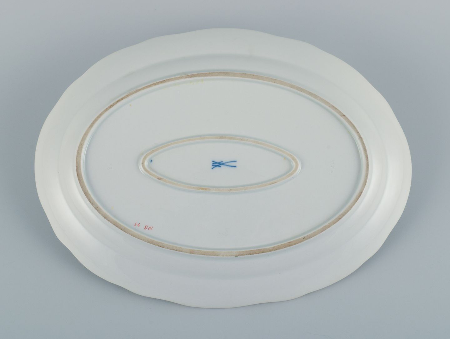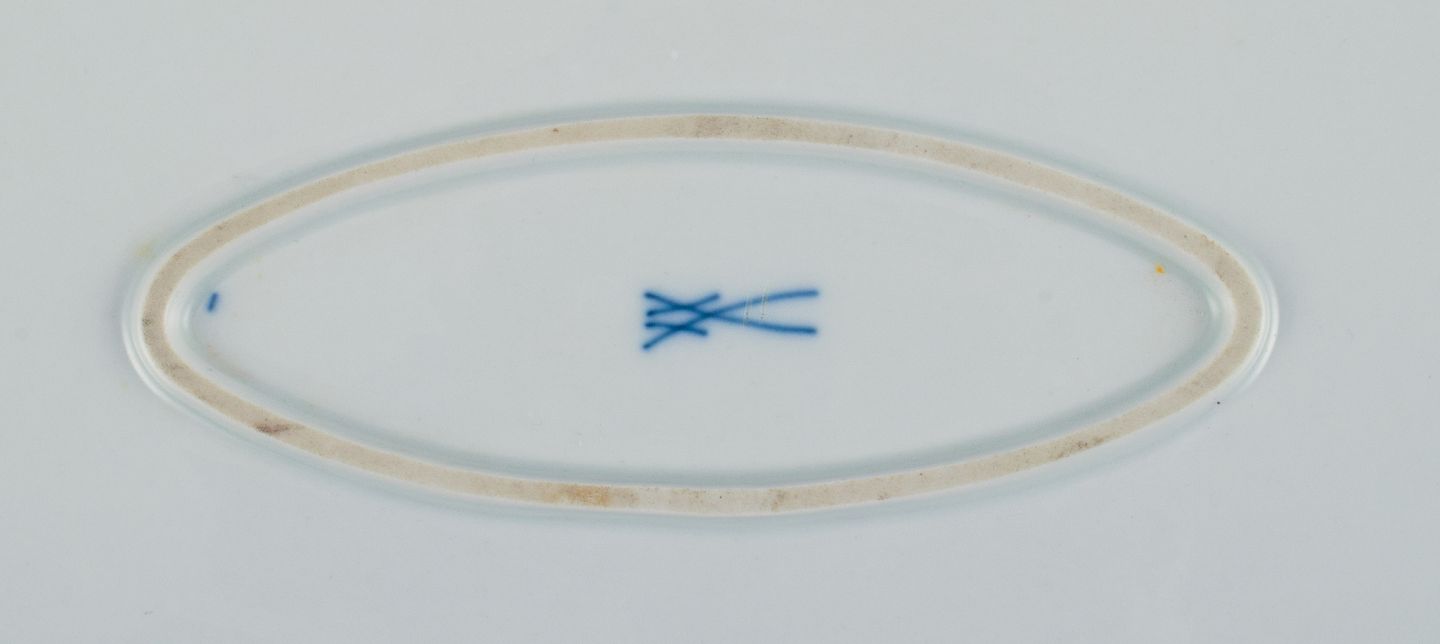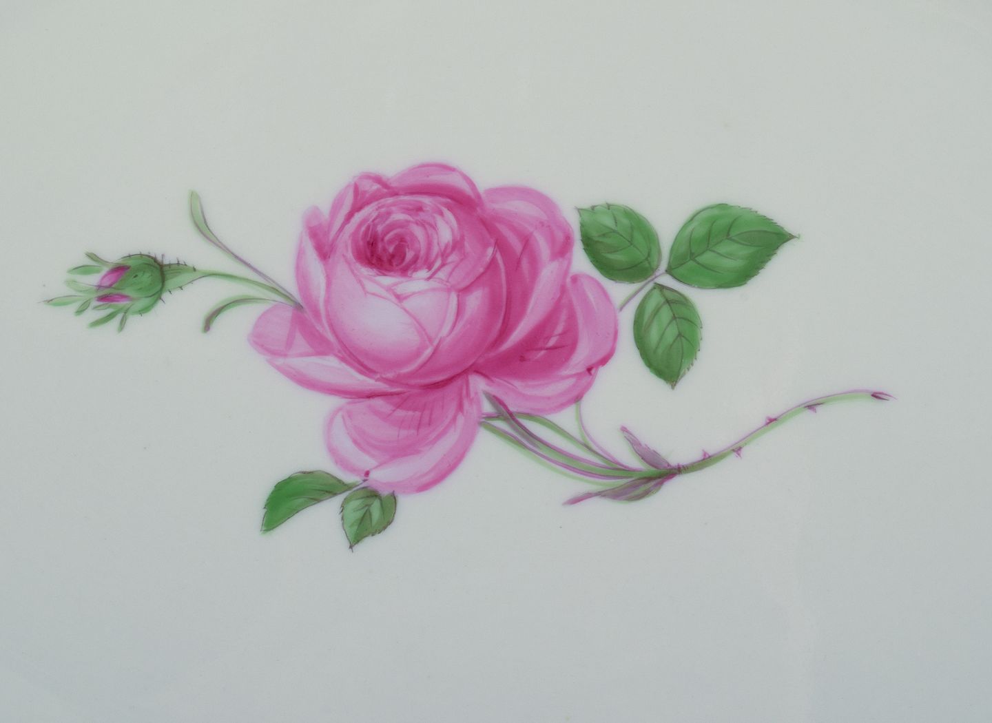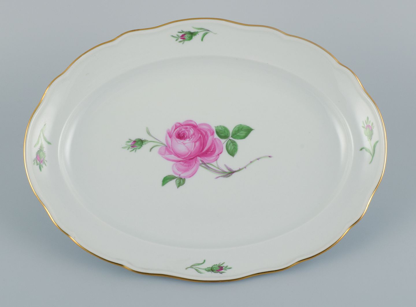 Meissen, Tyskland. Ovalt porcelænsfad dekoreret med lyserød rose.