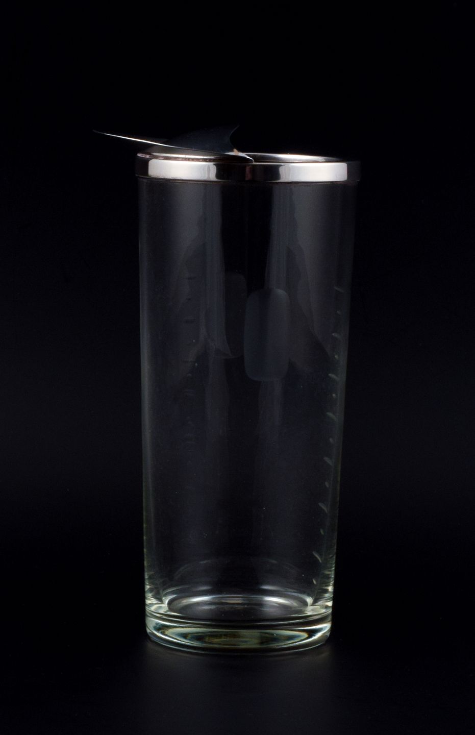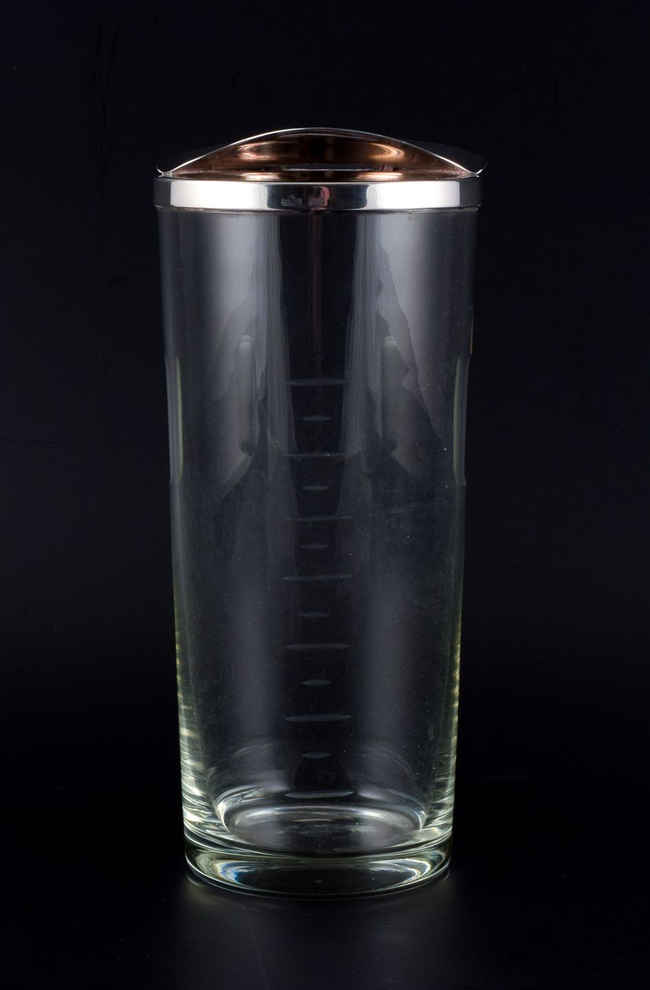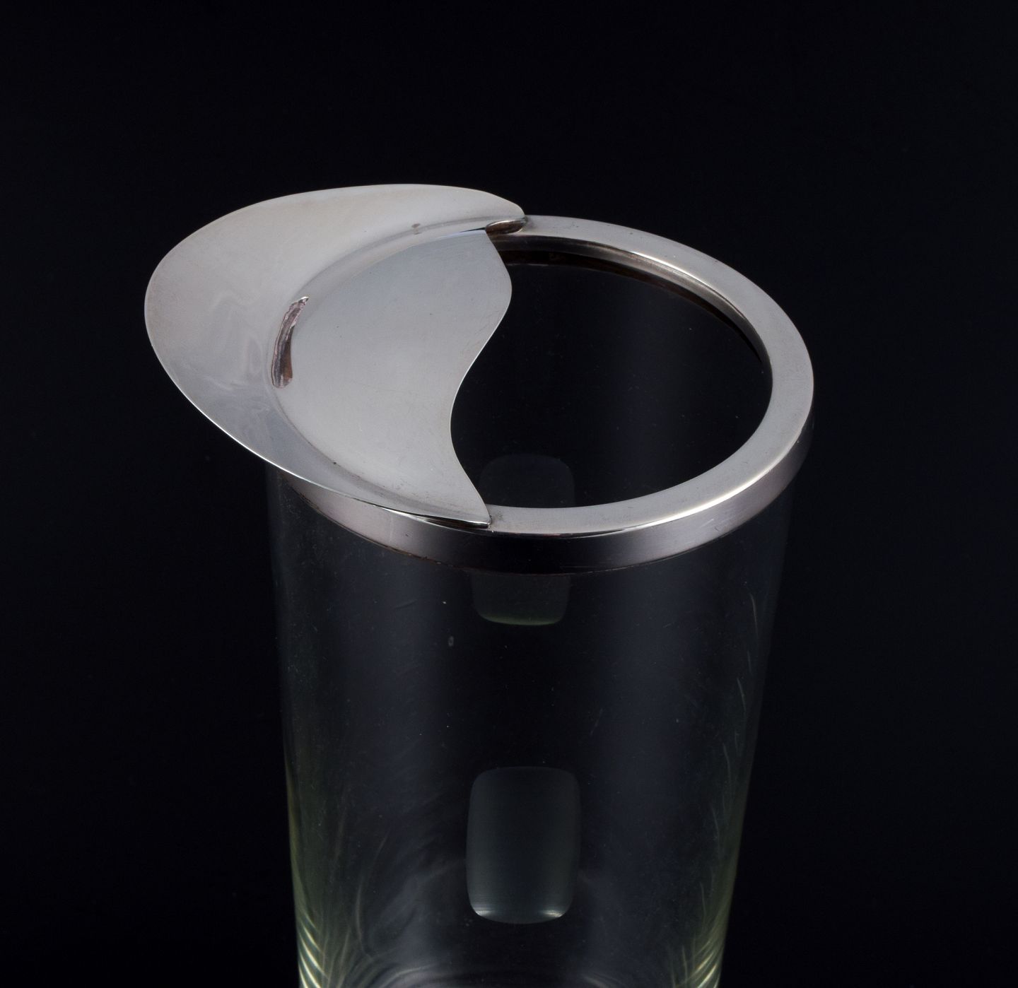 Cocktaimixer af klart glas med montering i sterlingsølv.