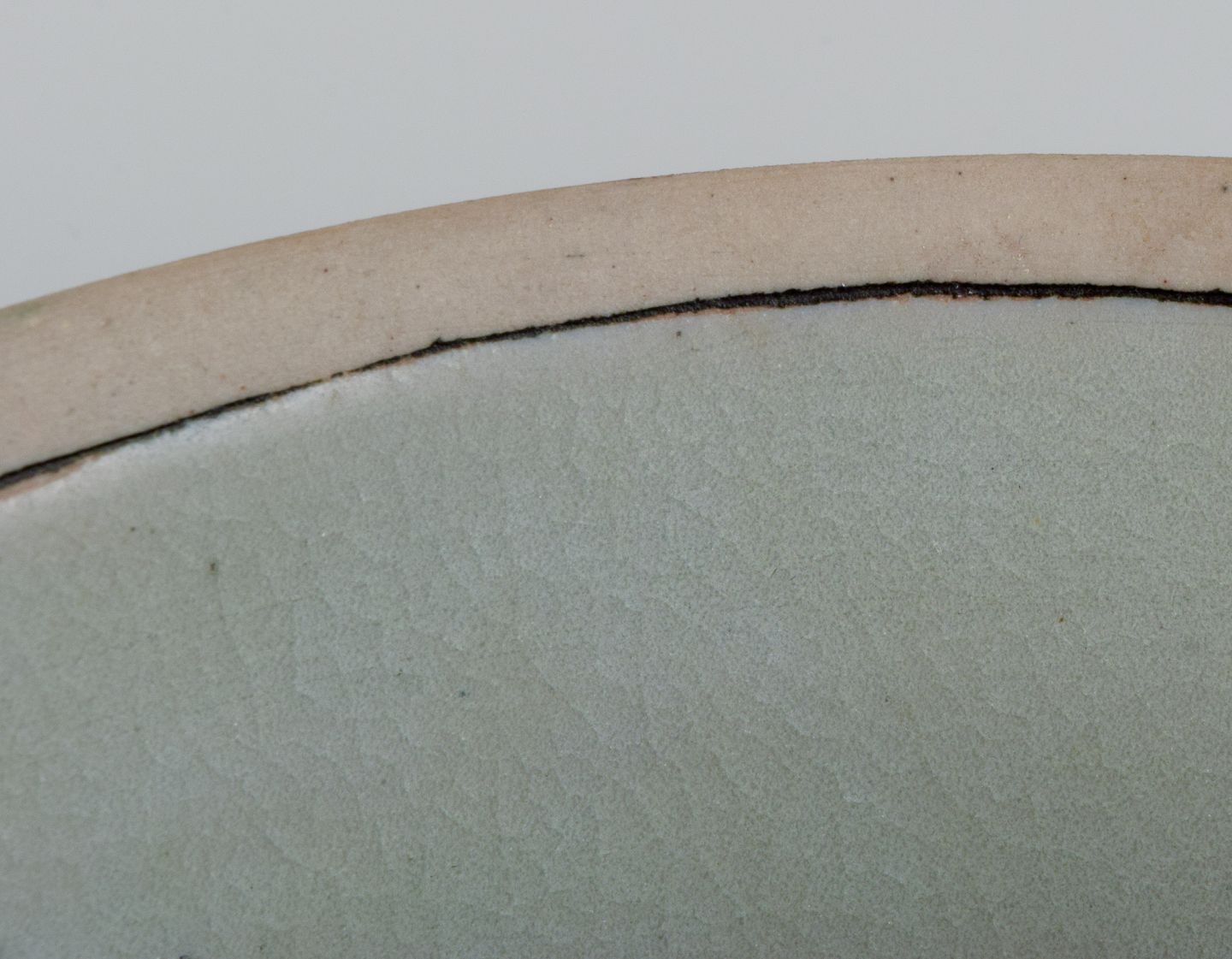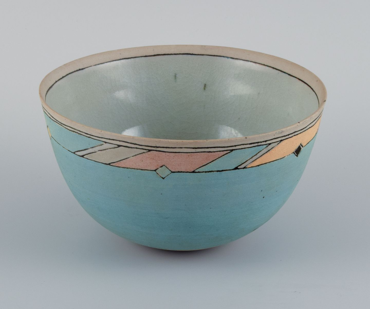 Ane-Katrine von Bülow, dansk samtidskeramiker. Unikaskål i turkis med geometriske felter. Ca. 2000. Signeret. Mål: D 17,0 x H 9,5 cm.