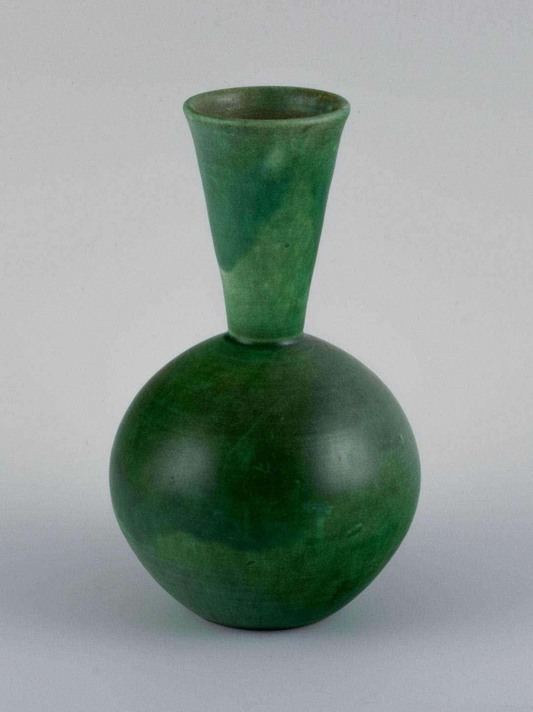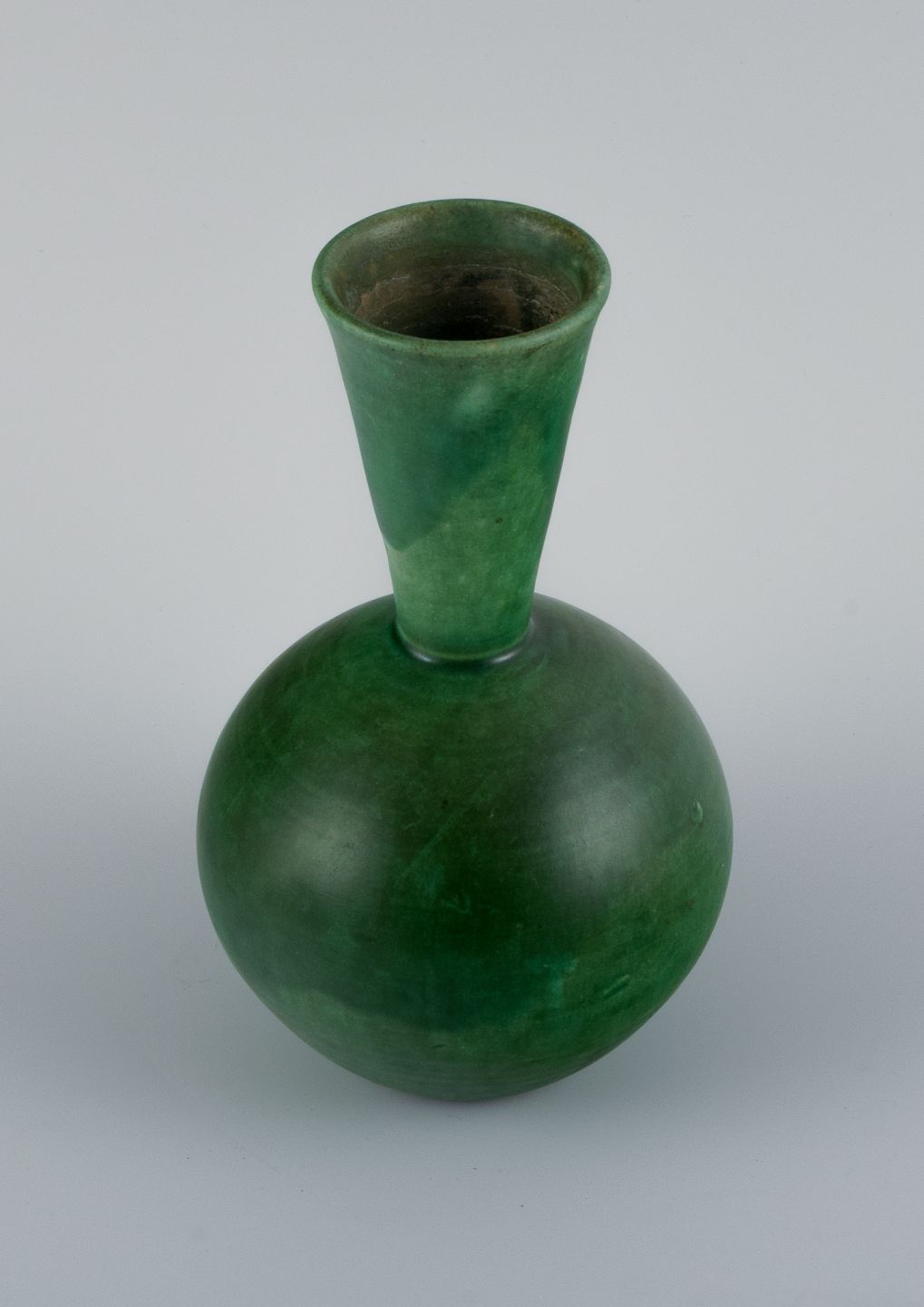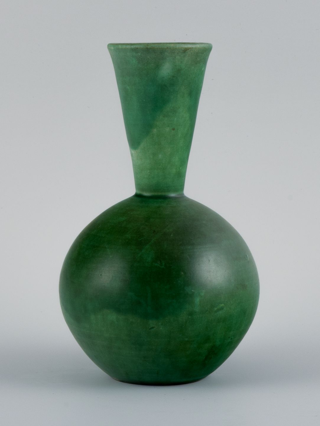 Danish ceramicist, handmade vase with glaze in green tones. Mid 20th century. In perfect condition. Dimensions: H 18.5 x D 10.5 cm.