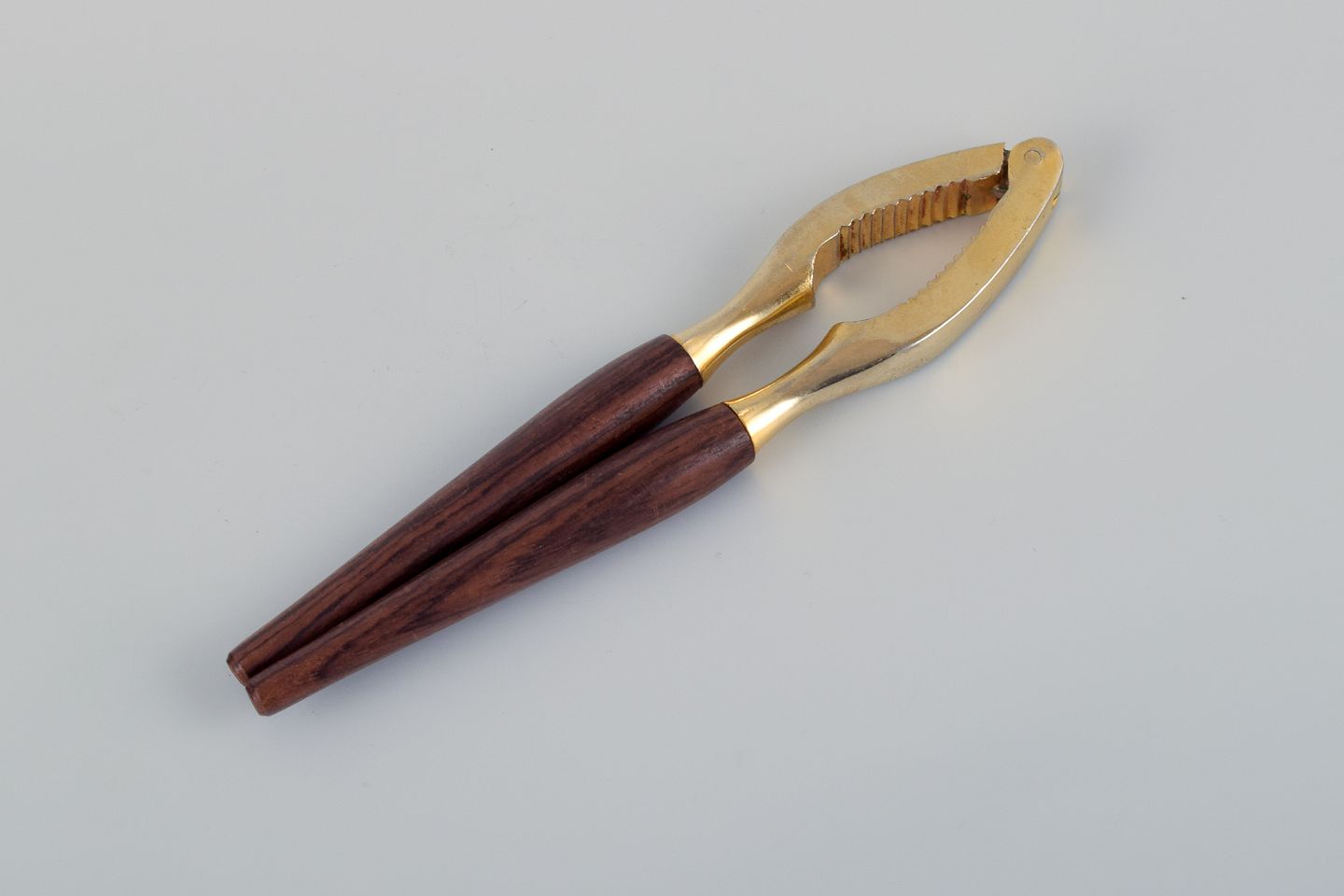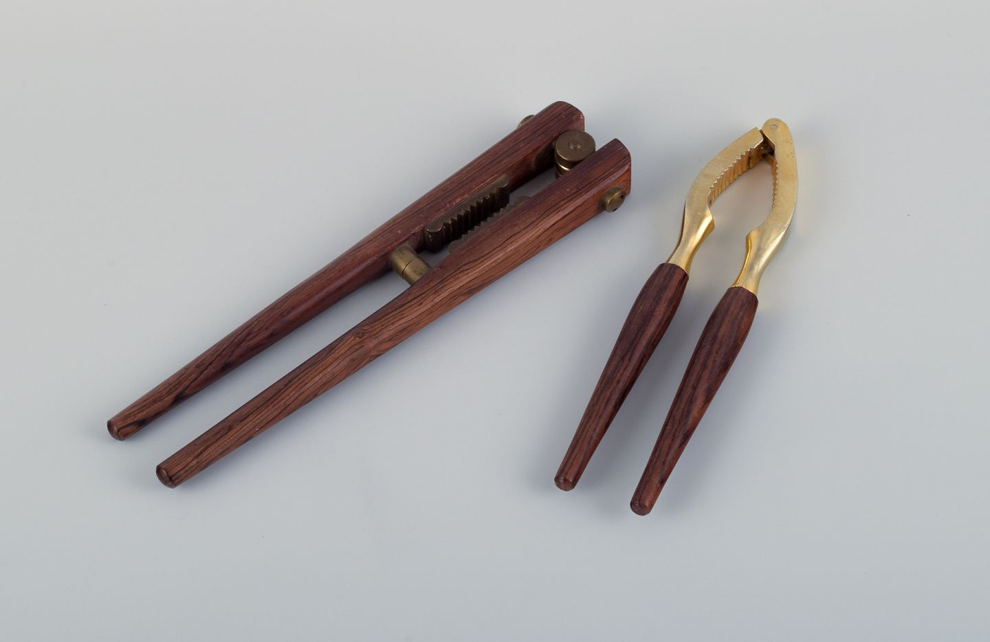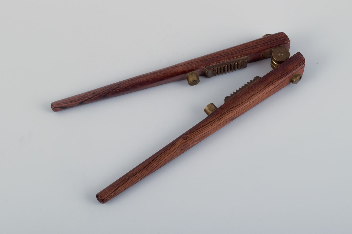 To nøddeknækkere i dansk design, messing og teak. Ca. 1960’erne. I flot stand. Den længste måler: L 20,5 cm.
