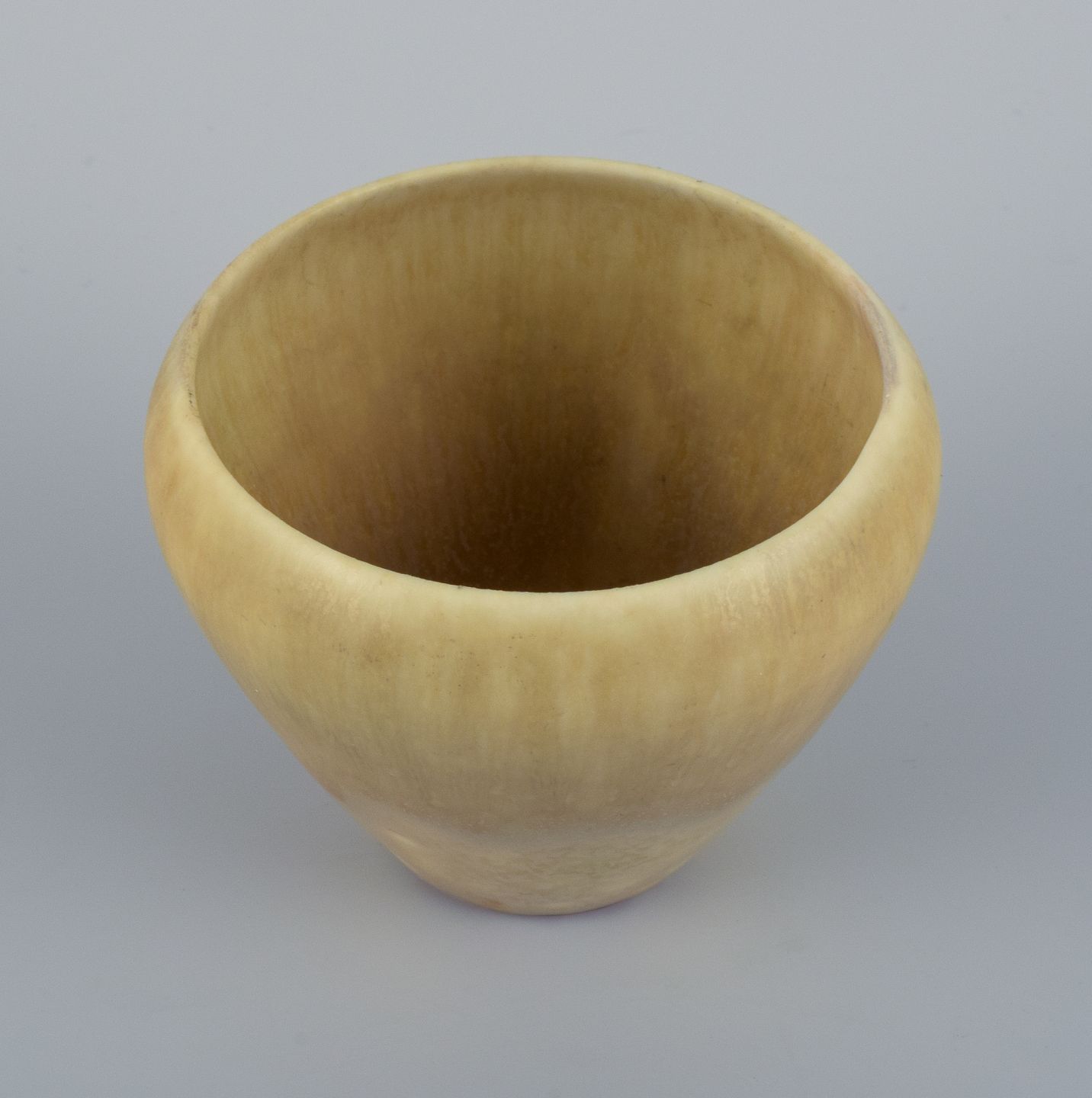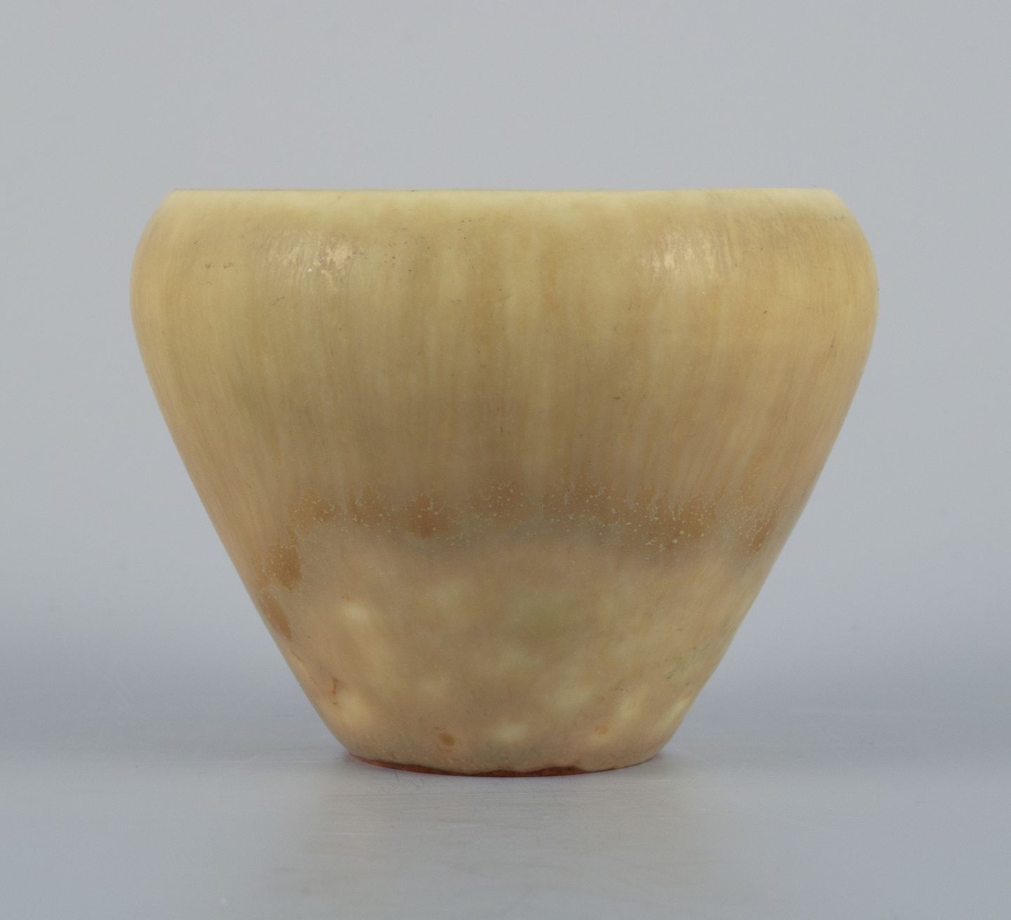 Carl Harry Stålhane for Rörstrand, keramikvase med harepelsglasur i gule nuancer.