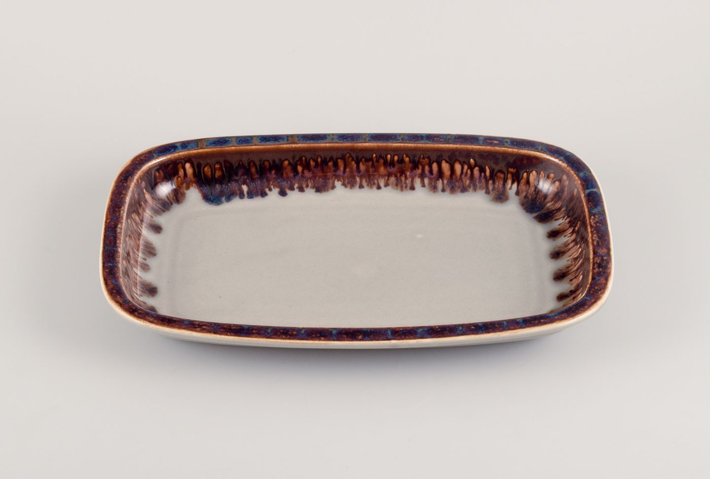 Jens Harald Quistgaard for Bing & Grøndahl, Mexico retrostel, rundt fad samt ovalt fad i stentøj.