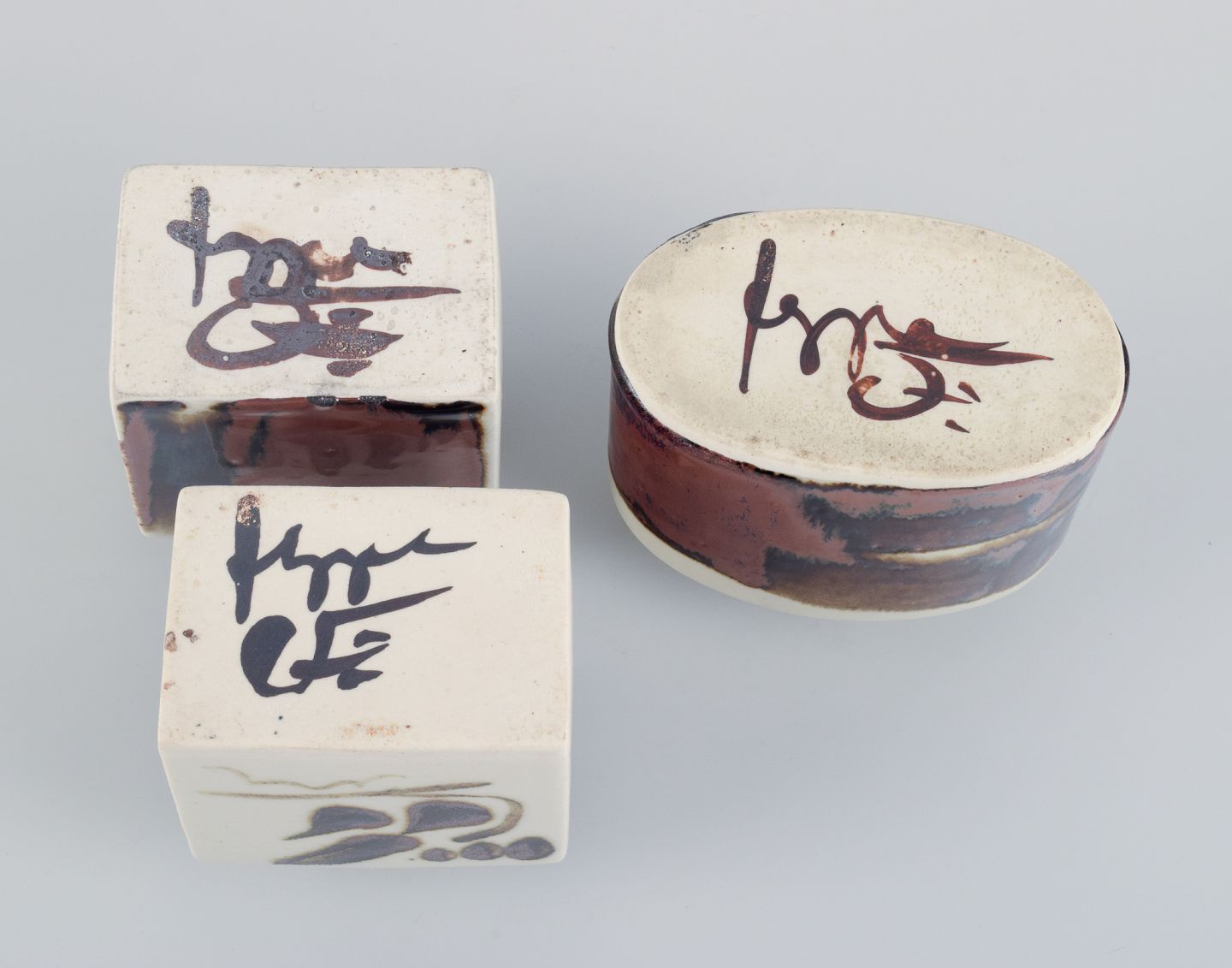 Niels Oluf Thorkelin Eriksen, Danish ceramicist, three unique vases with abstract motifs.