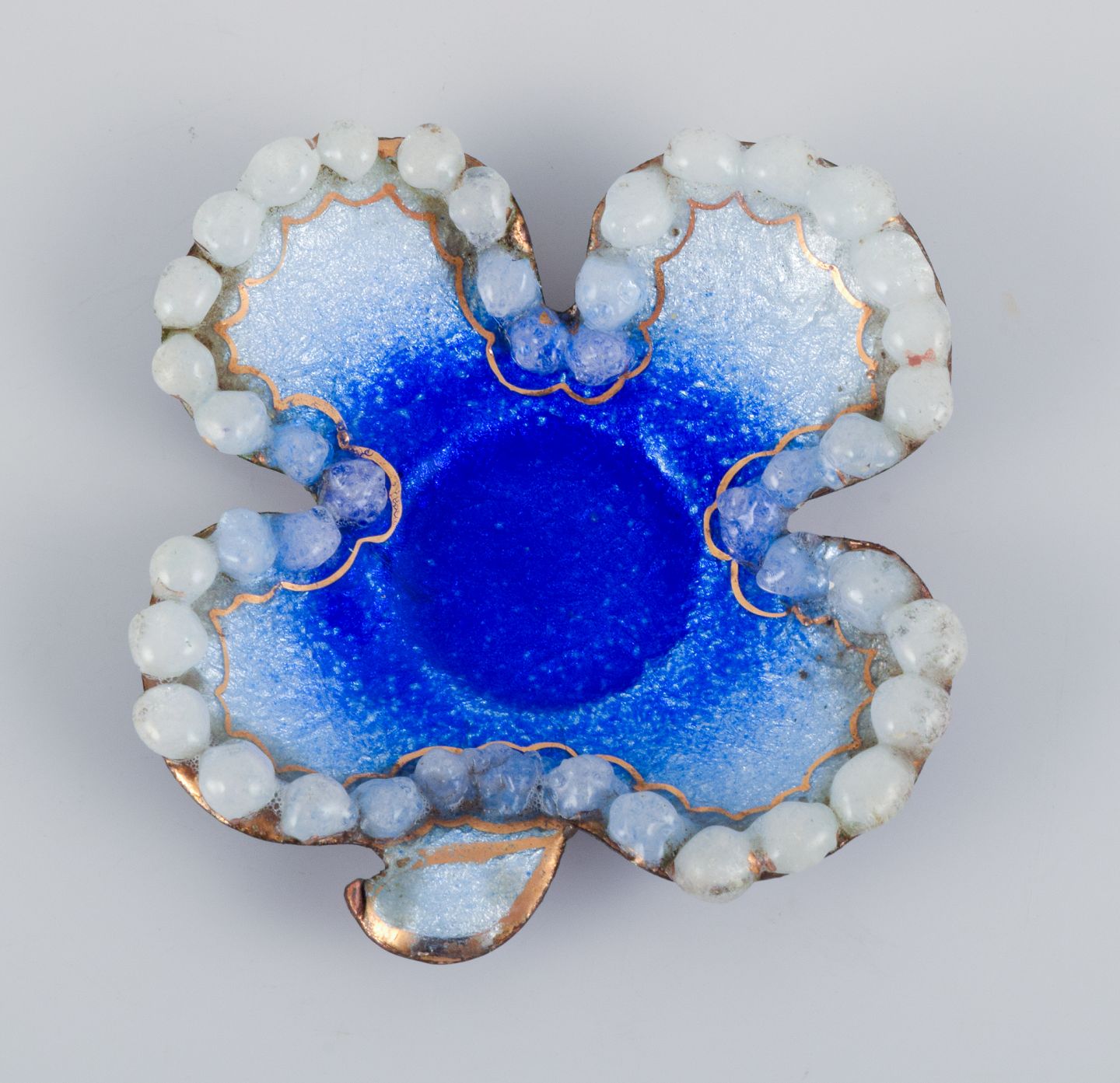 Castel for Limoges, France, enamel bowl with glass beads around the edge. Blue enamel. Mid-20th century. In perfect condition. Signed. Dimensions: D 9.0 cm.