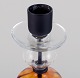 Erik Höglund for Kosta Boda, høj lysestage i mundblæst glas og støbejern. 1970’erne. I flot stand. Mål: H 36,0 cm. x D 18,5 cm. (fod) Passer til lys på 33 mm.
