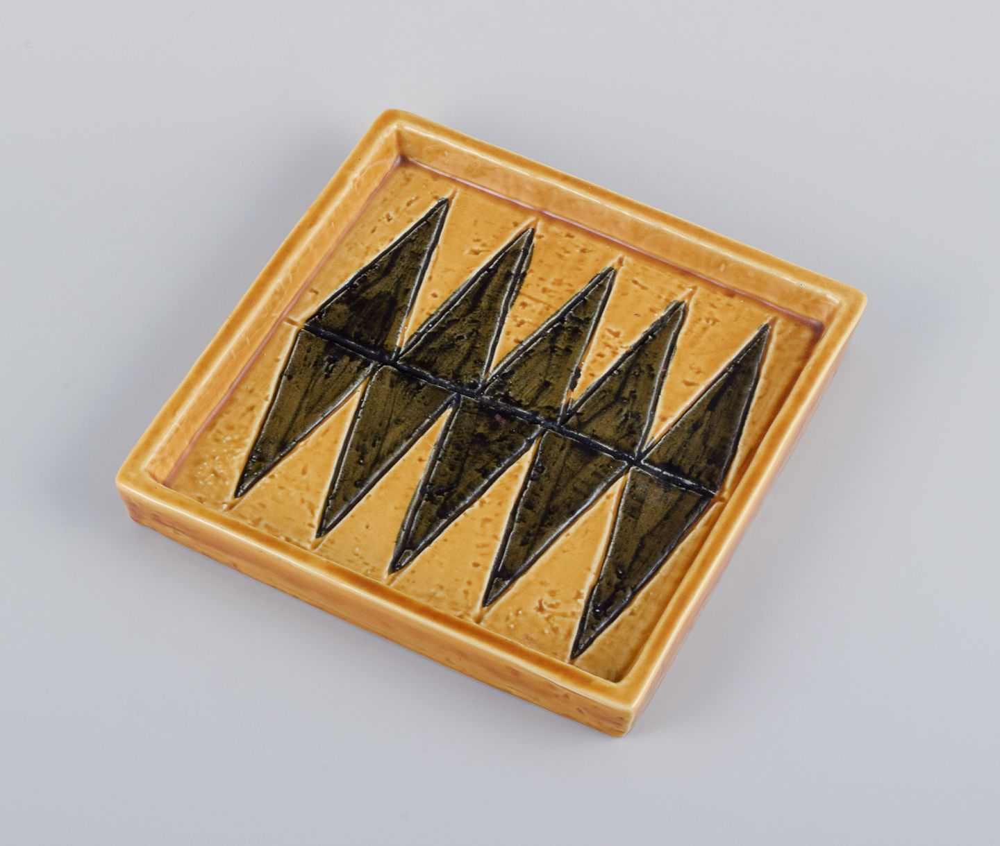 Rörstrand, kvadratisk keramikfad, Harlekin serien. 1960’erne. Stemplet. Første sortering. Perfekt stand. Mål: D 16,7 cm. x H 2,0 cm.