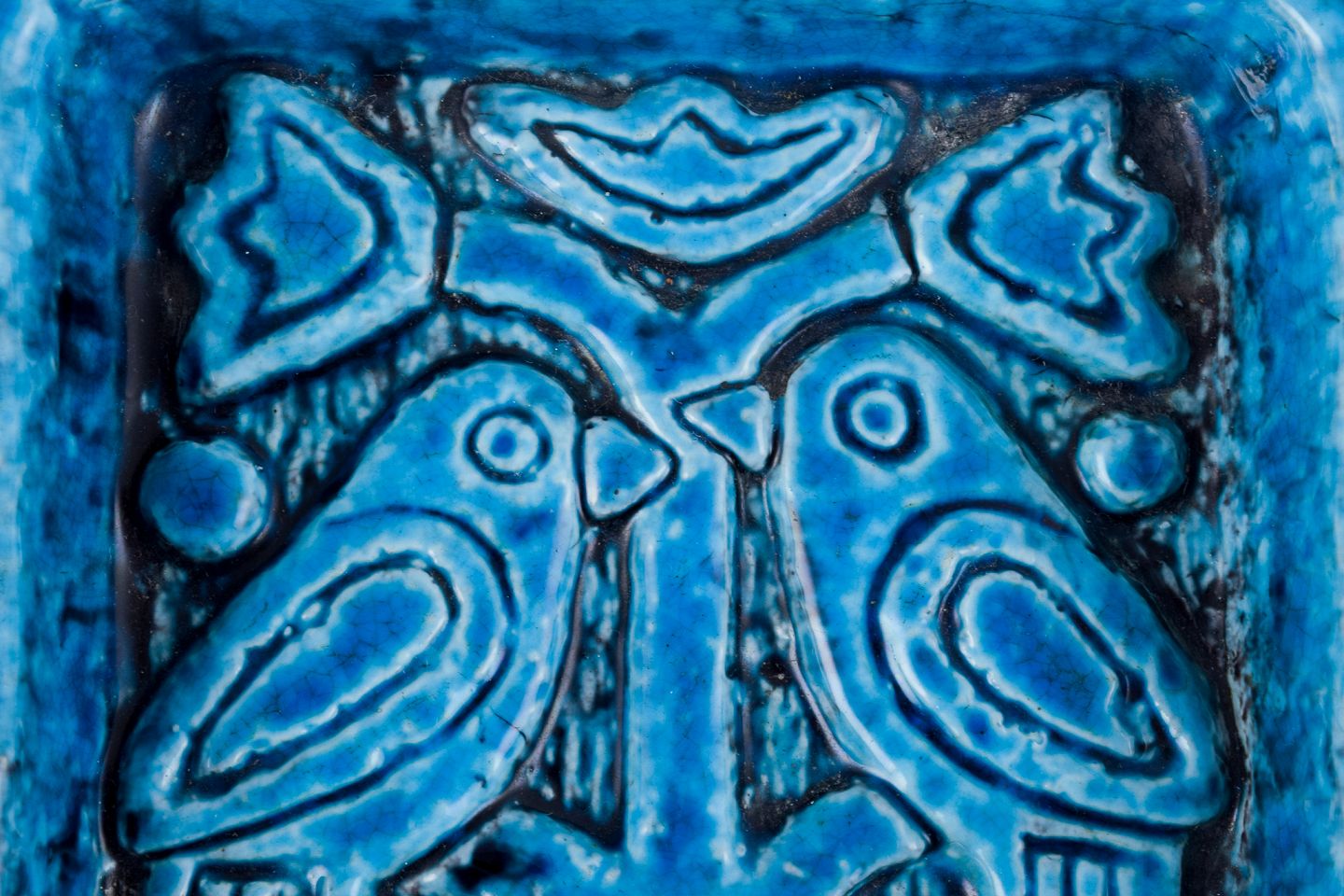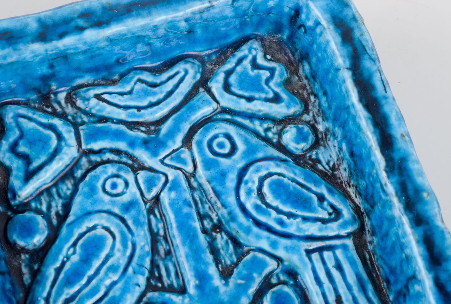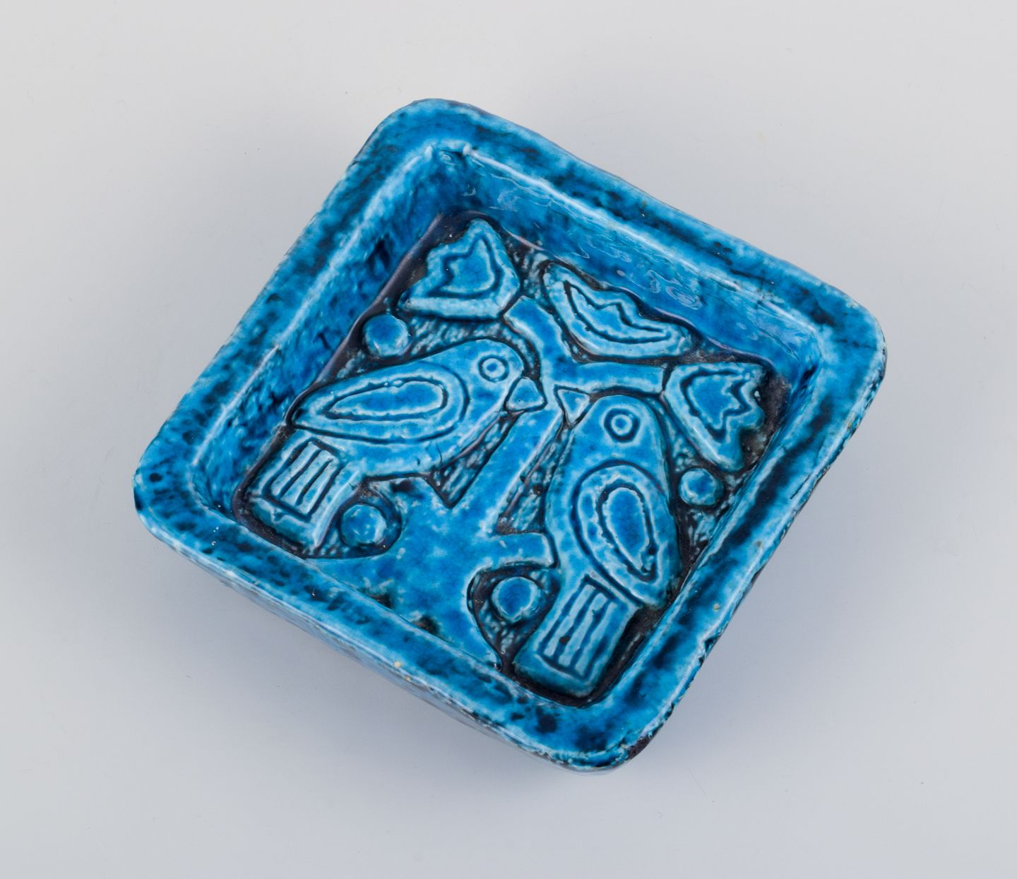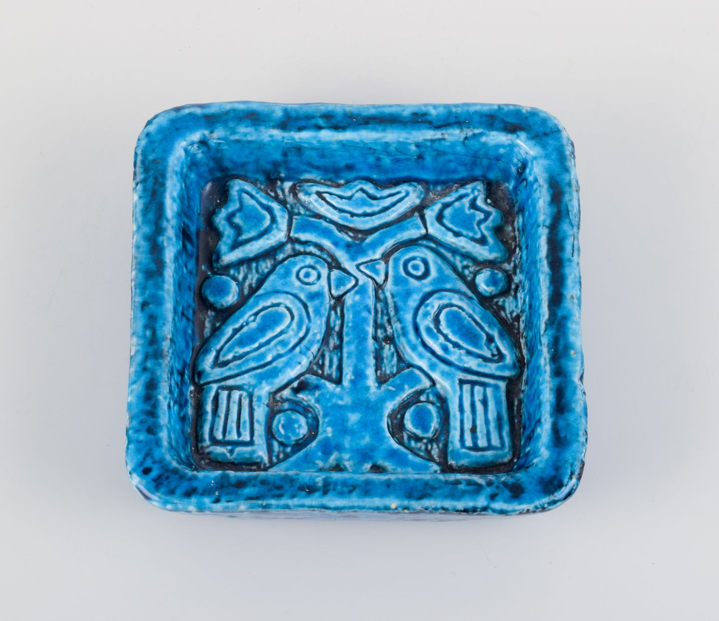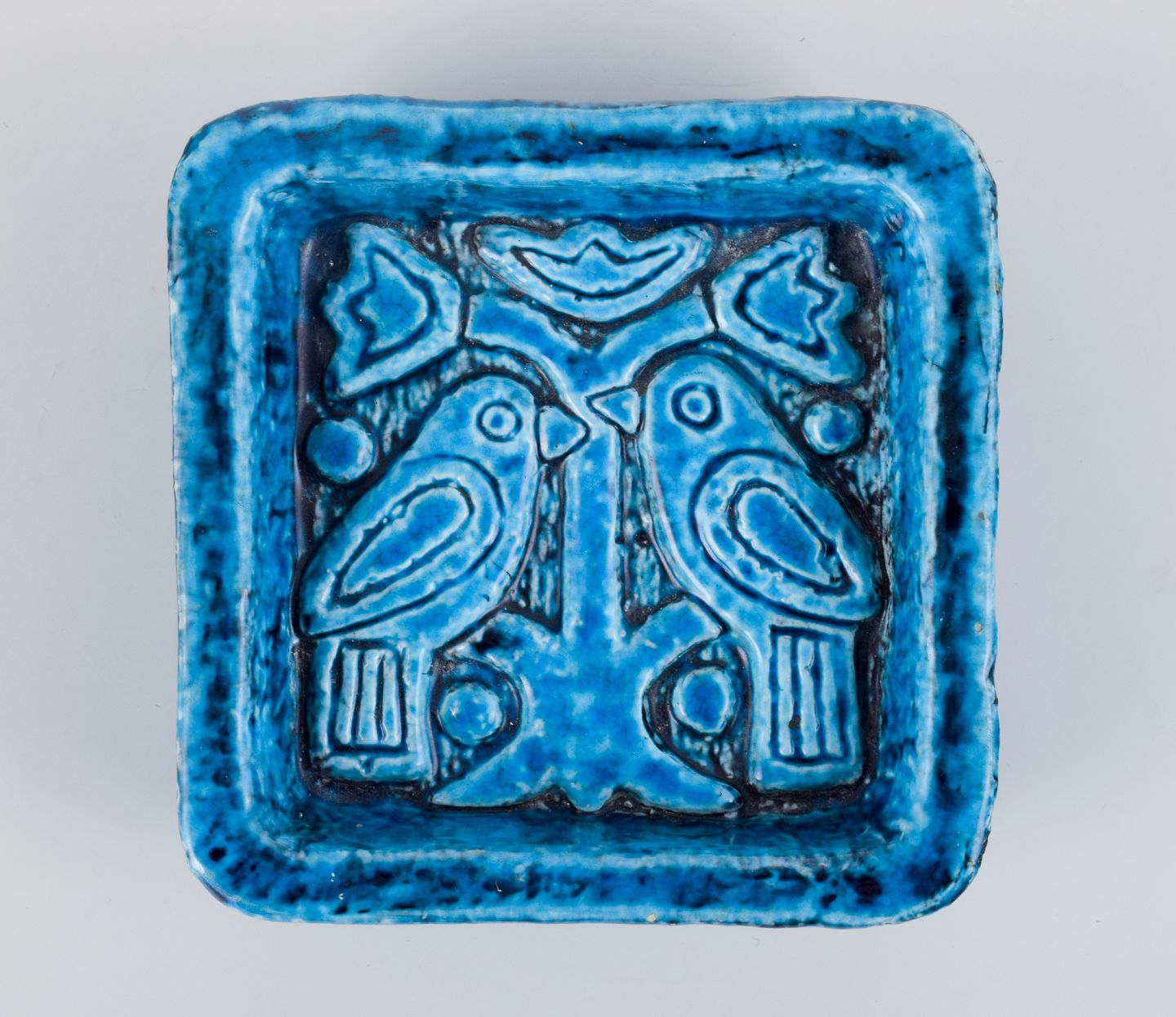 Charlotte Hamilton for Rörstrand, keramikskål i turkis glasur dekoreret med fugle i træ.