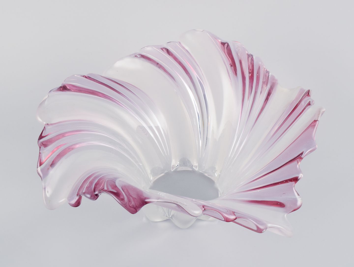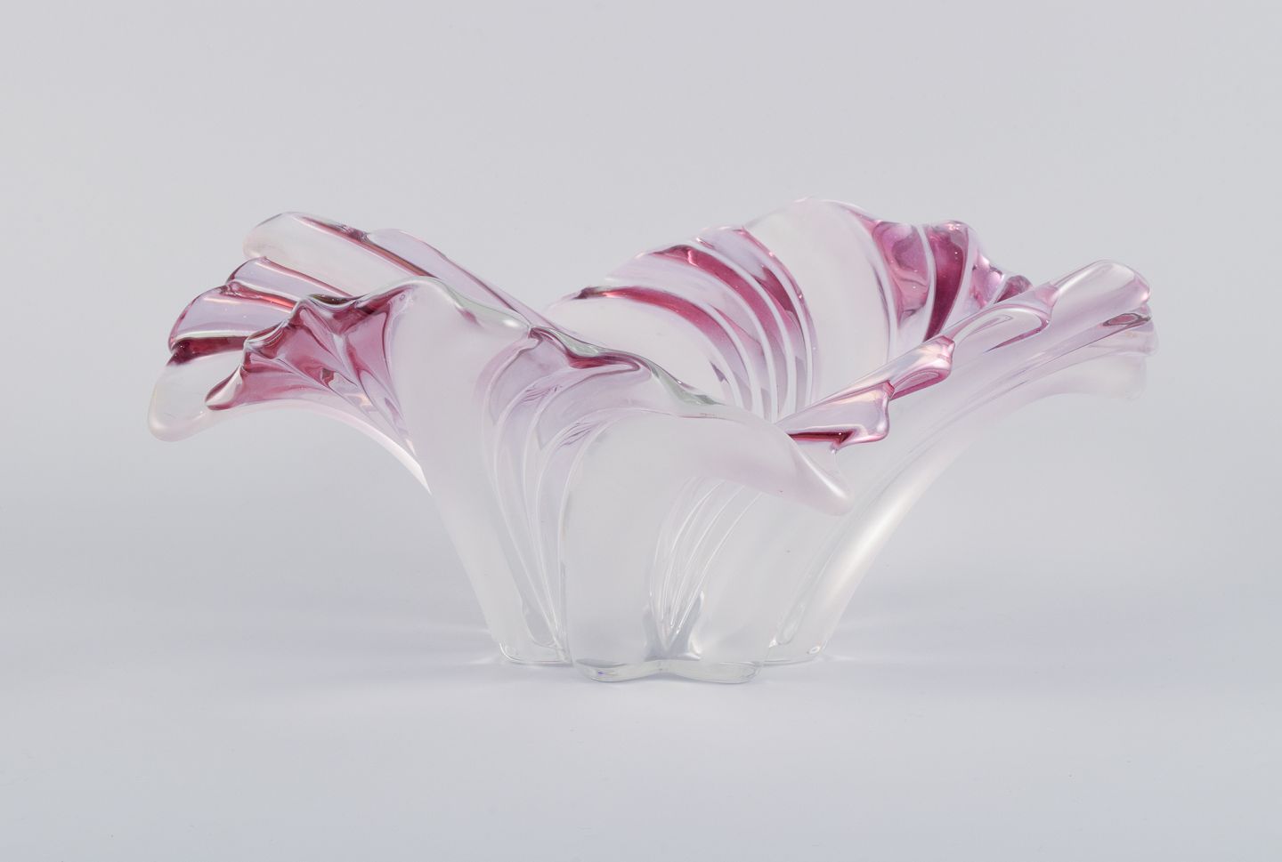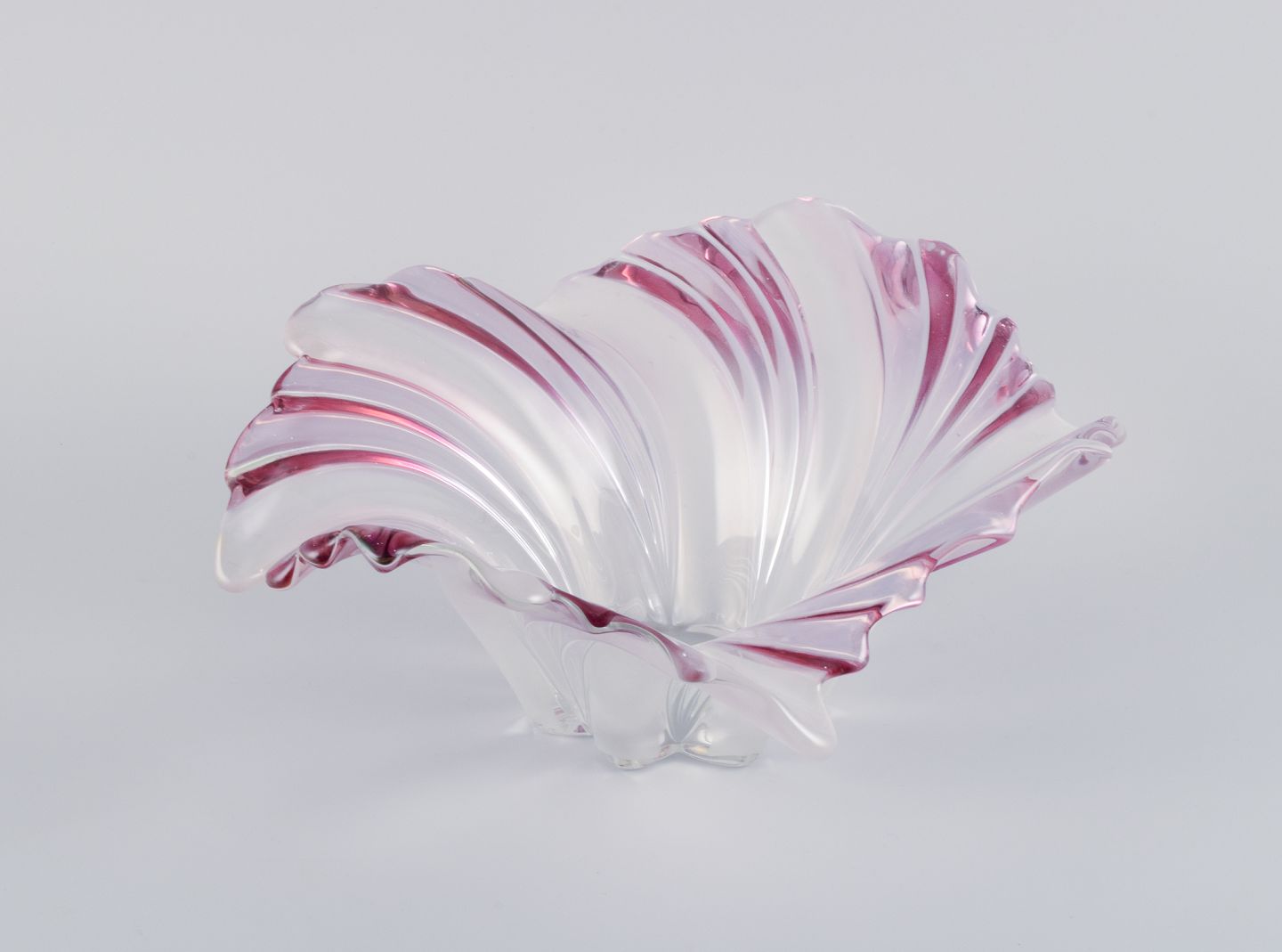 Stor skål i kunstglas. Lilla og matteret glas. Svejfet form. 1970/80’erne. I perfekt stand. Mål: D 37,0 cm. x H 18,0 cm.