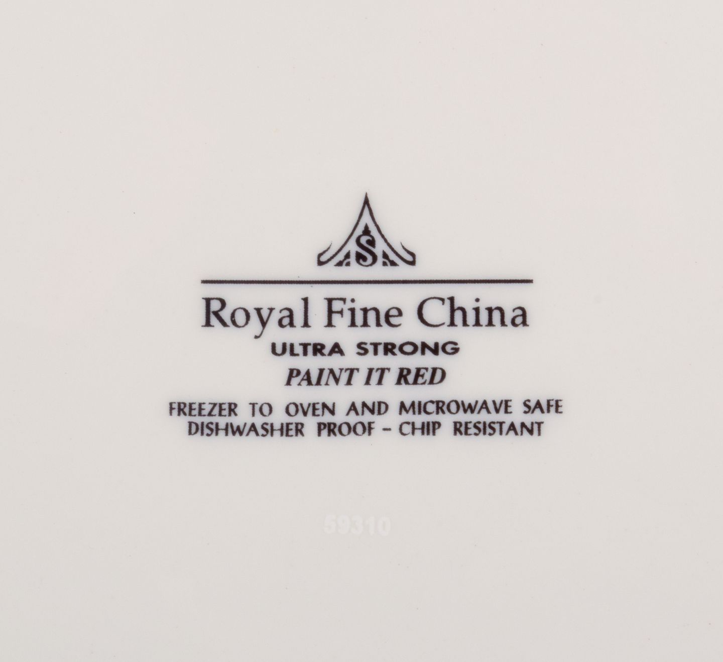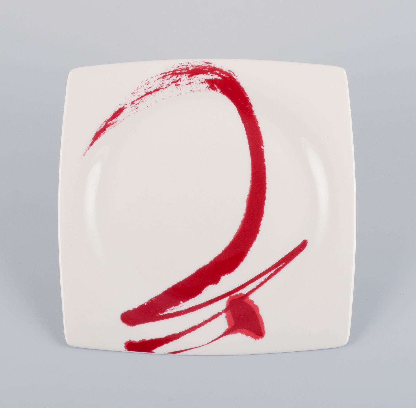 Paint It Red Collection - Red Vanilla, Royal Fine China, otte frokosttallerkner i moderne design, abstrakt motiv. Sent 1900-tallet. Stemplet. Perfekt stand. Mål: D 20,5 cm.