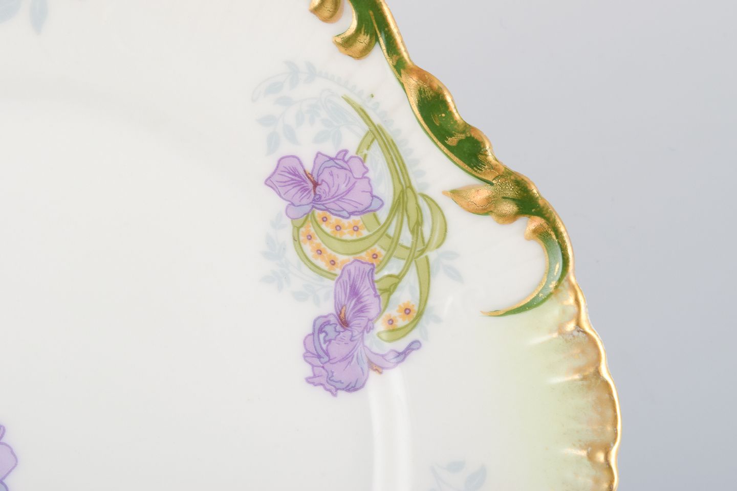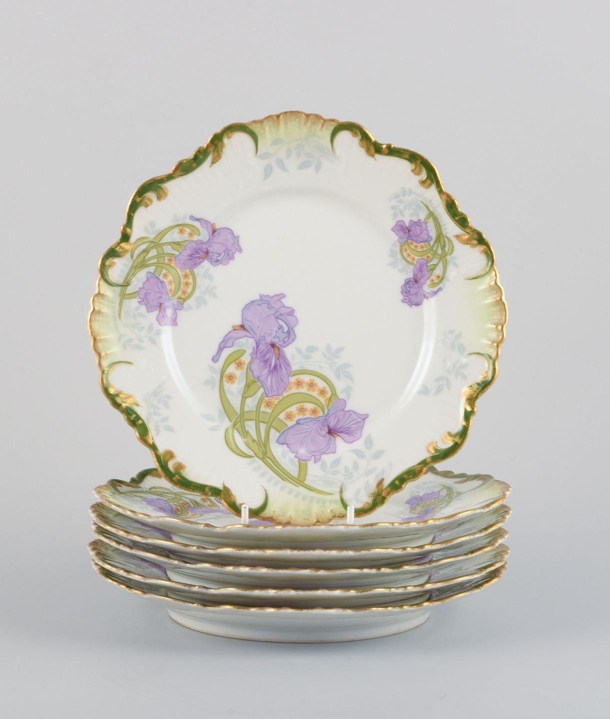 P. Dauphin, Paris, a set of six Art Nouveau faience plates decorated with flowers and gold rim. Early 20 c. Marked. In excellent condition. Dimensions: D 21.0 cm.