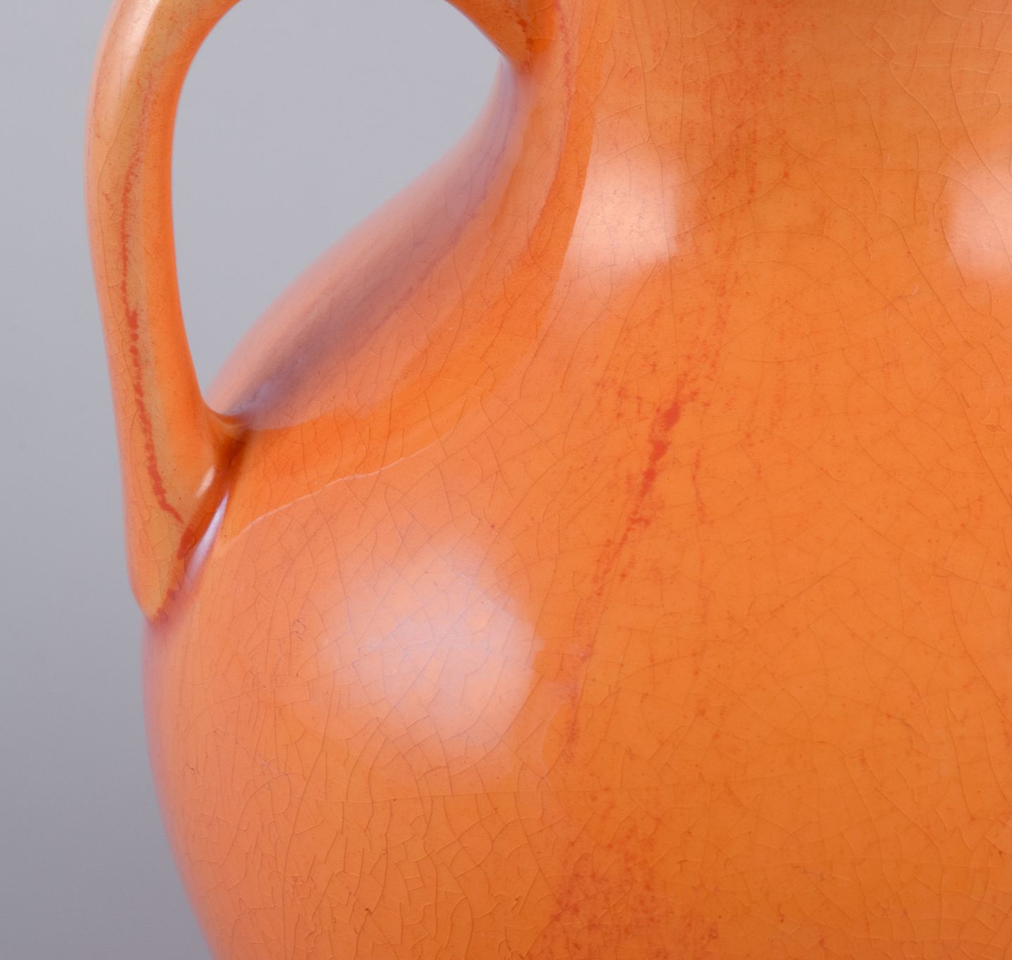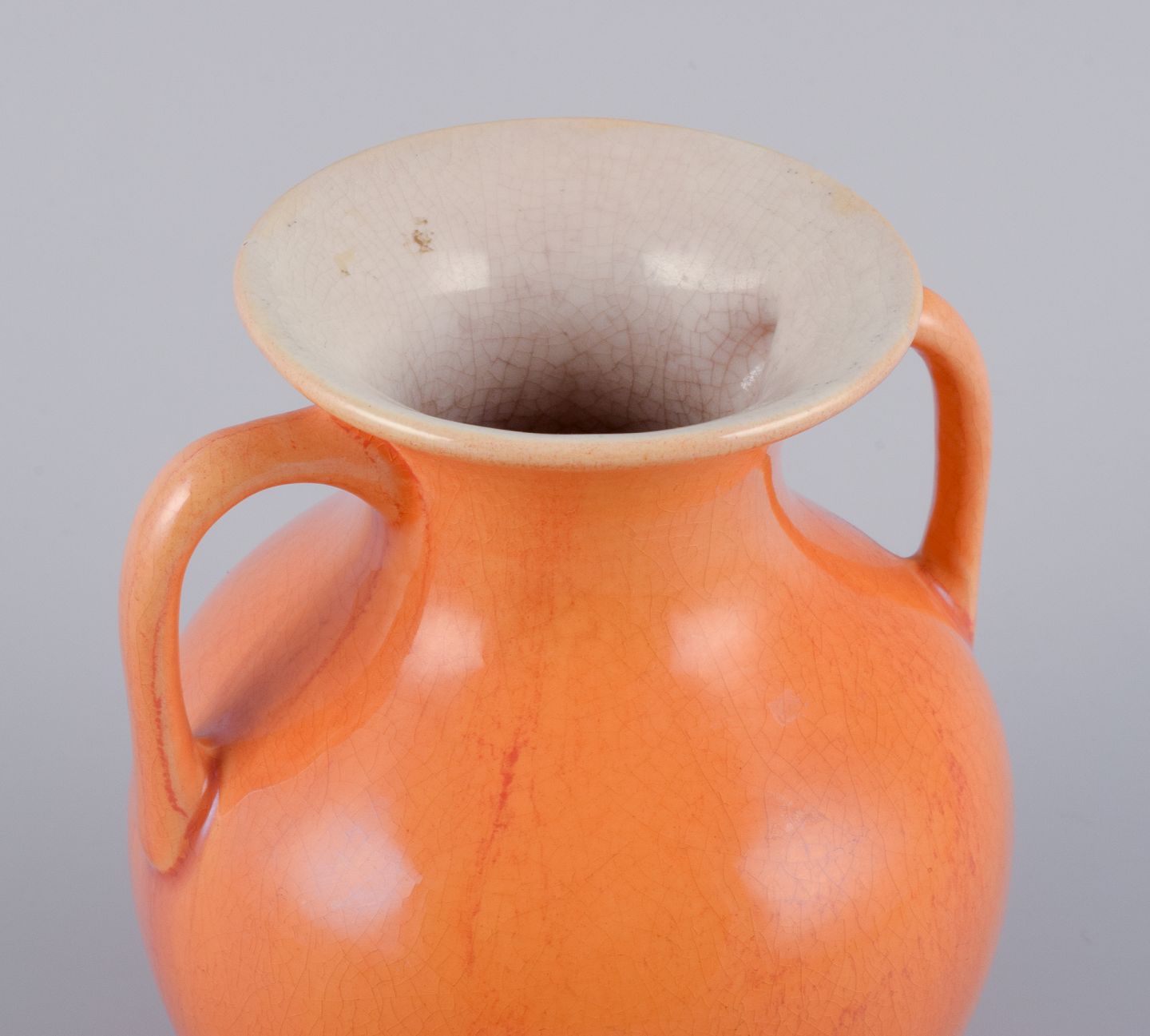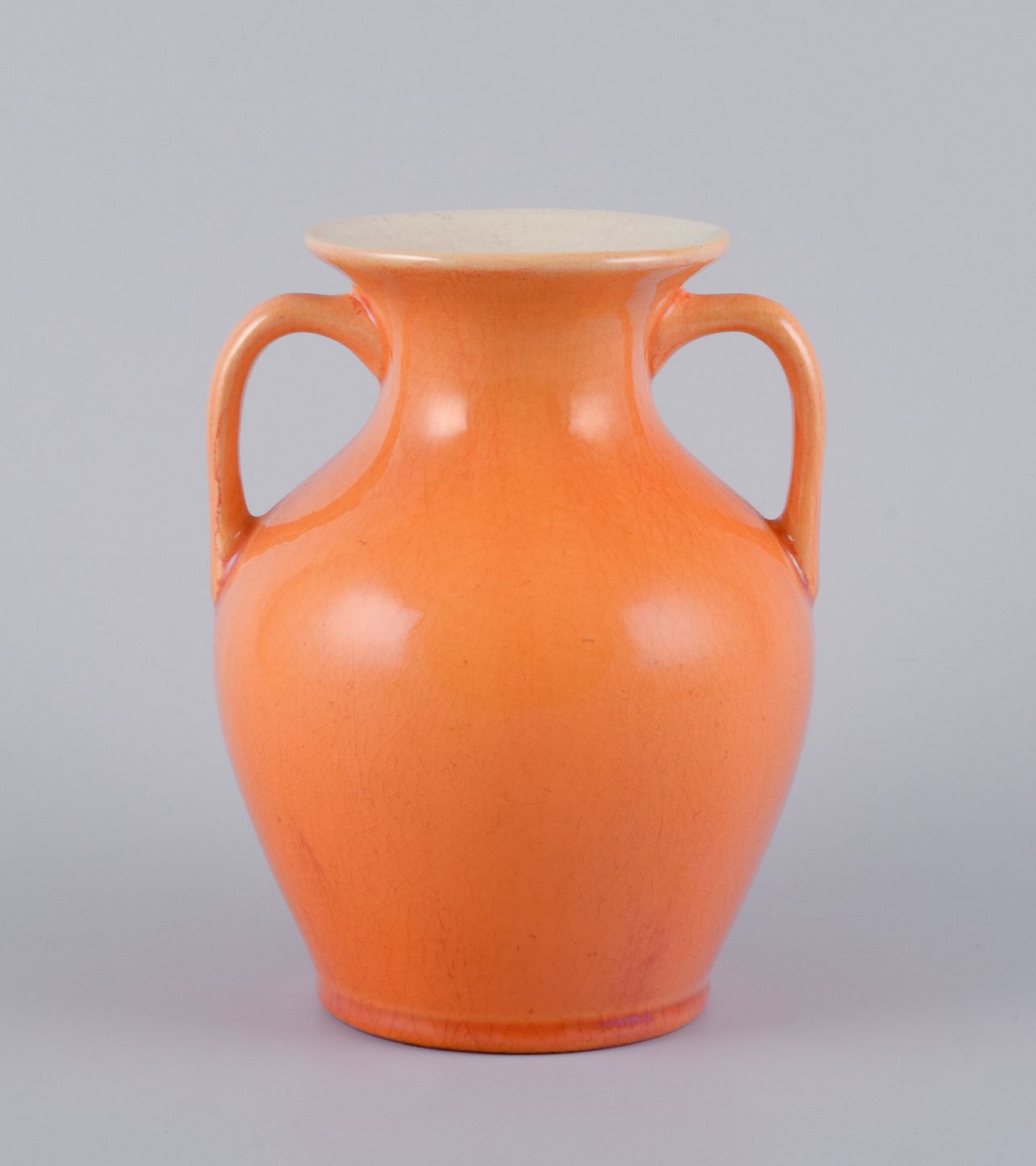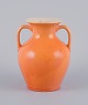 Rörstrand, Sverige, fajancevase med hanke i urangul glasur. Tidligt 1900-tallet. Stemplet. I flot stand. Mål: H 14,5 cm. x D 12,0 cm.