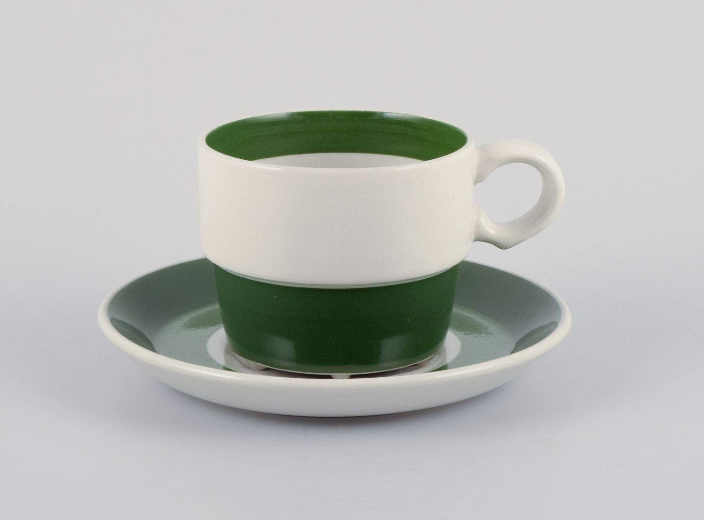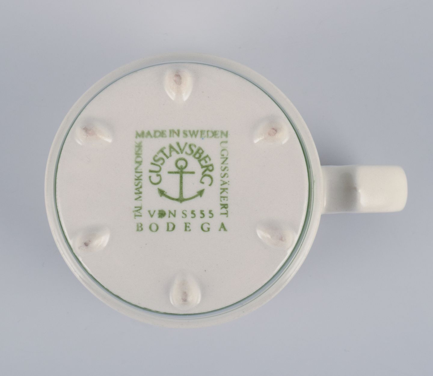 Stig Lindberg for Gustavsberg, Sweden, a set of four "Bodega" stoneware coffee cups with saucers.