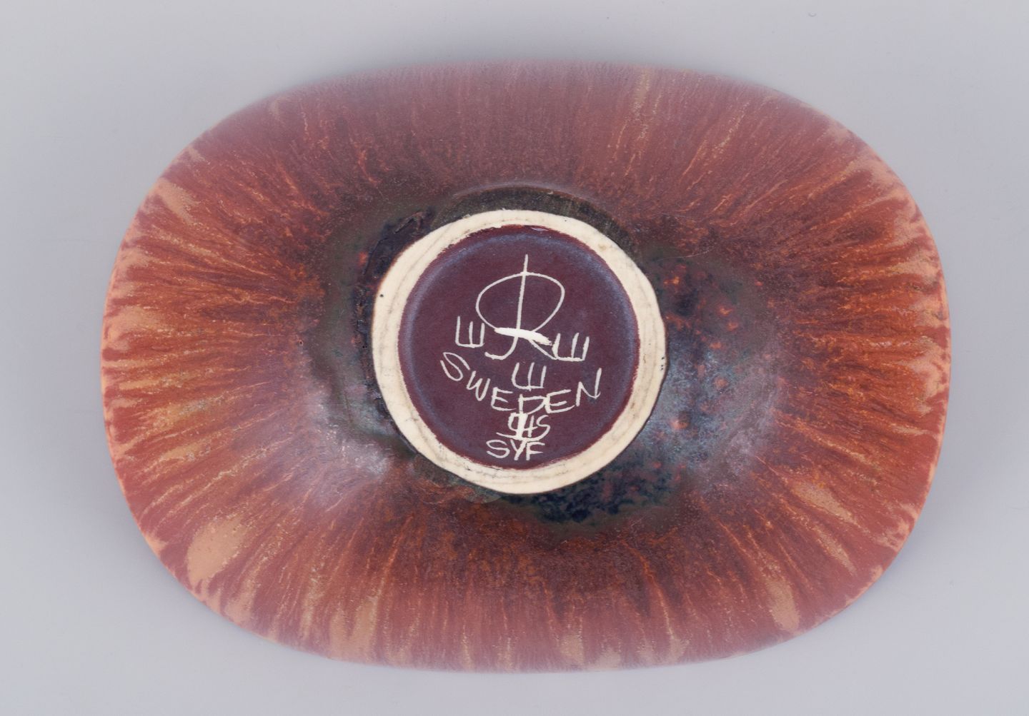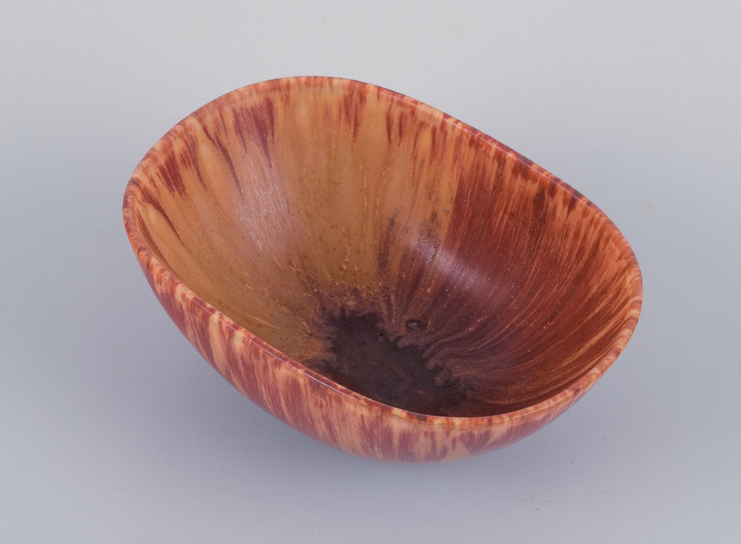 Carl Harry Stålhane for Rörstrand, keramikskål i brune nuancer. Midt 1900-tallet. Perfekt stand. Stemplet. Anden sortering. Mål: L 12,0 cm. x D 8,7 cm. x H 4,8 cm.