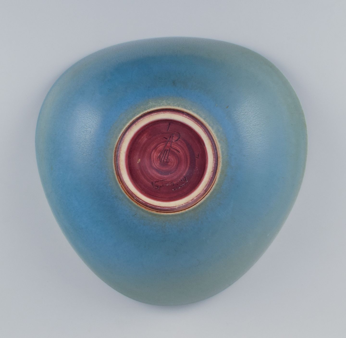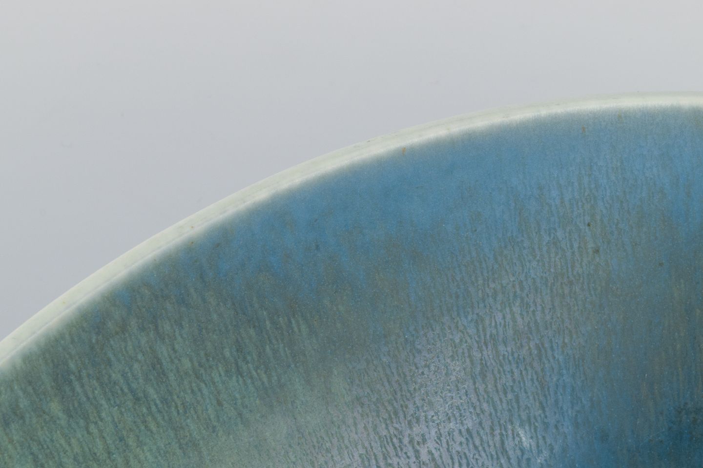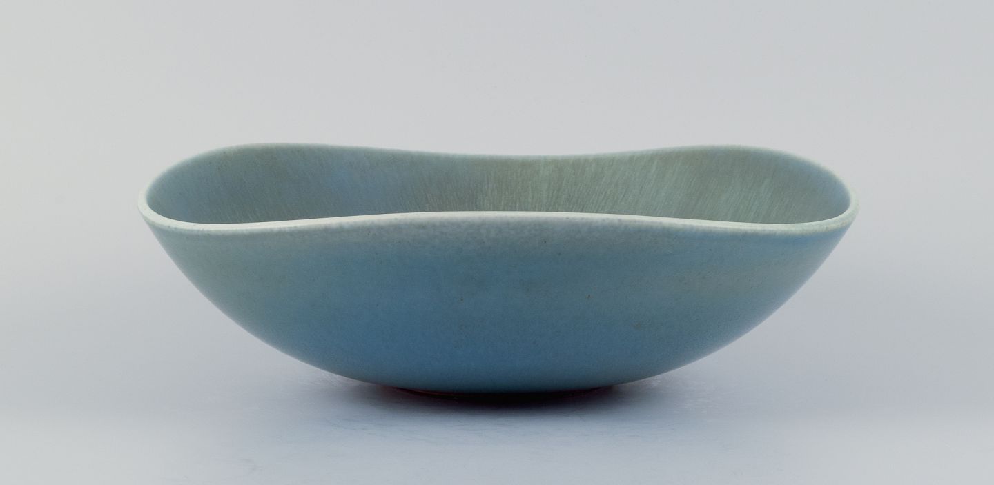 Berndt Friberg for Gustavsberg, Sweden, large ceramic bowl with glaze in blue-green tones. Mid-20th century. Perfect condition. Signed. Dimensions: D 32.0 cm x H 9.5 cm.