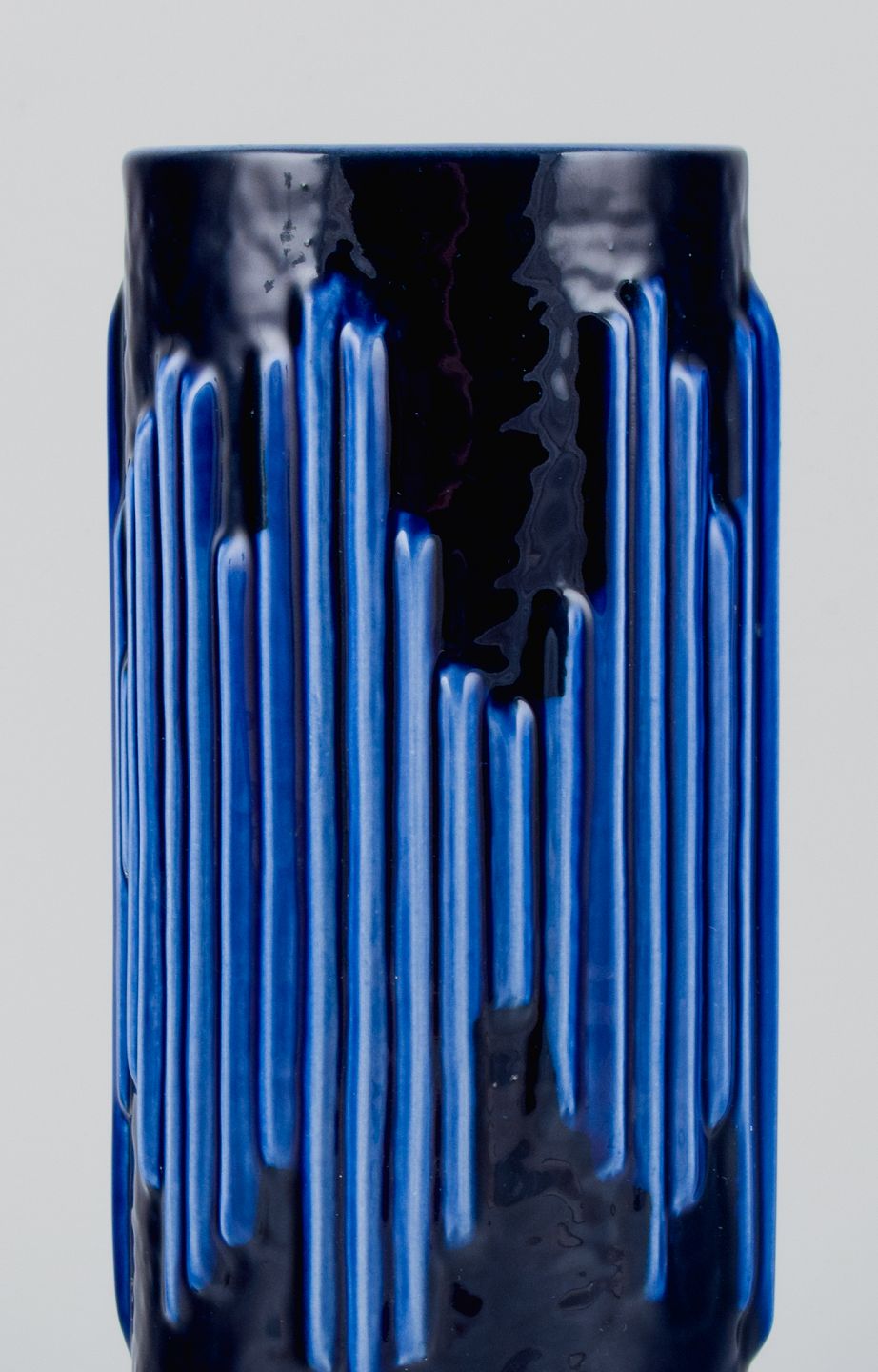 Carl Harry Stålhane (1920-1990) for Rörstrand. Large Andalusia vase in glazed ceramics. Beautiful glaze in deep blue tones. From the 1960s. In perfect condition. Marked. Dimensions: H 23.8 cm x D 10.5 cm.