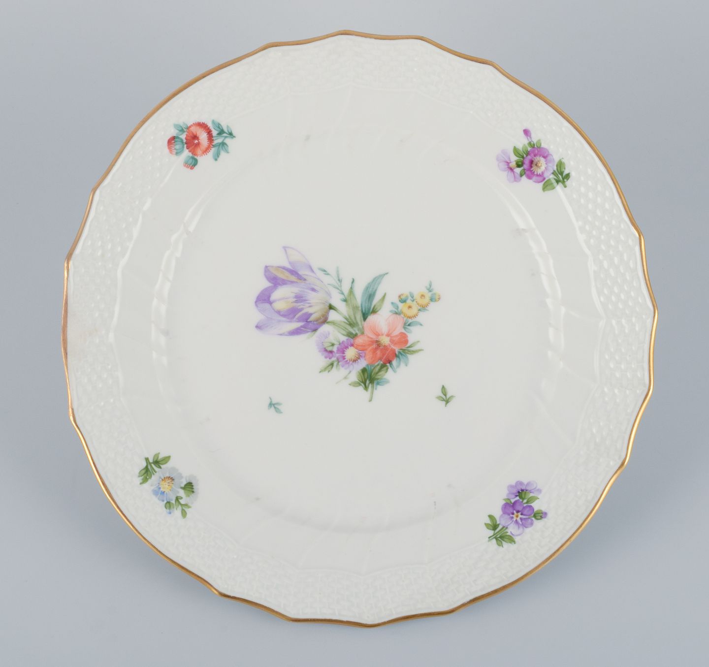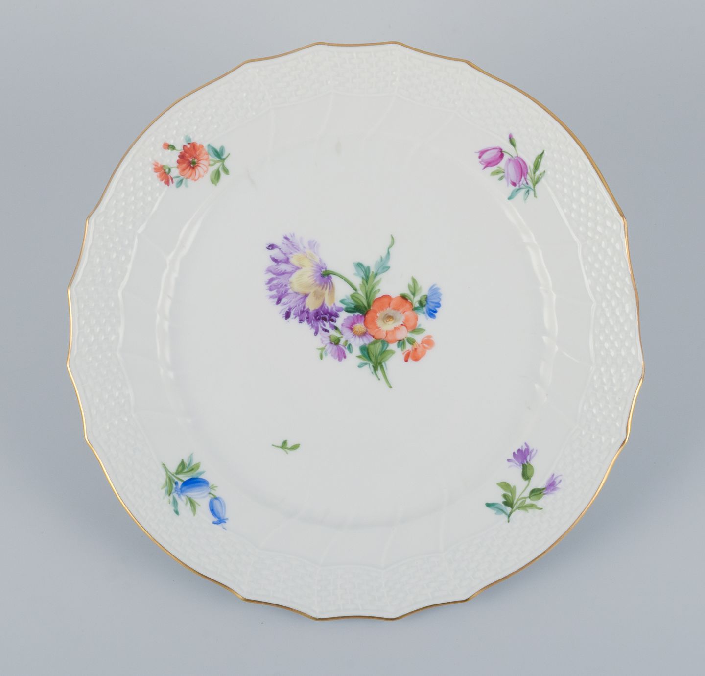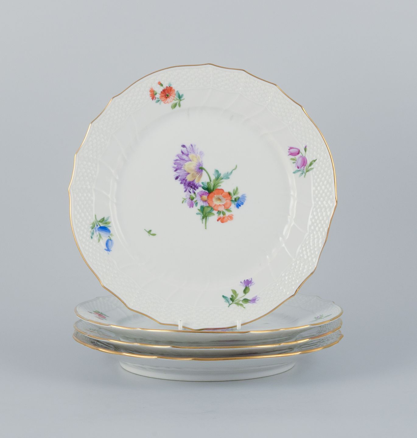 Royal Copenhagen, four Saxon Flower dinner plates.