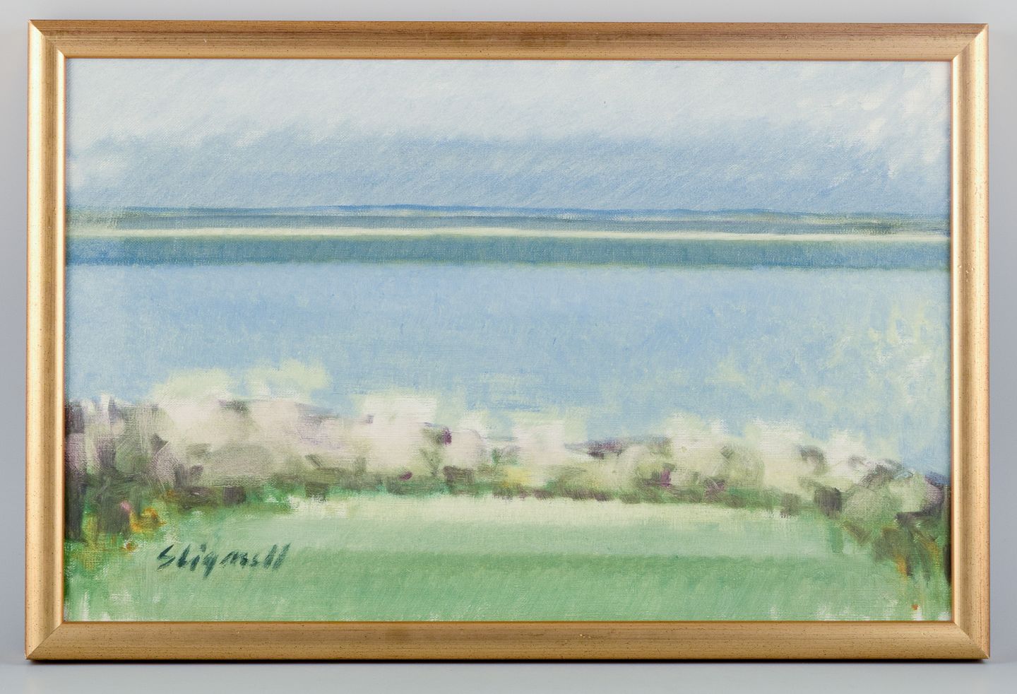 Sven Lignell (1920-1985), listed Swedish artist (b. 1927), oil on canvas, modernist landscape. 1960/70s. Perfect condition. Dimensions: W 54.5 cm x H 34.0 cm. Total: W 58.8 cm x H 39.2 cm.