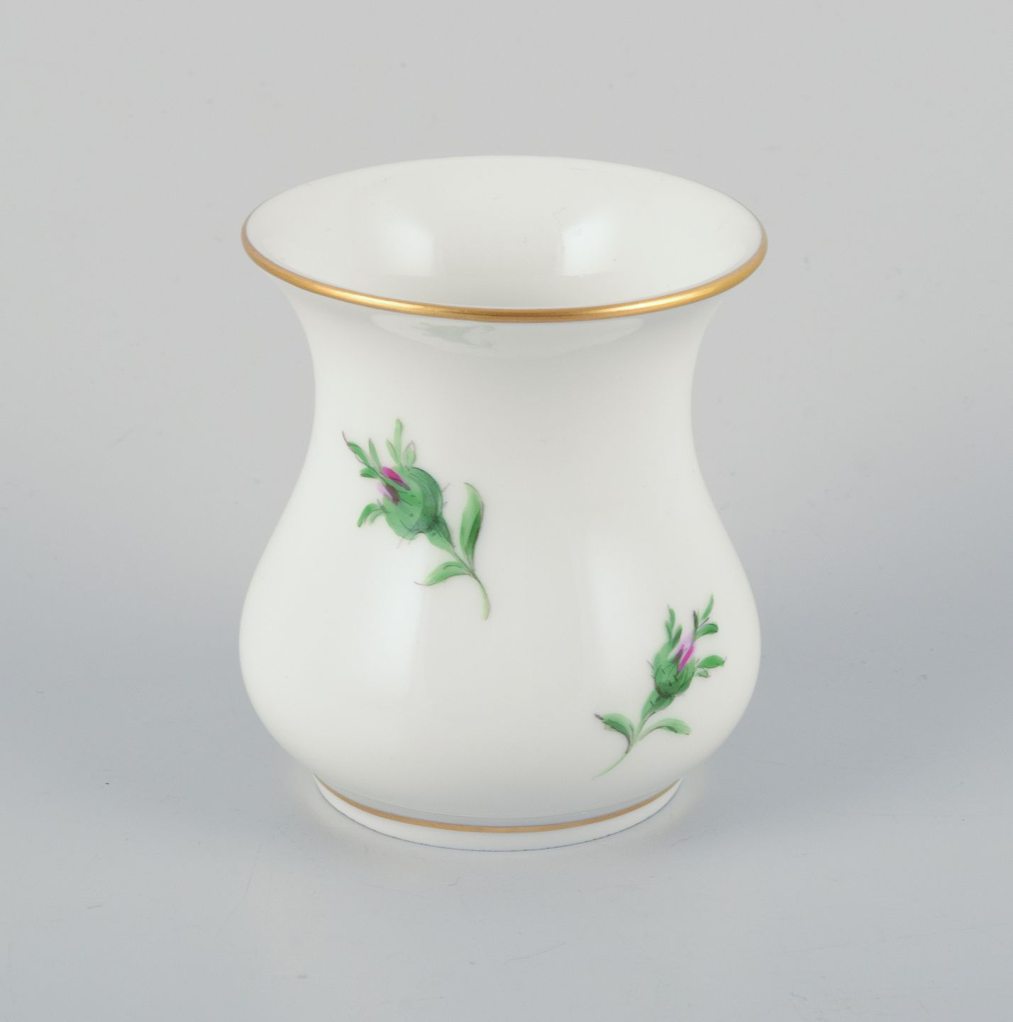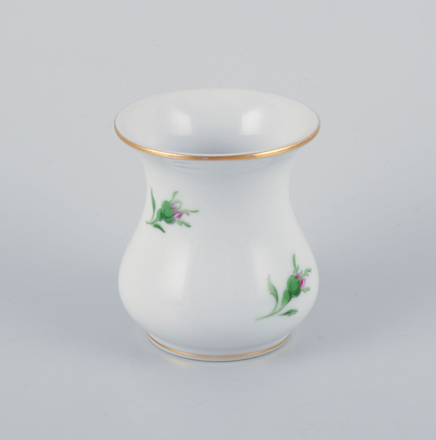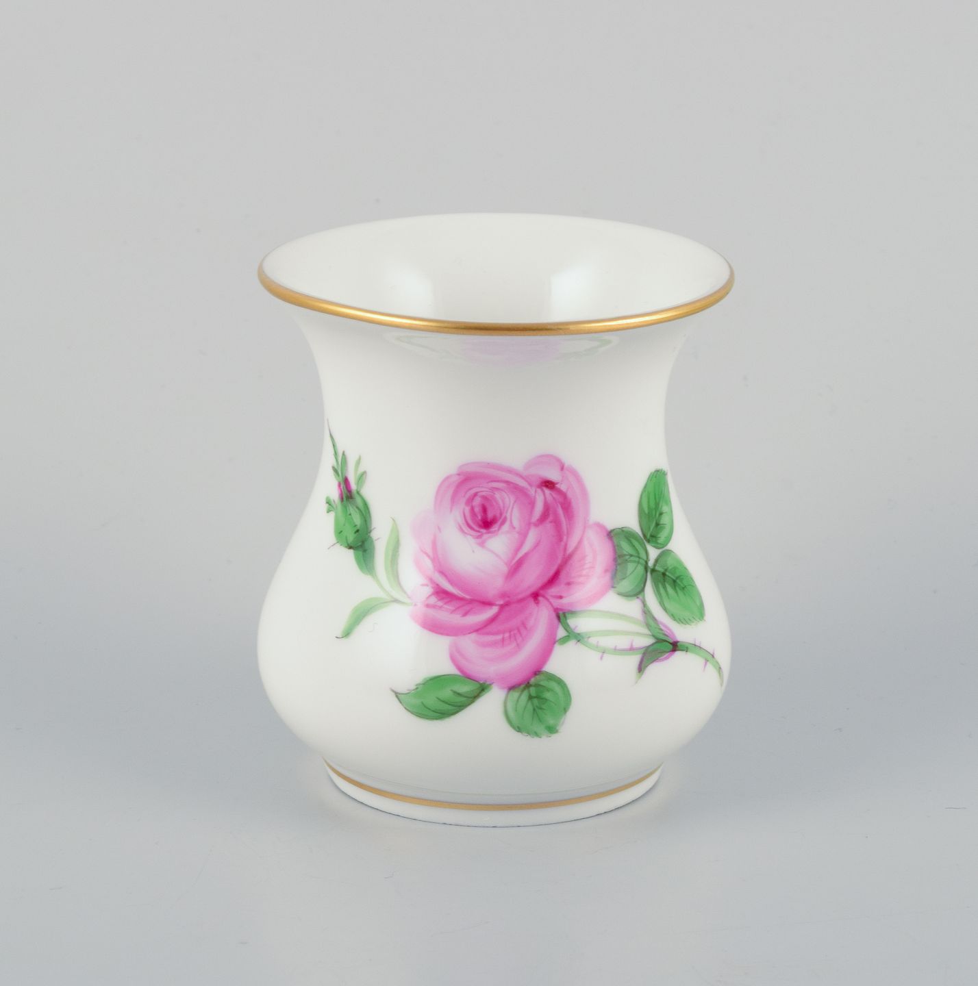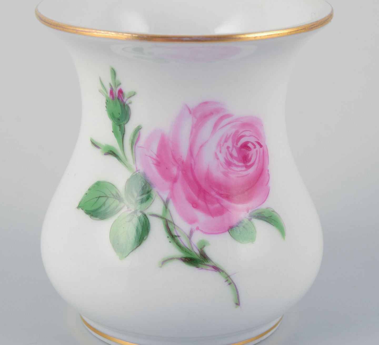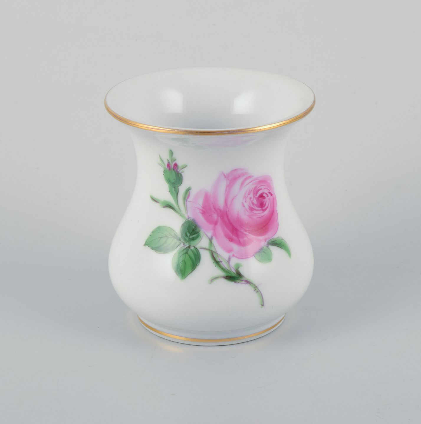 Meissen, two small "Pink Rose" porcelain vases hand-painted with pink roses.