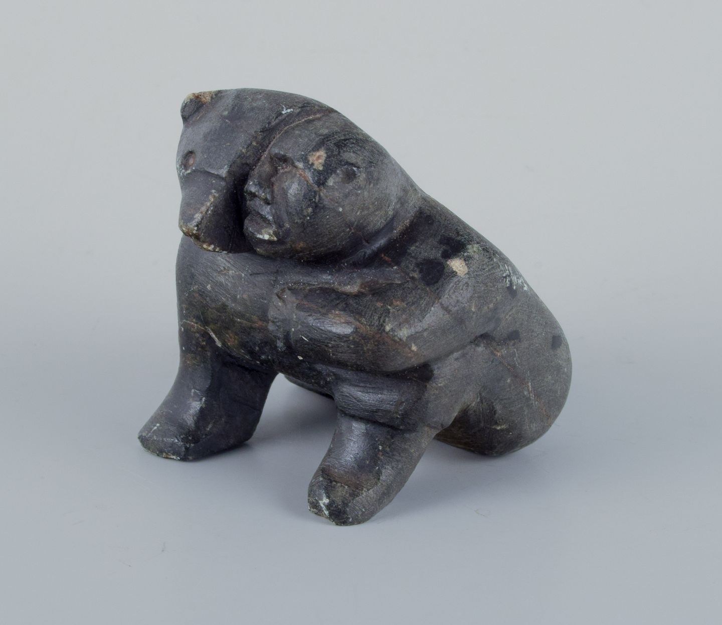 Greenlandica, small sculpture in soapstone. Polar bear and hunter.