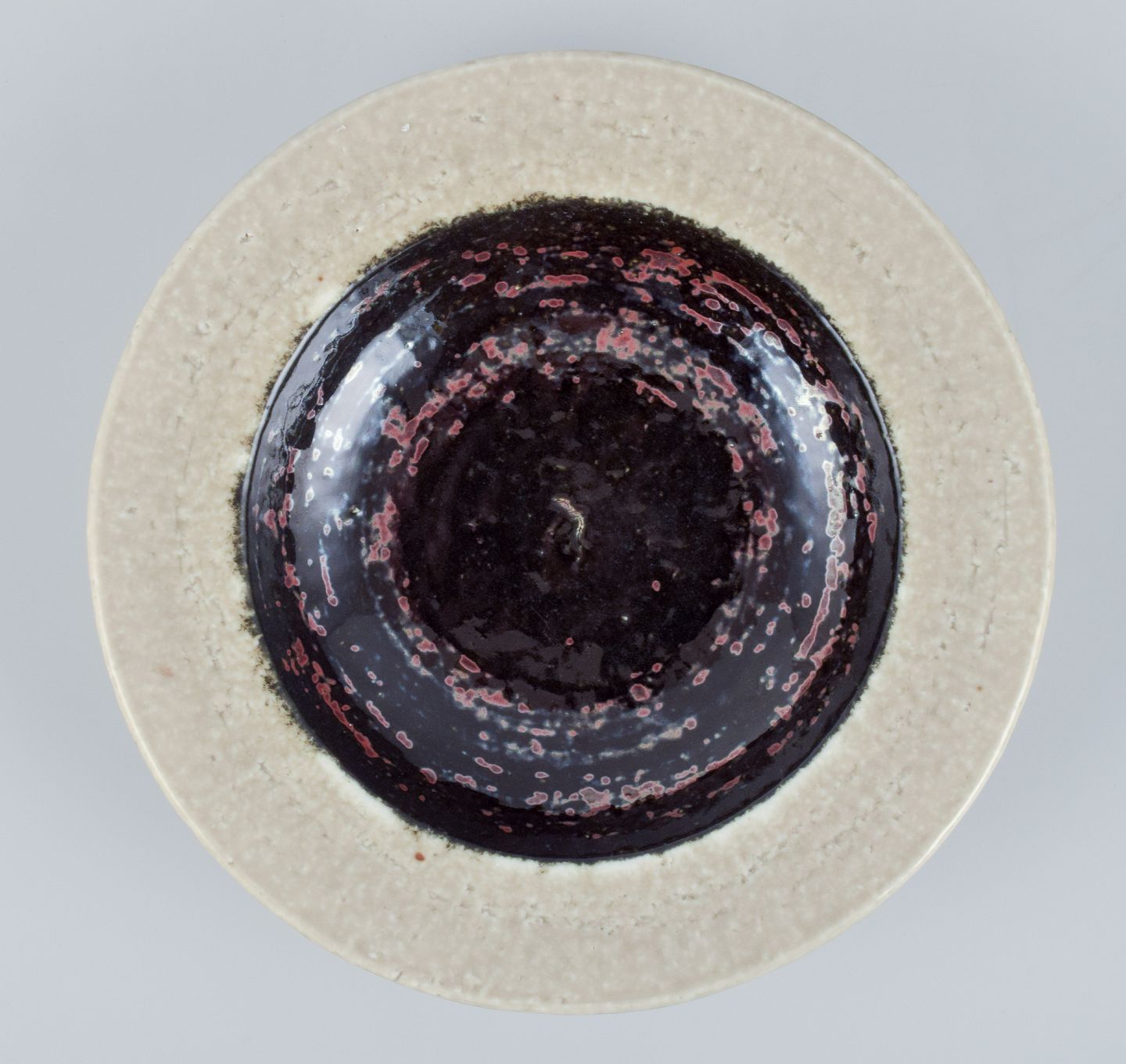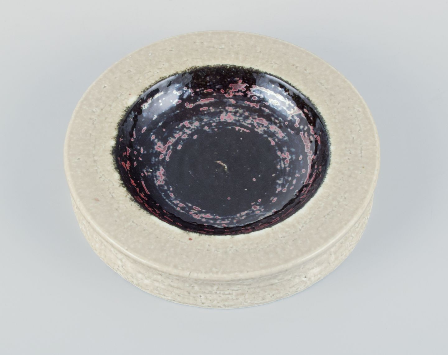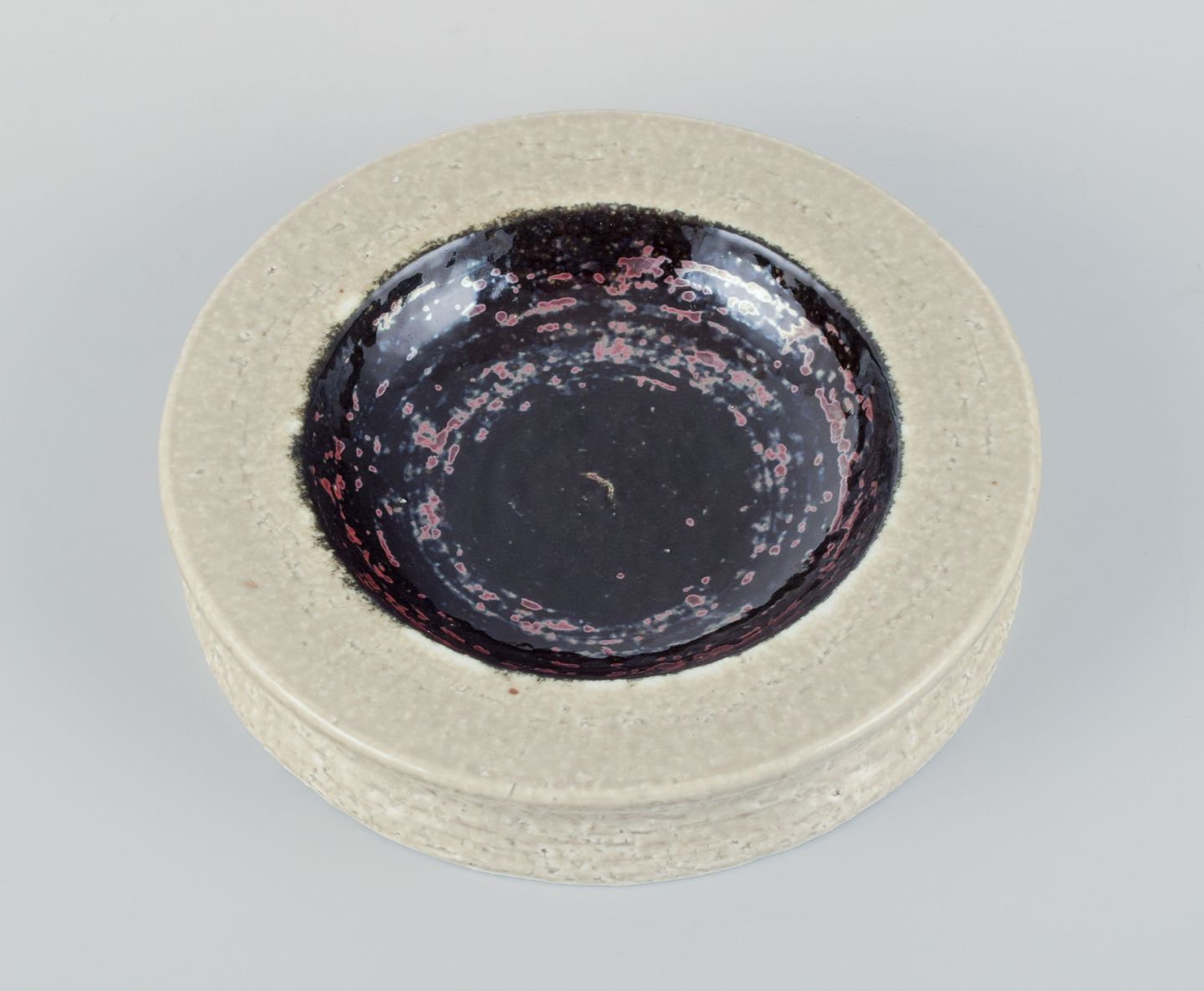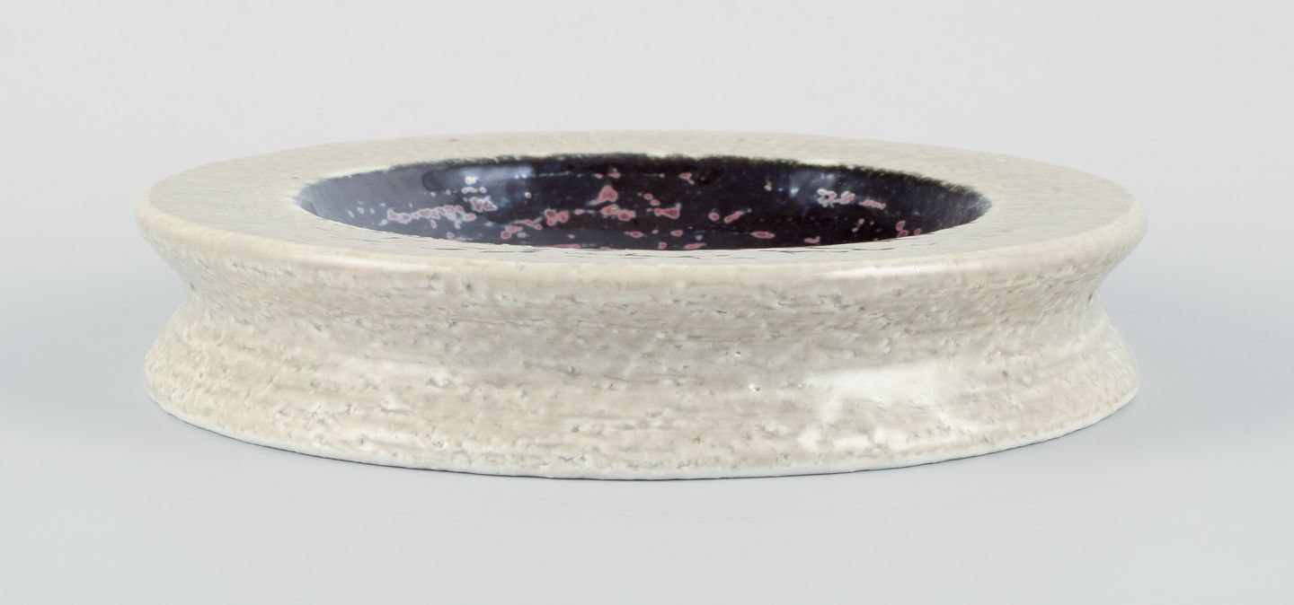Rörstrand, Sweden, ceramic bowl in cream and black metallic glaze. From the 1960s. Perfect condition. Marked. First factory quality. Dimensions: Diameter 17.5 cm x Height 3.3 cm.
