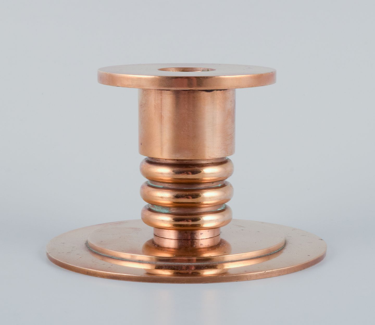 Evan Jensen, bronzestøber i København, et par Art Deco bronze stager. Ca. 1940. Massiv bronze af høj kvalitet. Perfekt stand. Stemplet. Mål: H 7,7 cm. x D 11,0 cm.