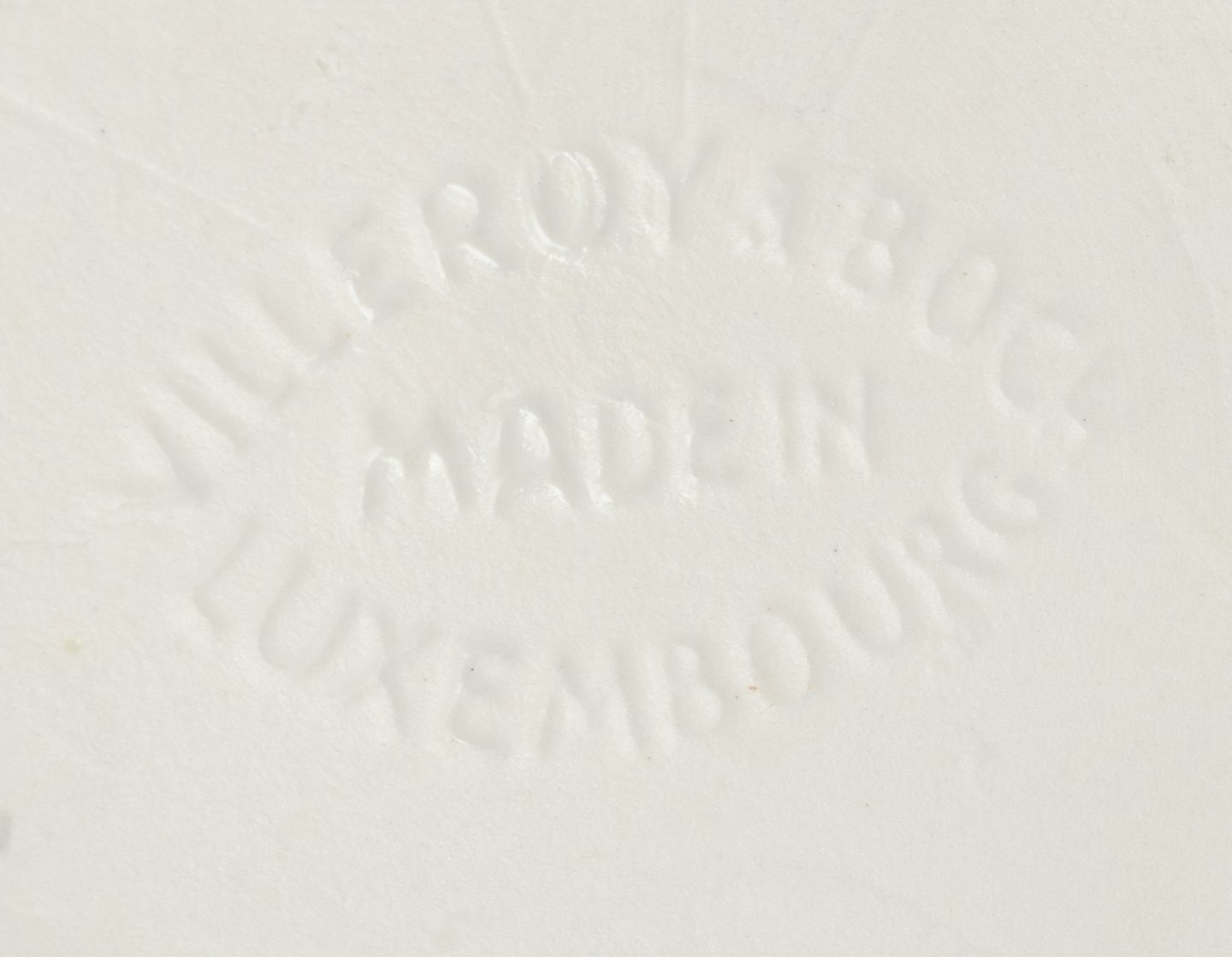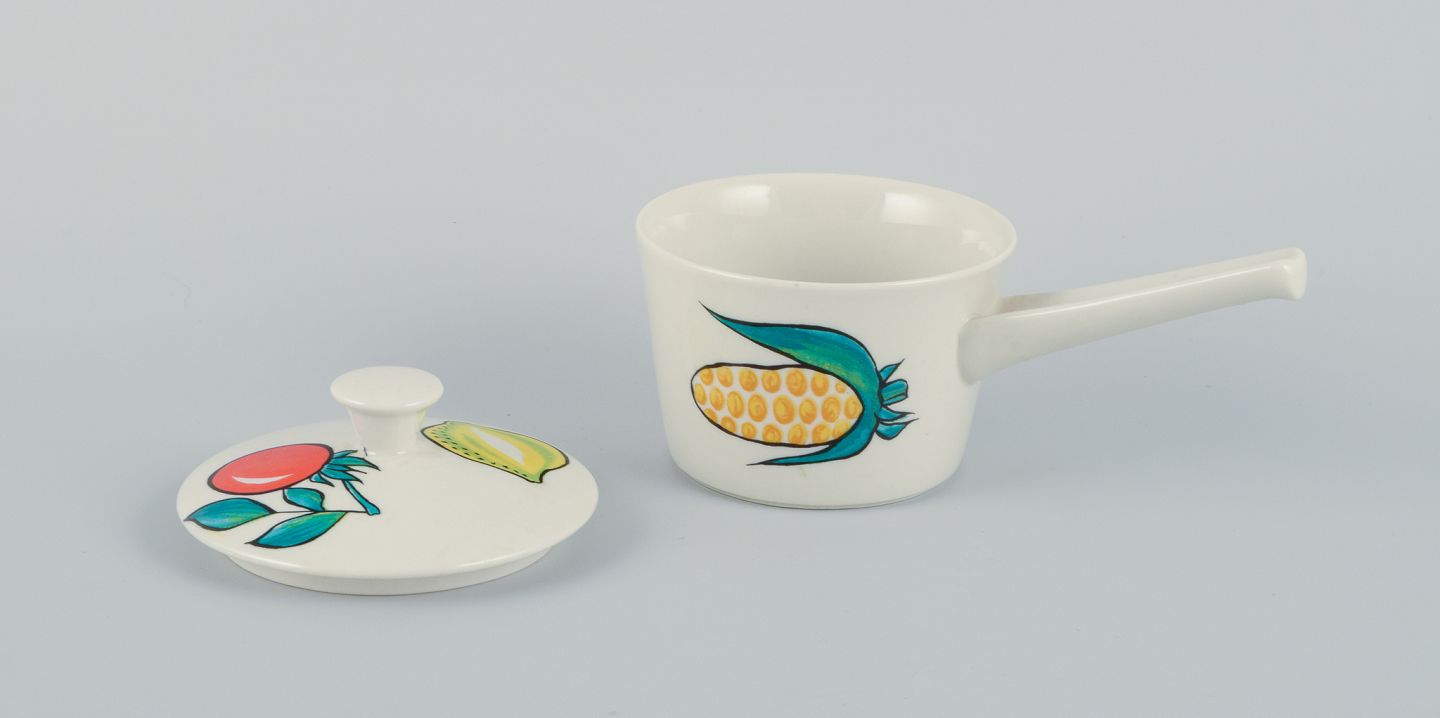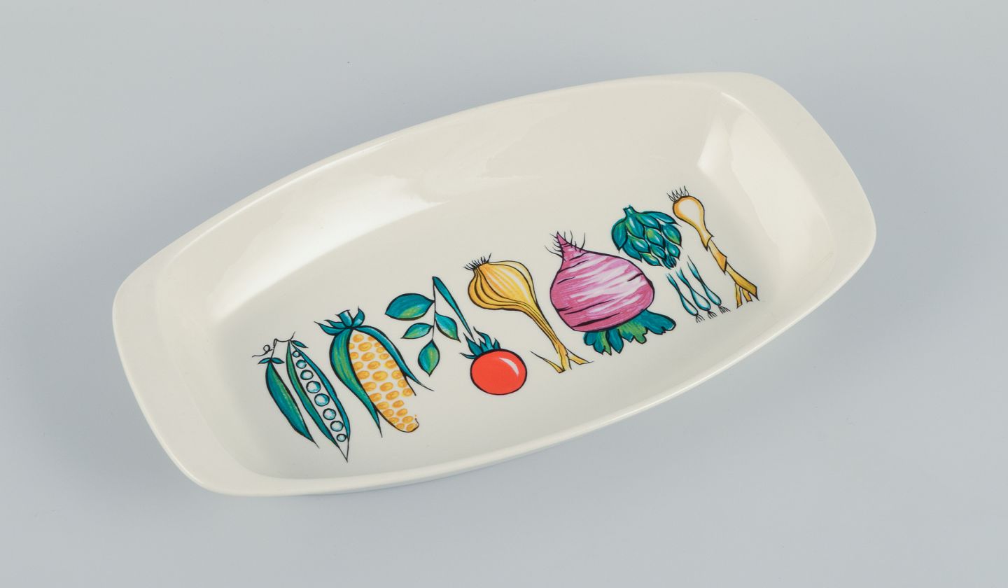 Villeroy & Boch, Luxembourg, tre dele "Primabella", to fade og en lille kasserolle i stentøj med motiv af forskellige grøntsager.