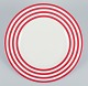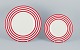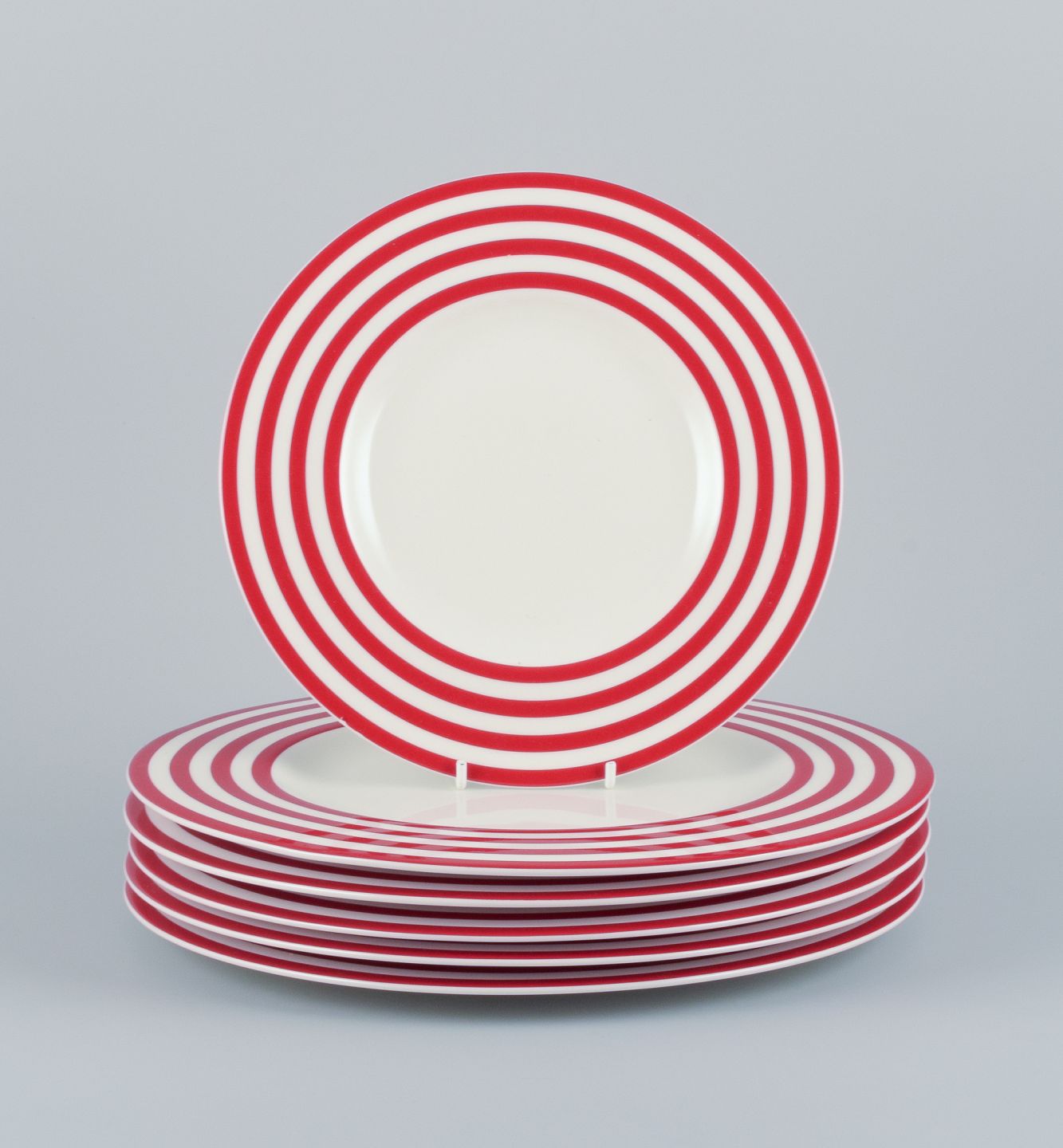 Royal Fine China, et sæt på seks ”Freshness Lines Red” tallerkner. Fem middagstallerkner og en frokosttallerken.