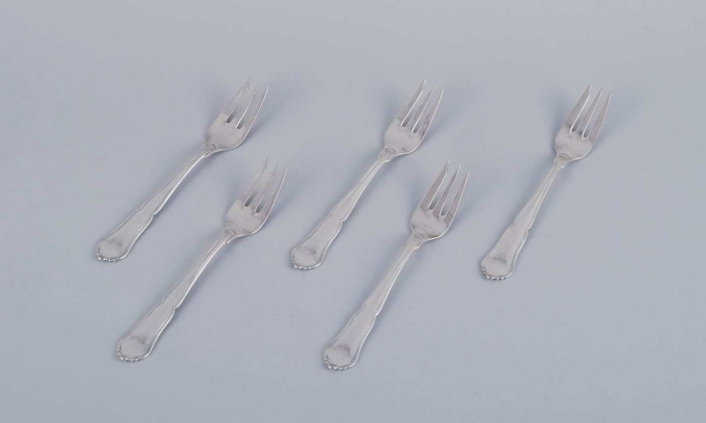 Horsens Silver. A set of five cake forks in 830 silver. From the 1930s. Hallmarked. In excellent condition. Dimensions: Length 13.5 cm.