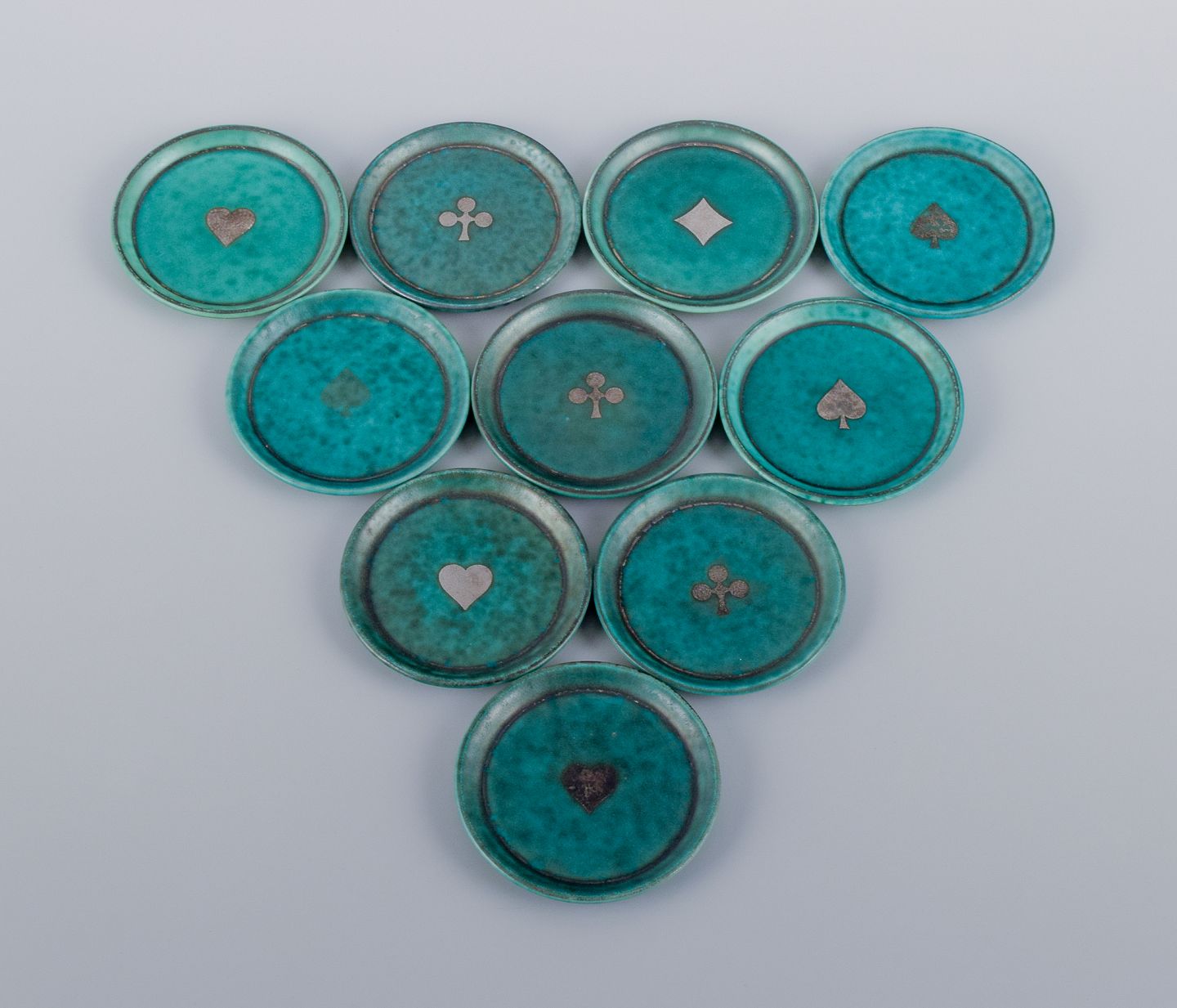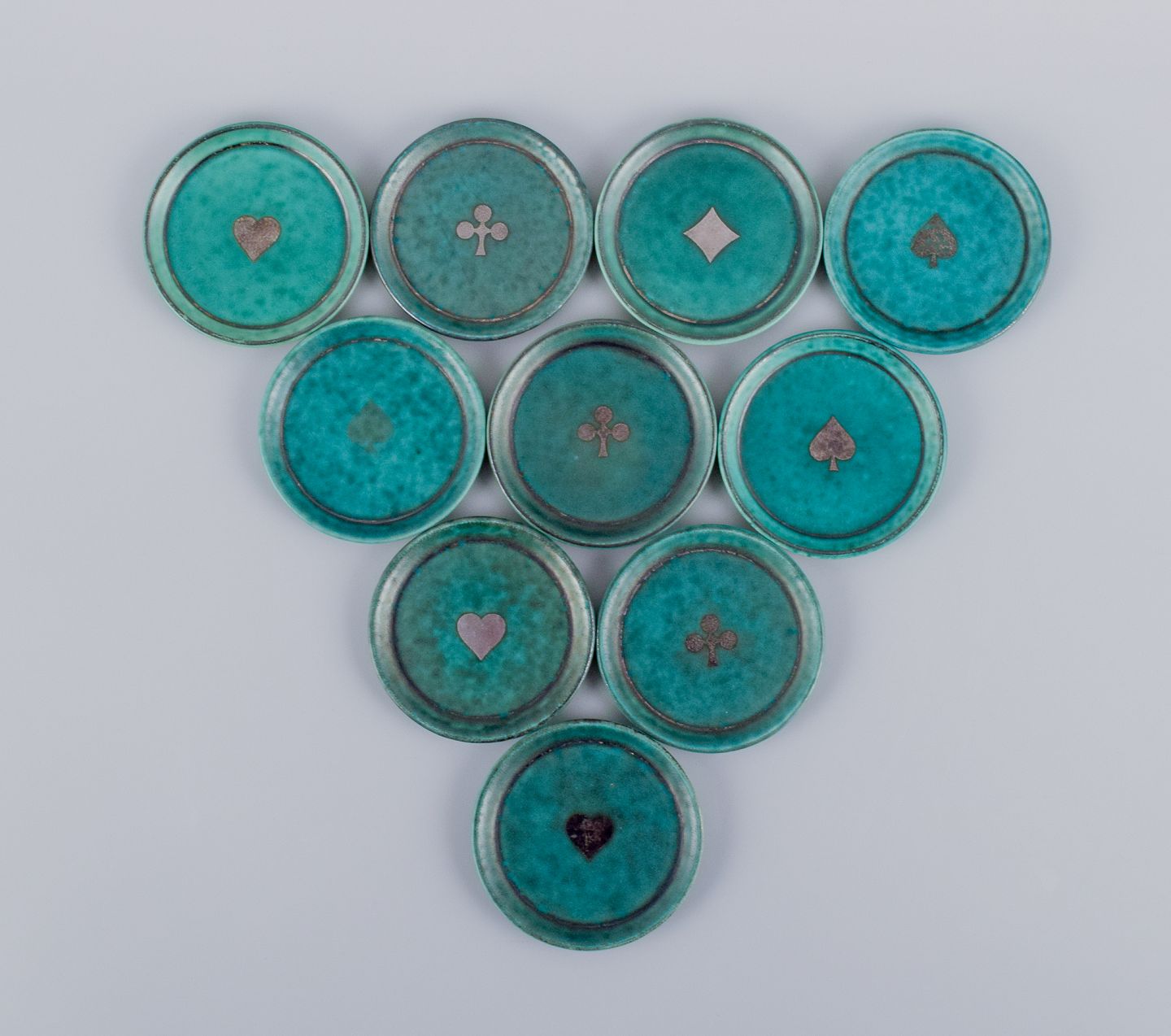 Wilhelm Kåge for Gustavsberg, Sverige. Et sæt på ti ”Argenta” coasters-/flaskebakker.