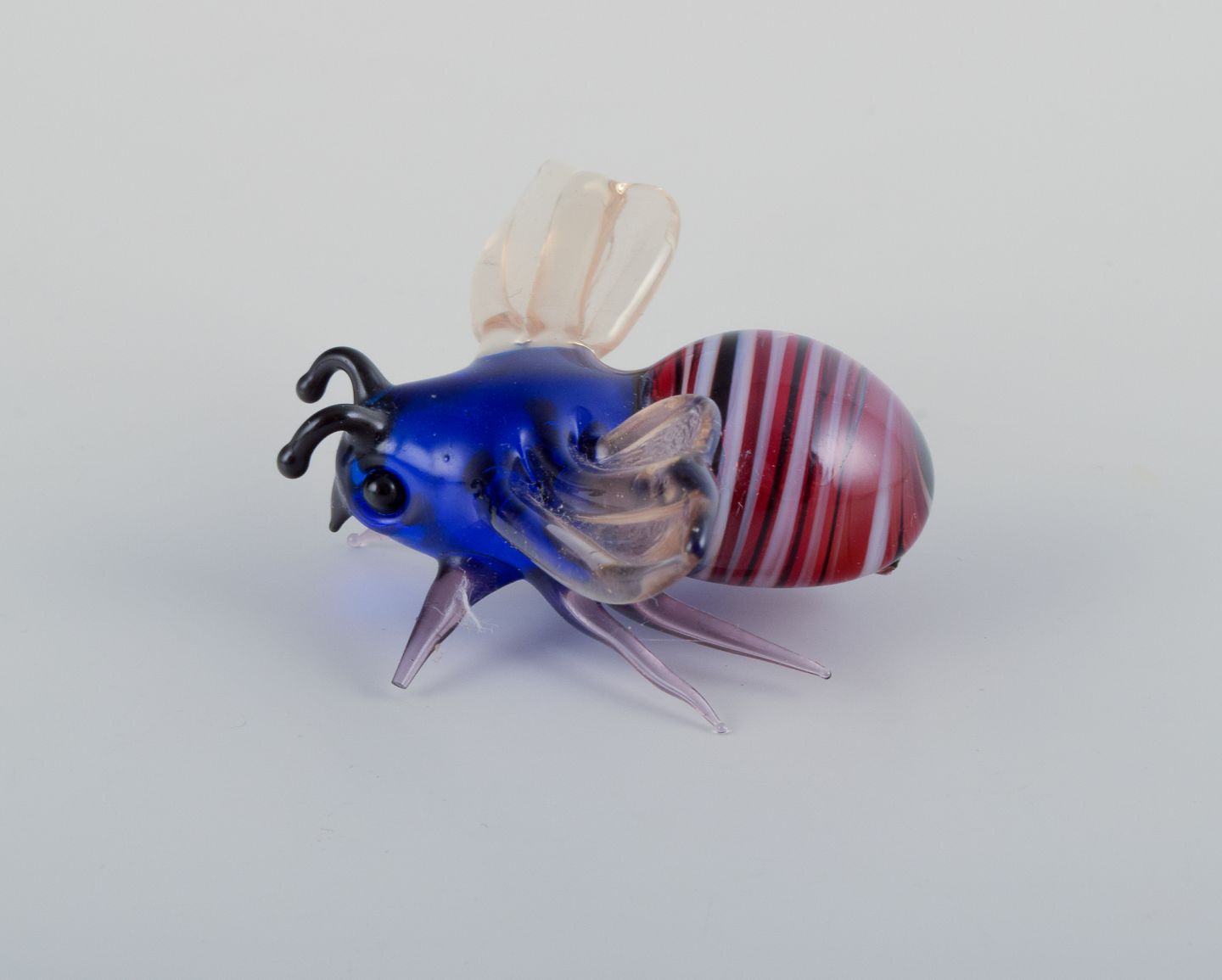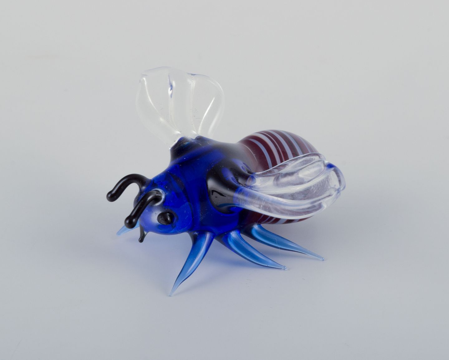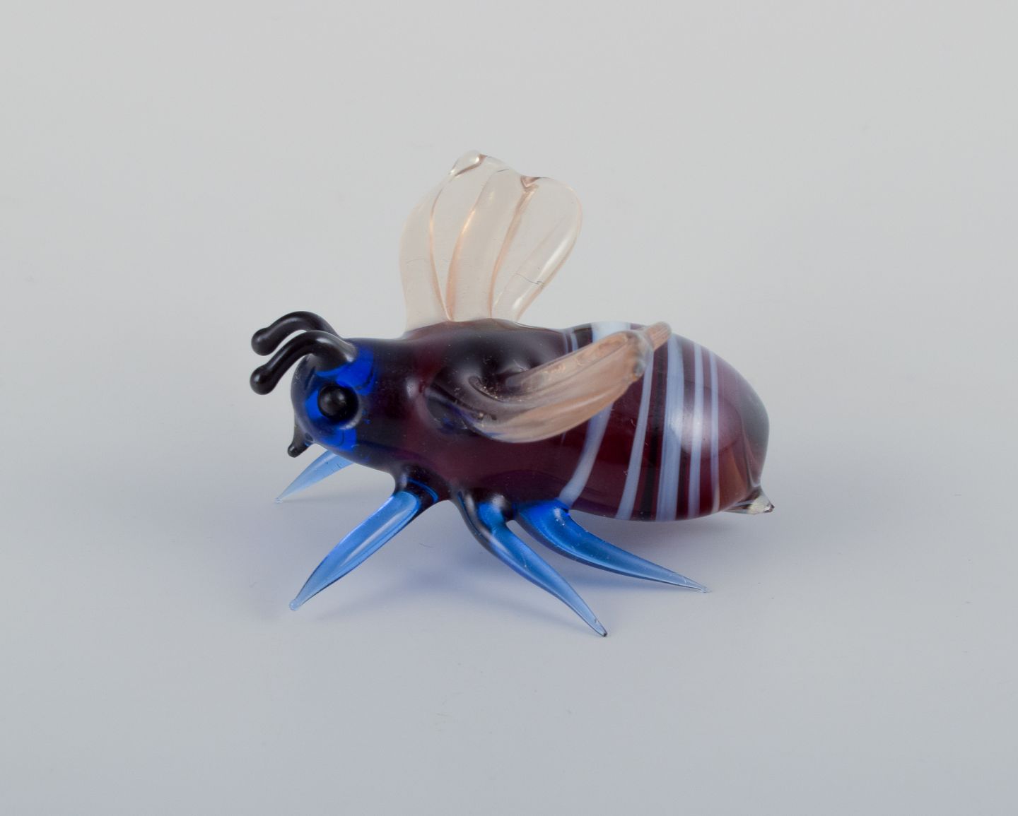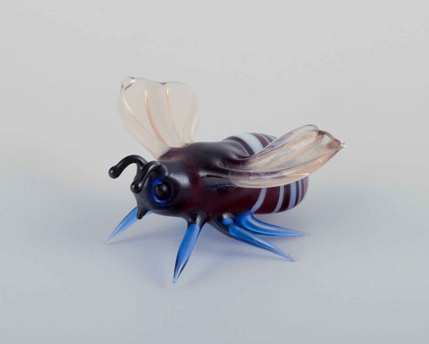 Murano, Italy. A collection of four miniature glass figurines of bees in colored art glass. 1960s/1970s. The largest one measures: L 6.0 cm x W 7.0 cm x H 3.0 cm. In perfect condition.