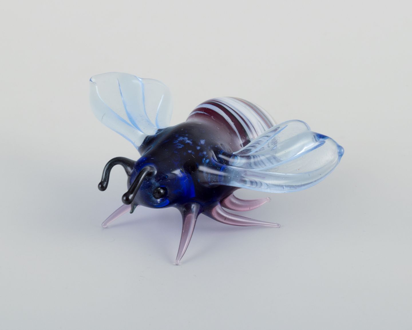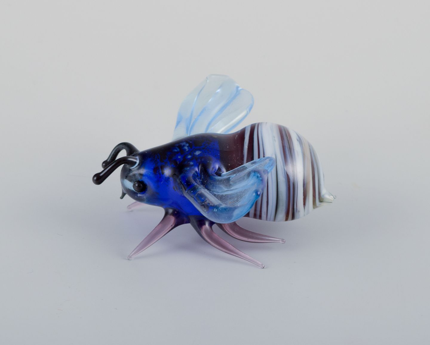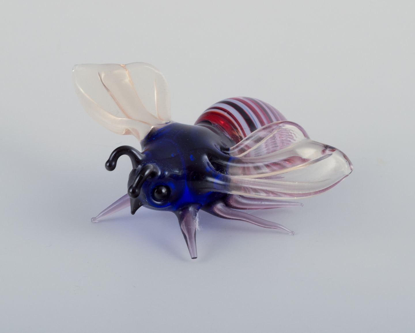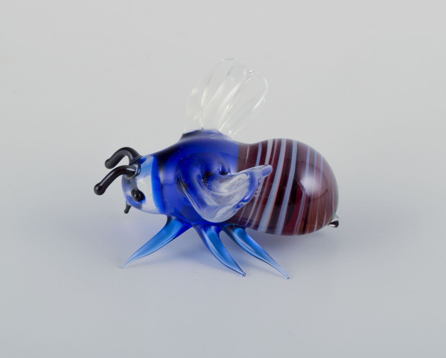 Murano, Italy. A collection of four miniature glass figurines of bees in colored art glass. 1960s/1970s. The largest one measures: L 6.0 cm x W 7.0 cm x H 3.0 cm. In perfect condition.