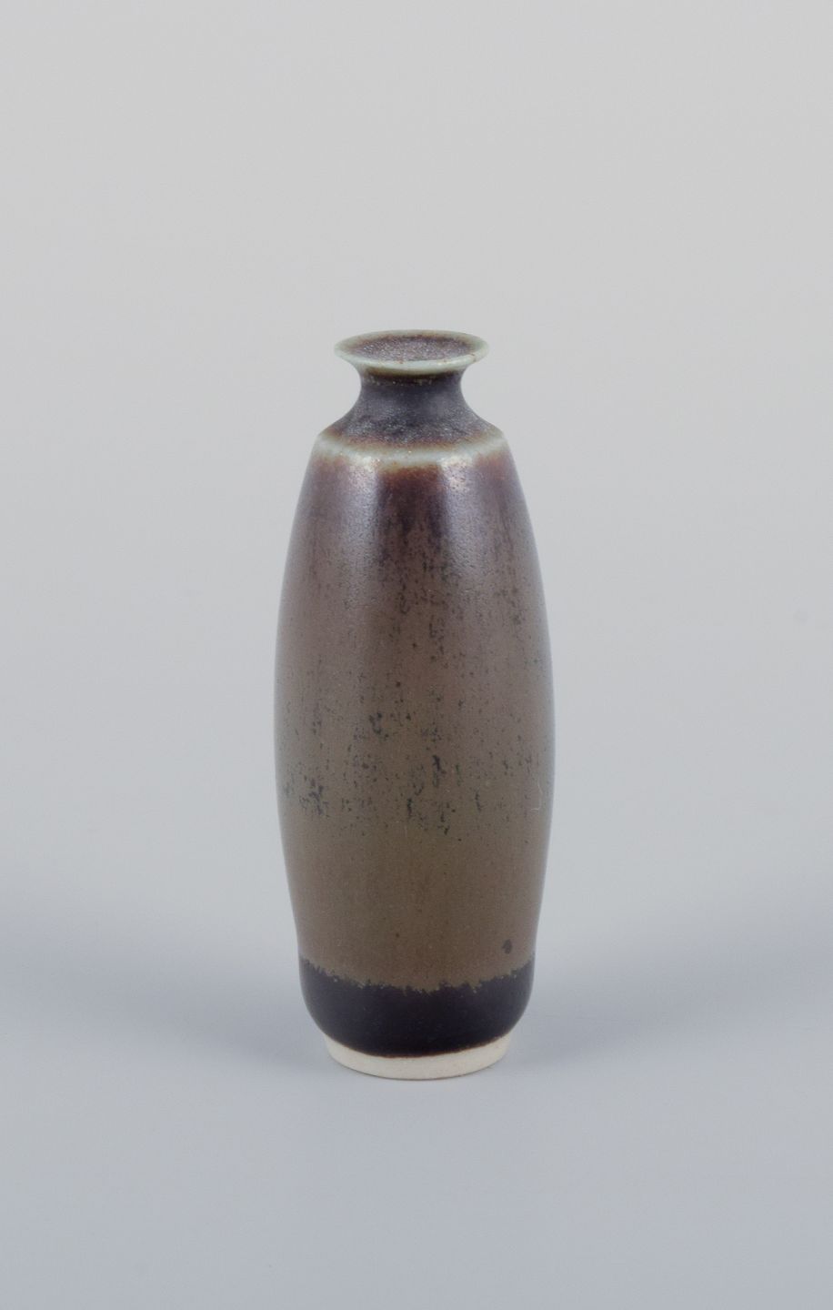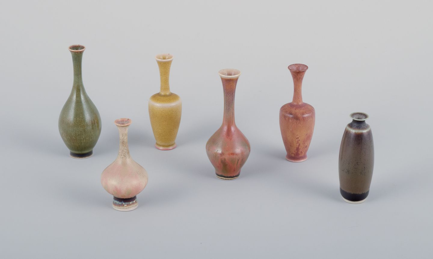 John Andersson for Höganäs, Sweden. A collection of six unique miniature ceramic vases in different shapes and glazes.